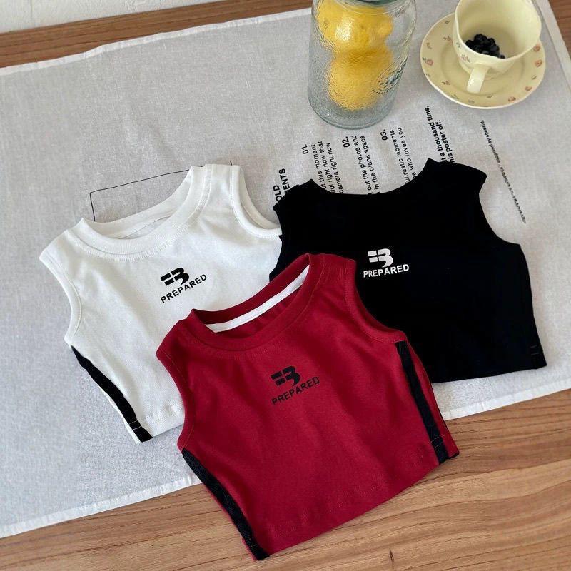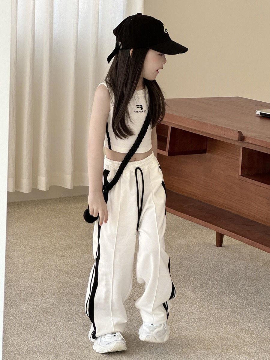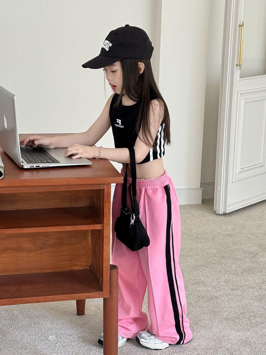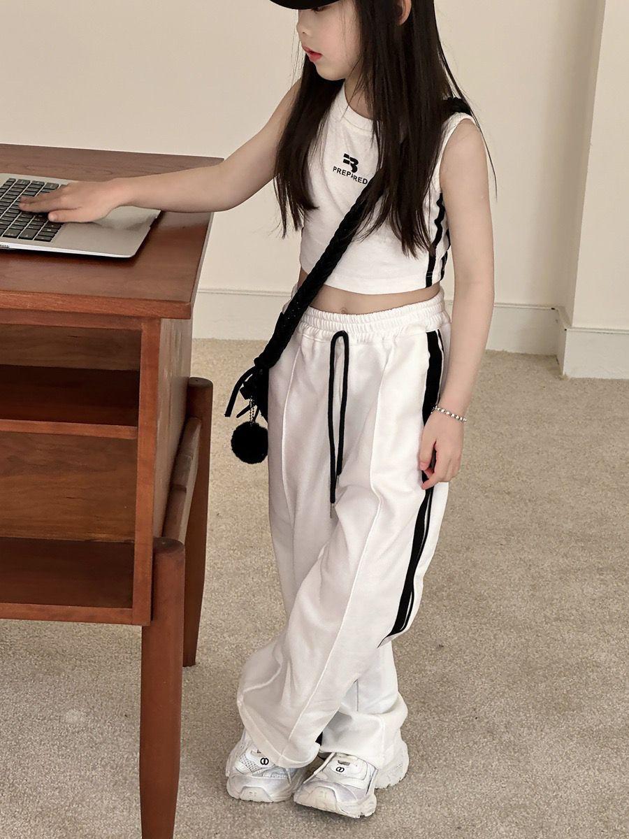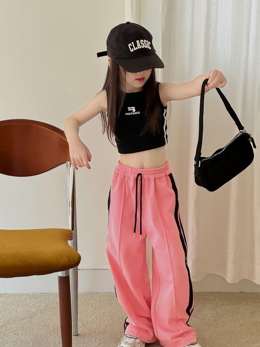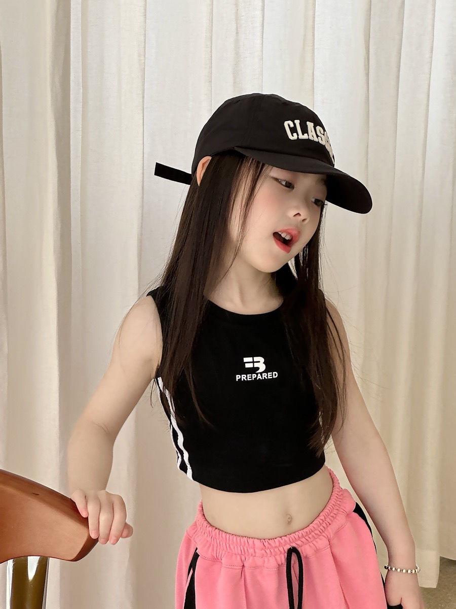 Chaleco de Verano para Niñas Bebé Elegante Infantil Personalizado Moderno Marca Coreana Corto Calle Danza Letra Rayas Camiseta sin Mangas