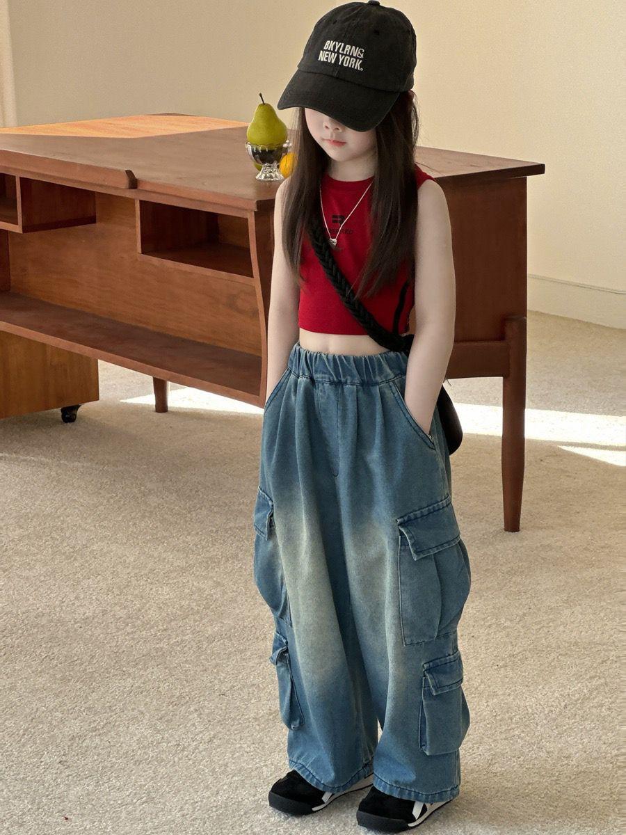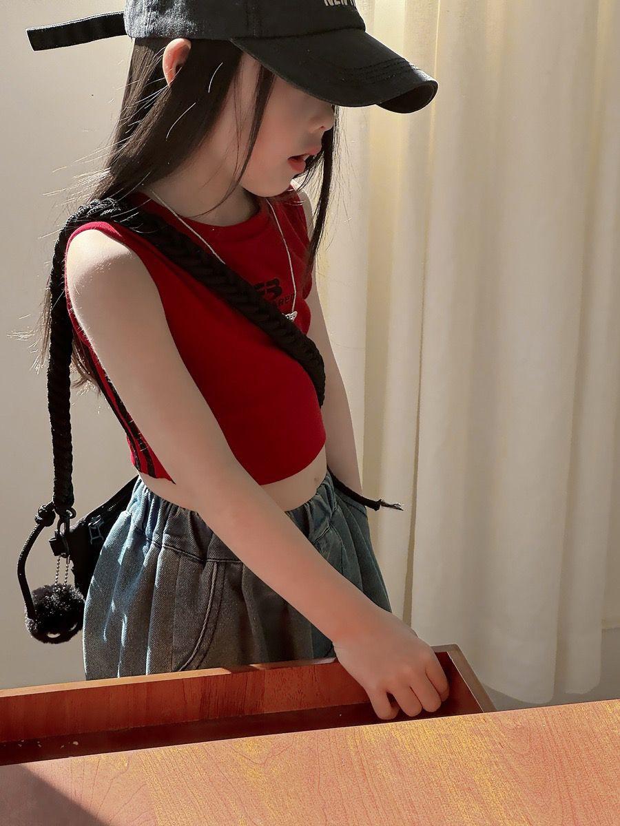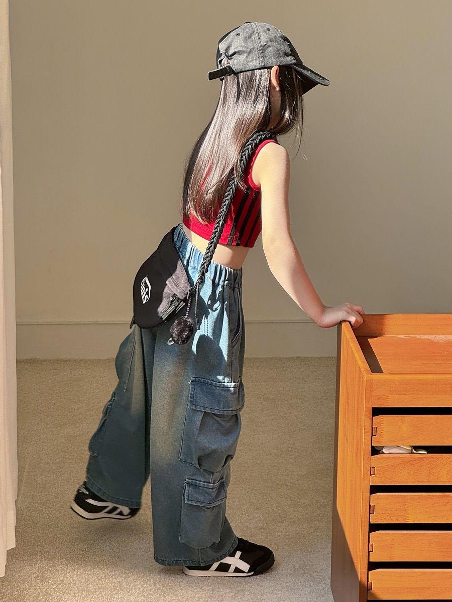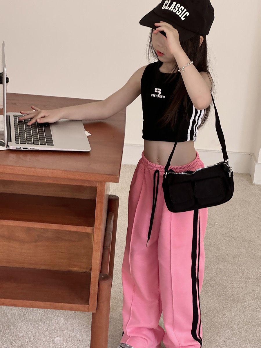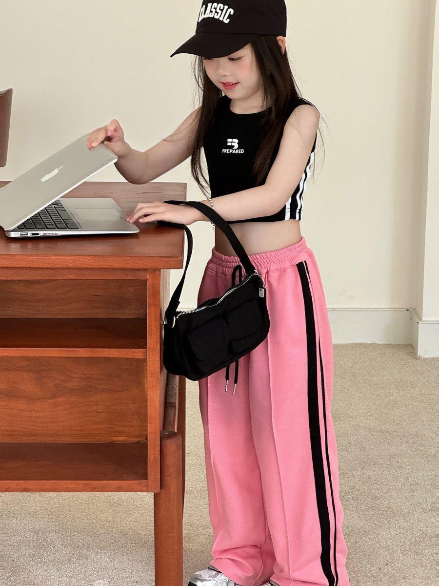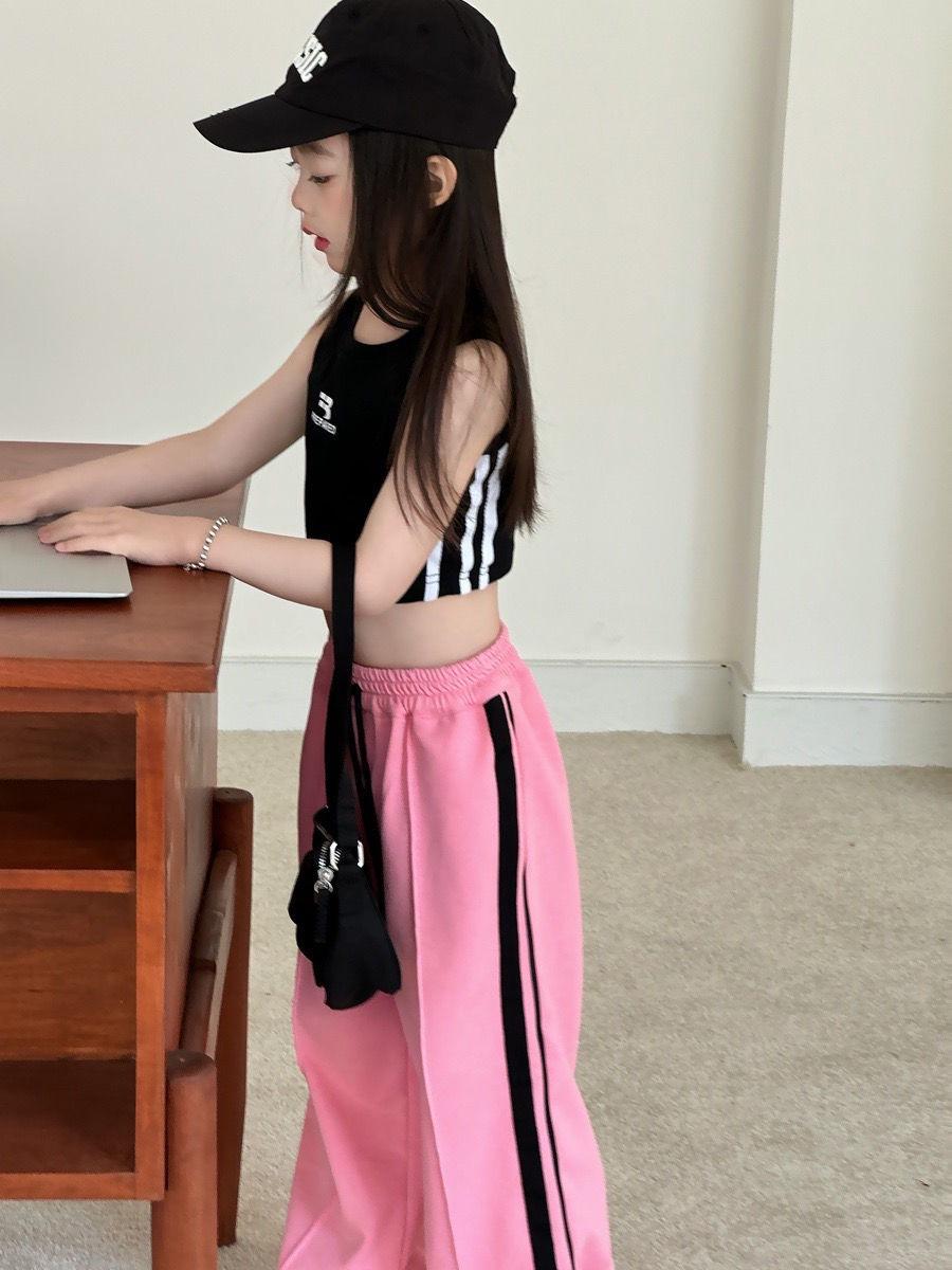Chaleco de Verano para Niñas Bebé Elegante Infantil Personalizado Moderno Marca Coreana Corto Calle Danza Letra Rayas Camiseta sin Mangas