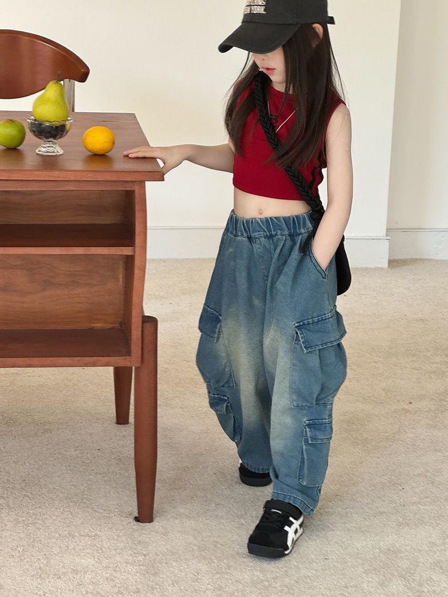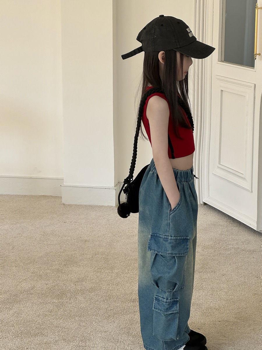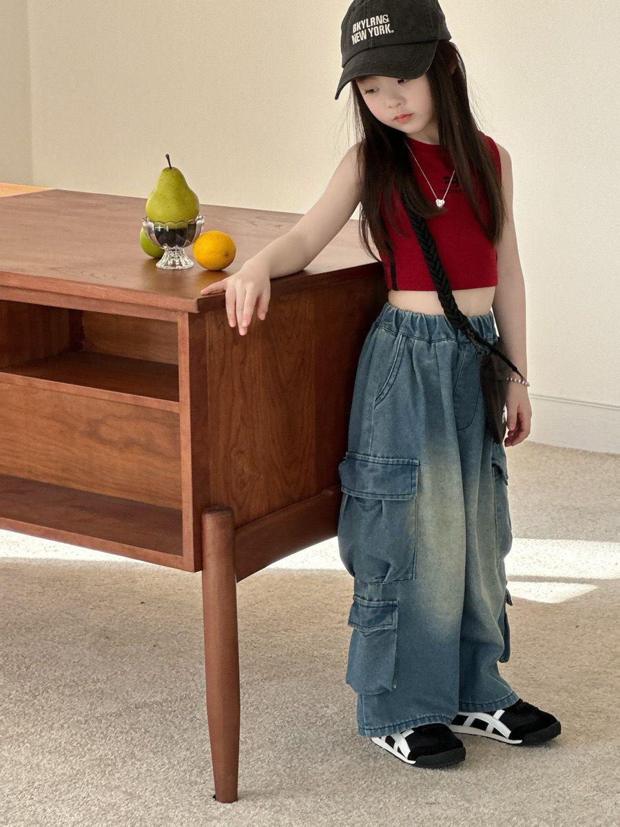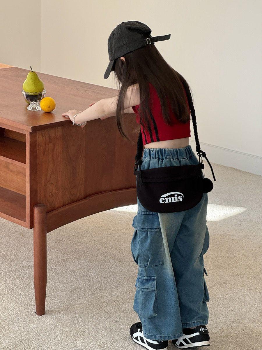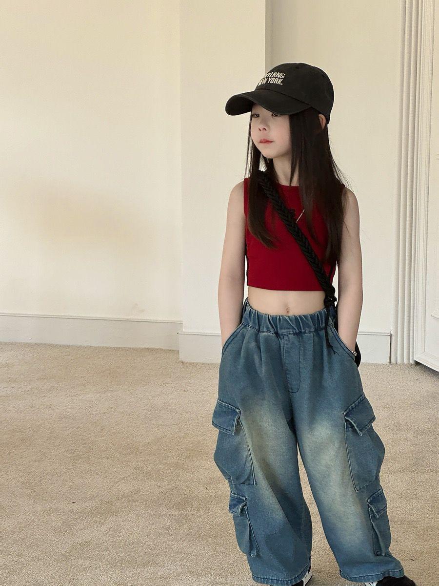 Chaleco de Verano para Niñas Bebé Elegante Infantil Personalizado Moderno Marca Coreana Corto Calle Danza Letra Rayas Camiseta sin Mangas