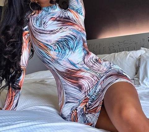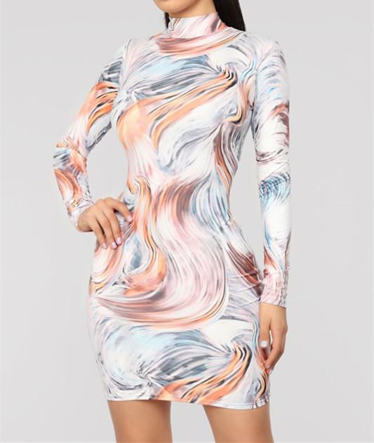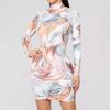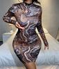 Europeo y Americano 2024 Verano Nuevo para Mujer Cuello Medio Corto Sexy Falda de Cadera Estampado 3D Fiesta Actuación
