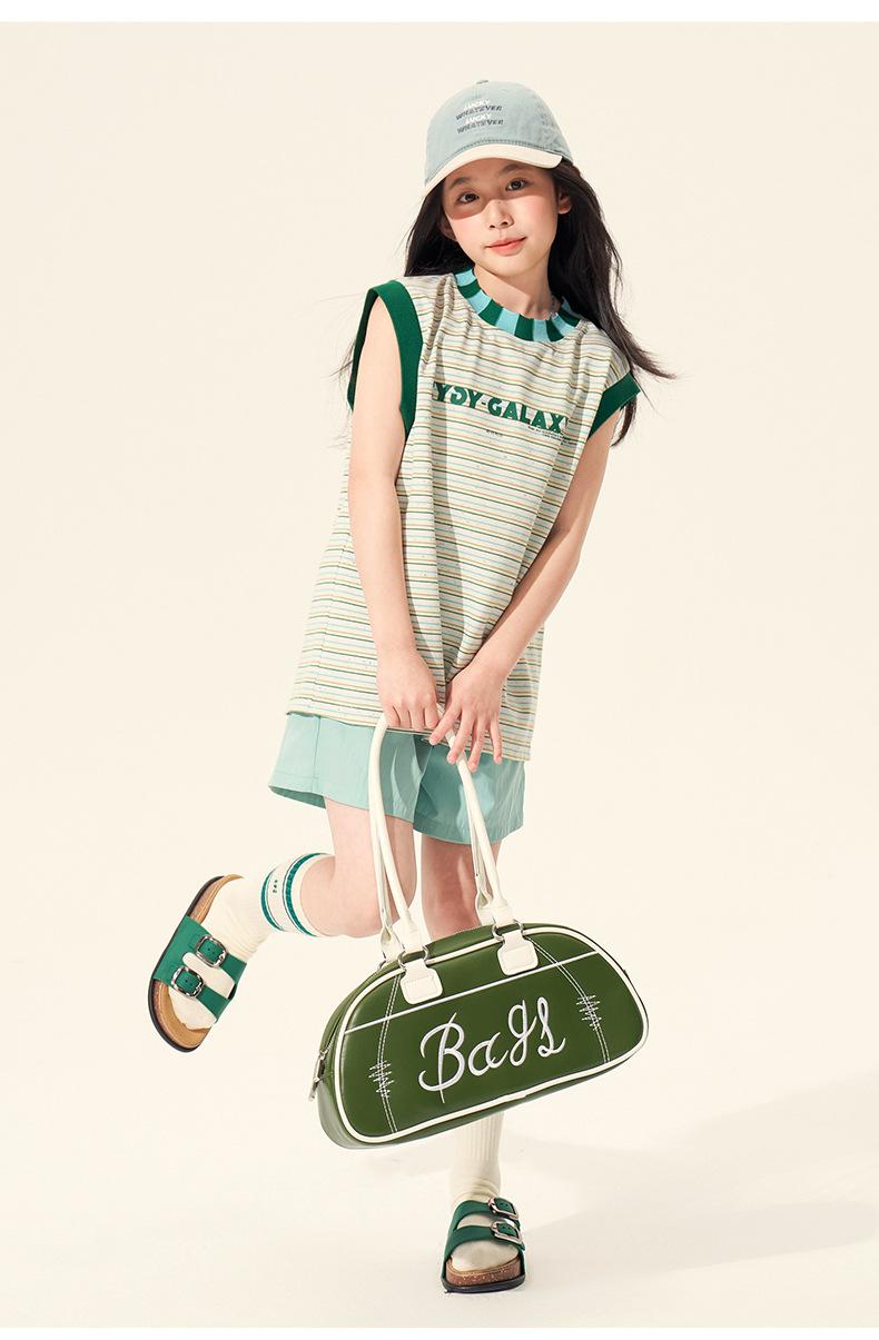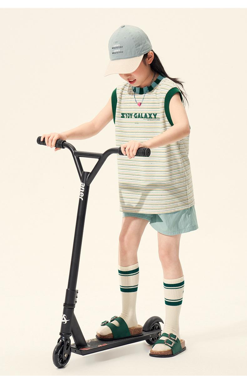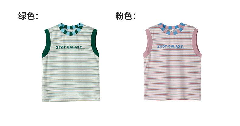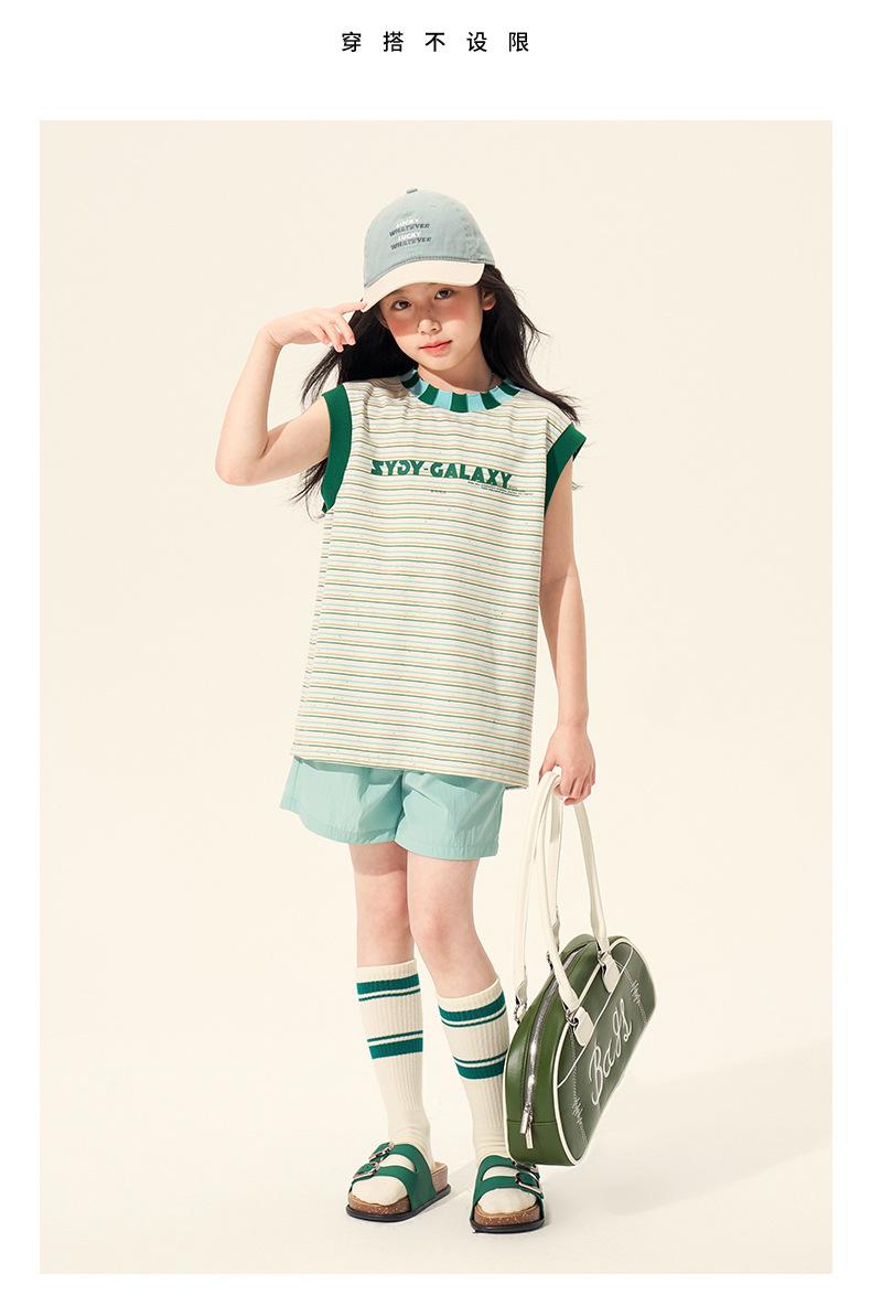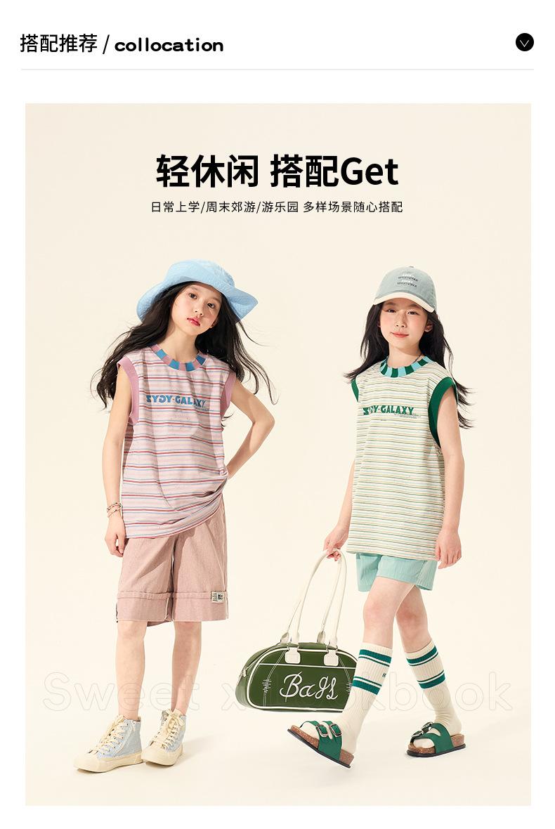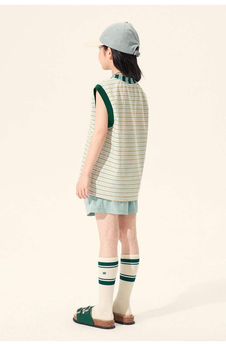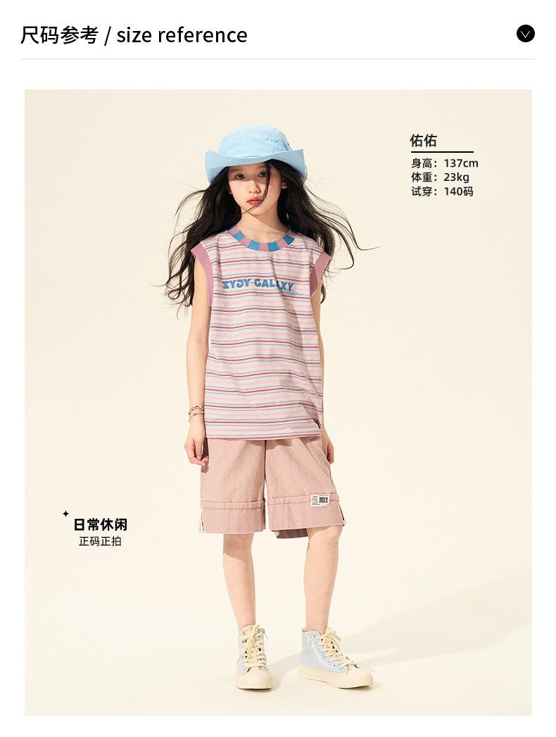 Playera para Niñas 2025 Verano Nuevo Estilo Coreano Niños Medianos-Grandes Elegante Niña Rayas Color de Contraste Sin Mangas Chaleco Casual