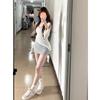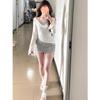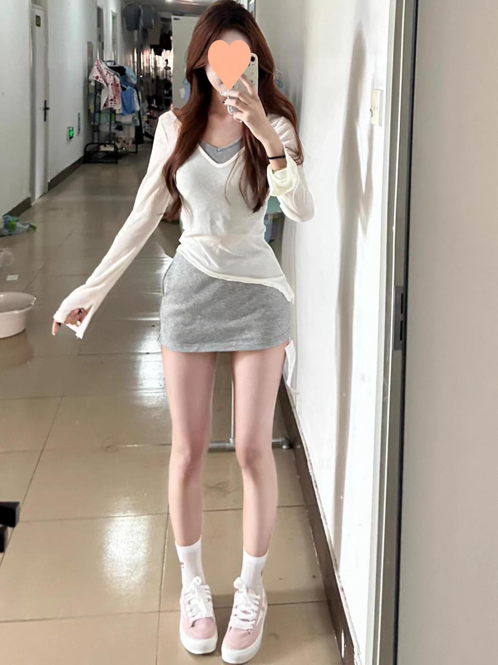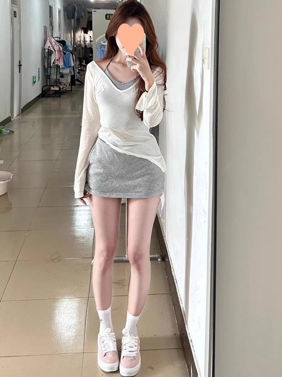 Conjunto de Primavera a Juego de Blusa de Estilo Holgazán, Camiseta, Chaleco, Falda Gris, Traje de Dos Piezas para Mujer, Falda, Verano