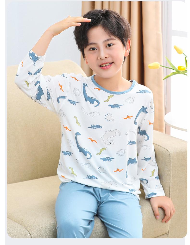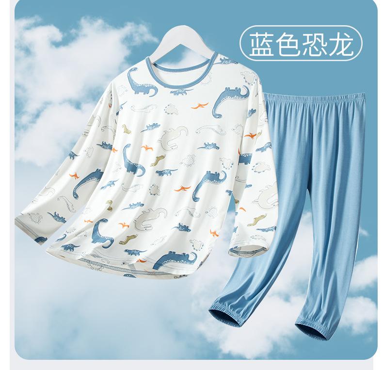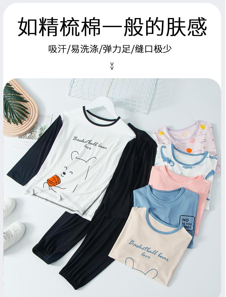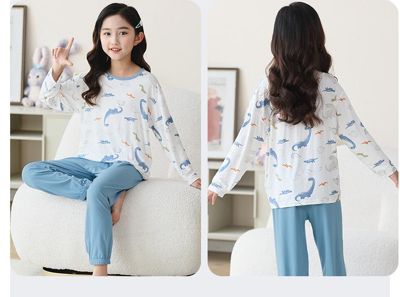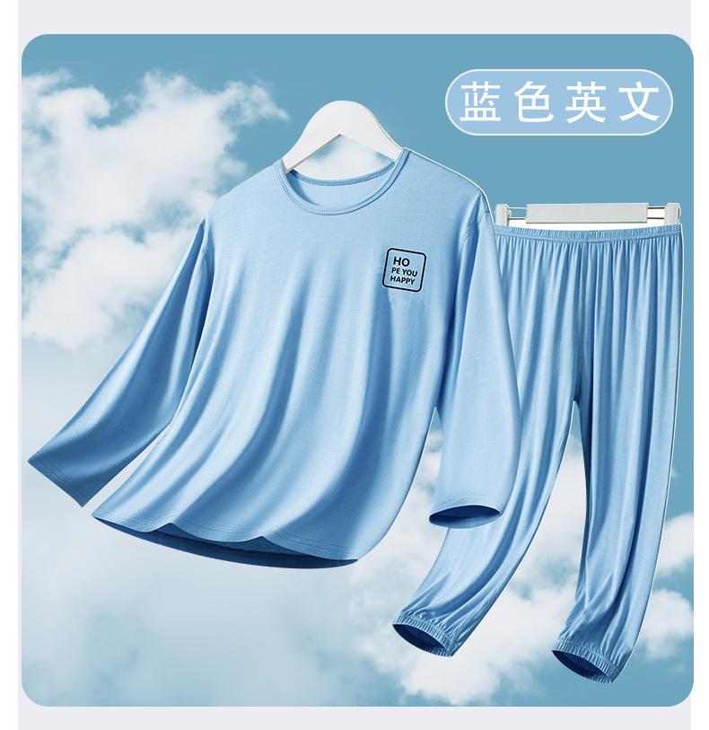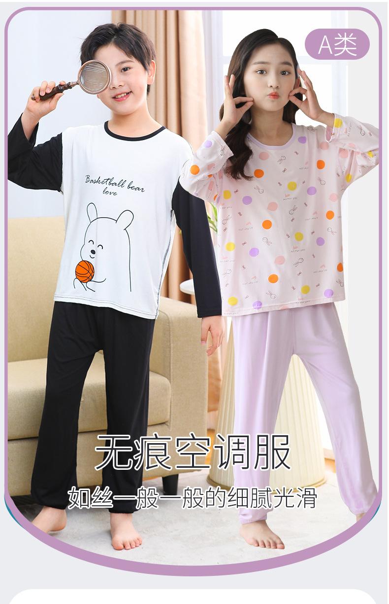 Pijama Modal para Niños Verano Niños Manga Larga Ropa para el Hogar Mediana y Grande Seda de Hielo para Niños Conjunto de Ropa para Bebé para Aire Acondicionado