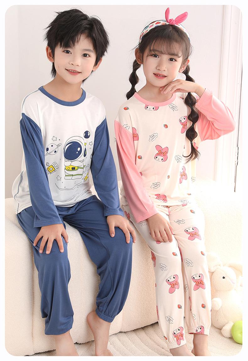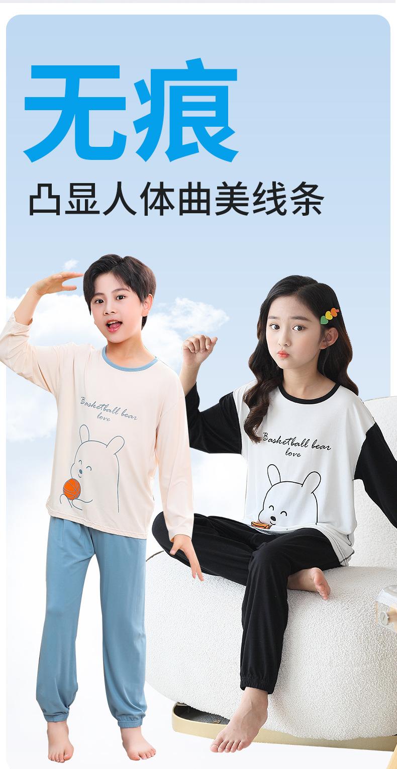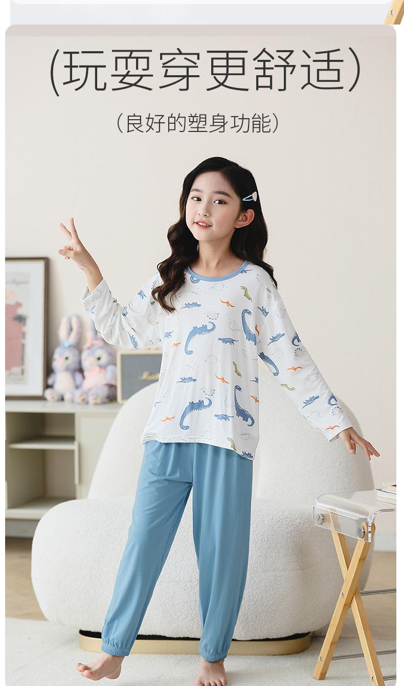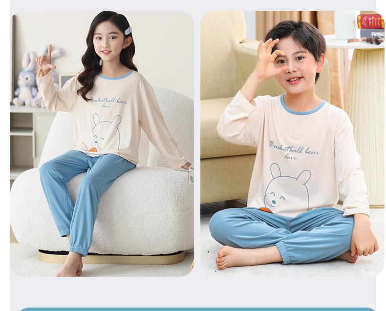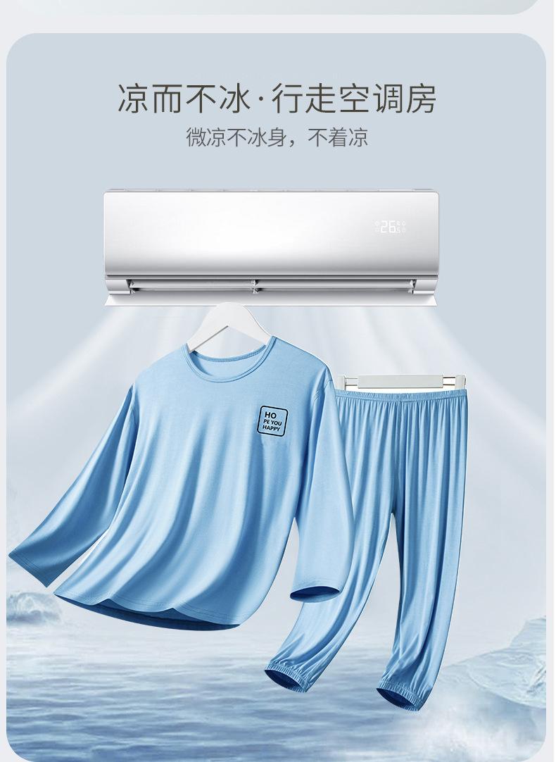 Pijama Modal para Niños Verano Niños Manga Larga Ropa para el Hogar Mediana y Grande Seda de Hielo para Niños Conjunto de Ropa para Bebé para Aire Acondicionado