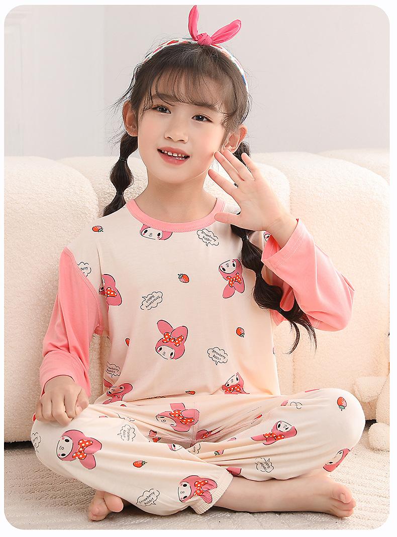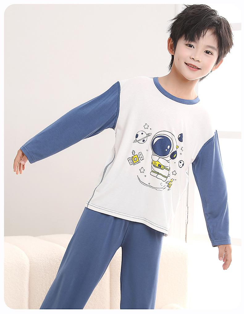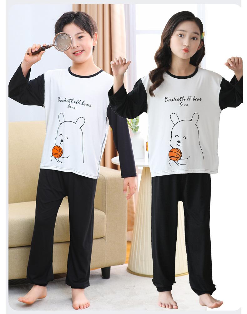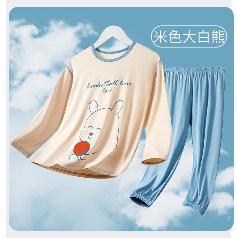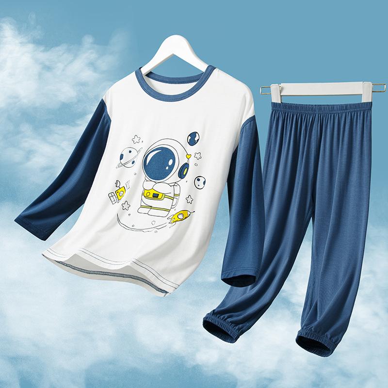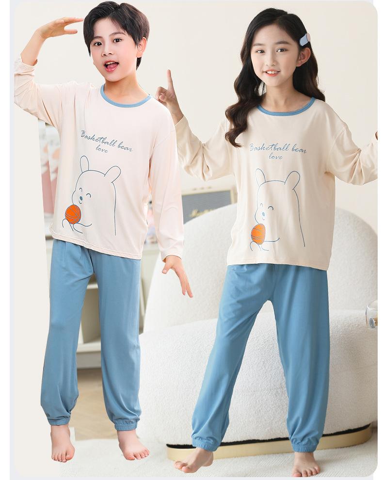 Pijama Modal para Niños Verano Niños Manga Larga Ropa para el Hogar Mediana y Grande Seda de Hielo para Niños Conjunto de Ropa para Bebé para Aire Acondicionado
