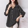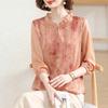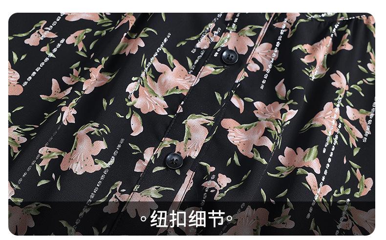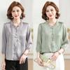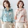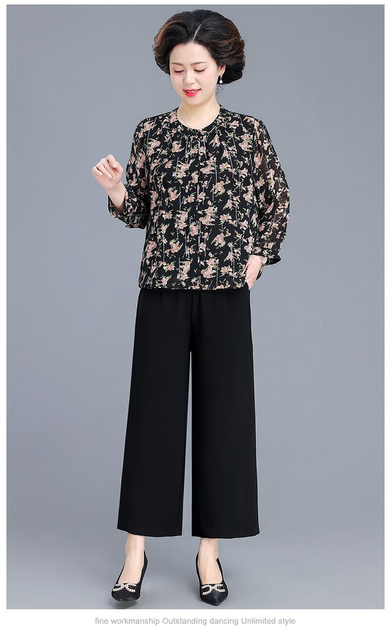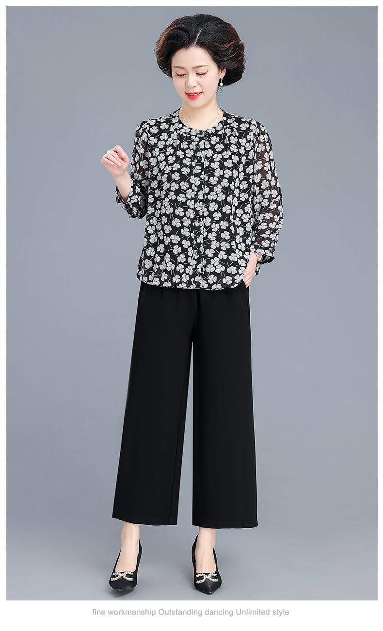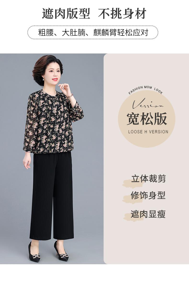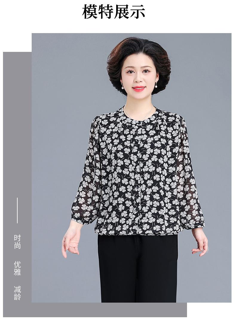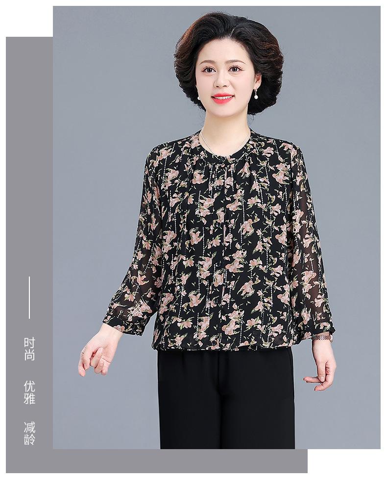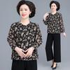 Camisa de gasa estilo primavera para mamá 2025 nueva para mujeres de mediana edad y mayores, top floral de manga larga para primavera y verano, conjunto de dos piezas