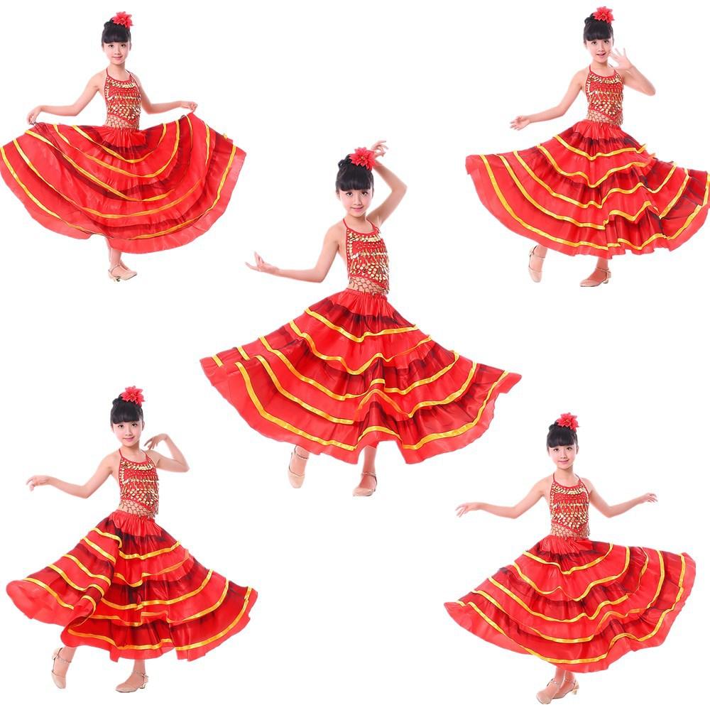 Falda de baile español para niños, ropa de actuación, falda de baile de toros, falda de baile, ropa de actuación para niños, mujeres