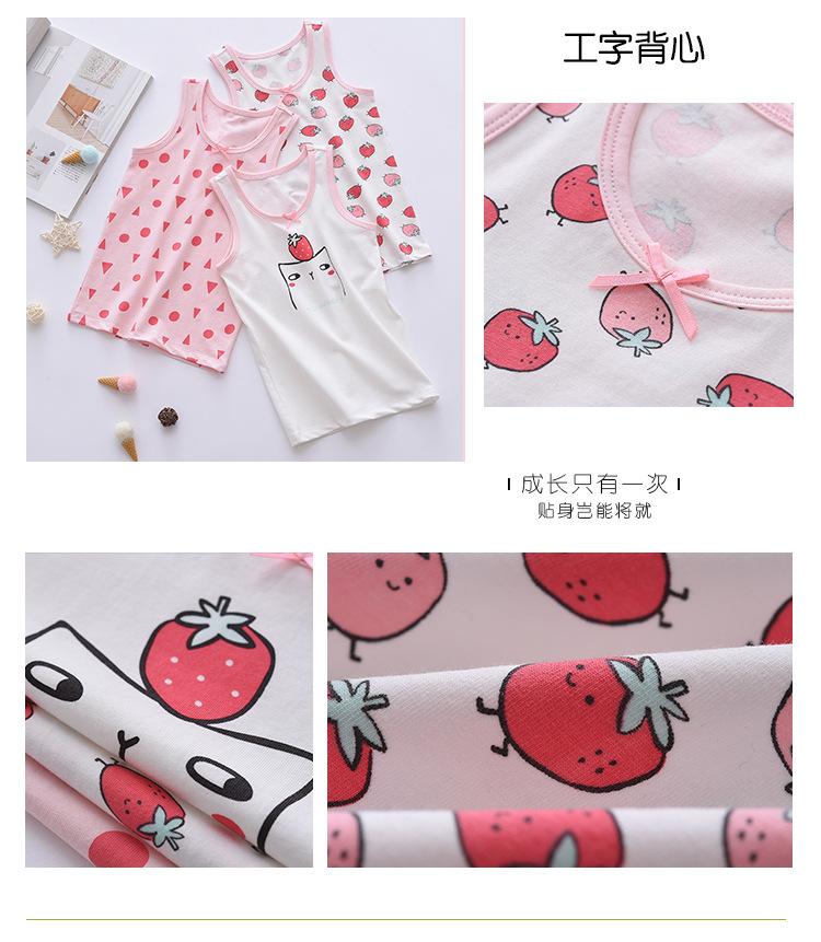 Chaleco para niños Clase A Verano Delgado Algodón Puro Camiseta sin Mangas Niños y Niñas Dibujos Animados Ropa para el Hogar Top Casual 3 Piezas