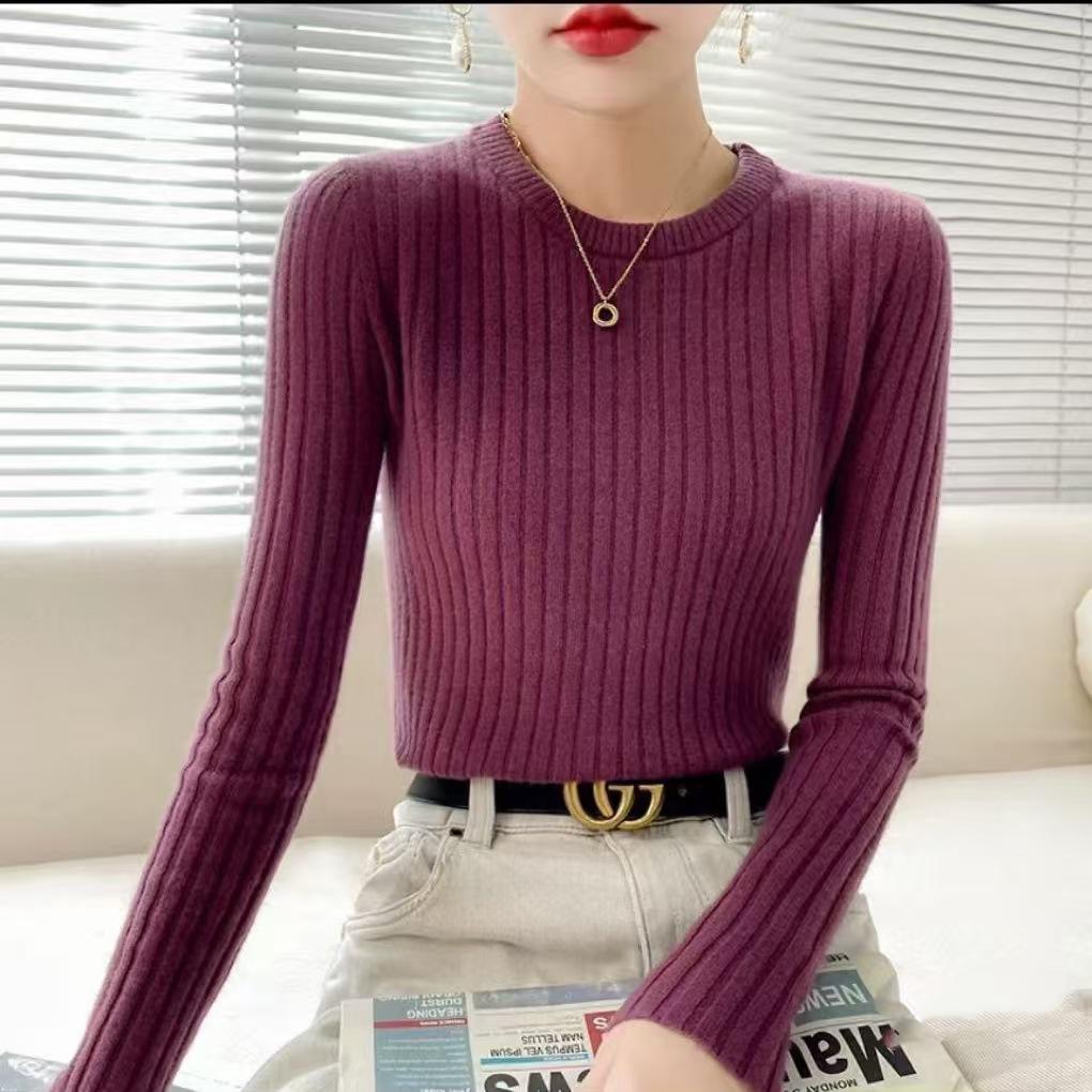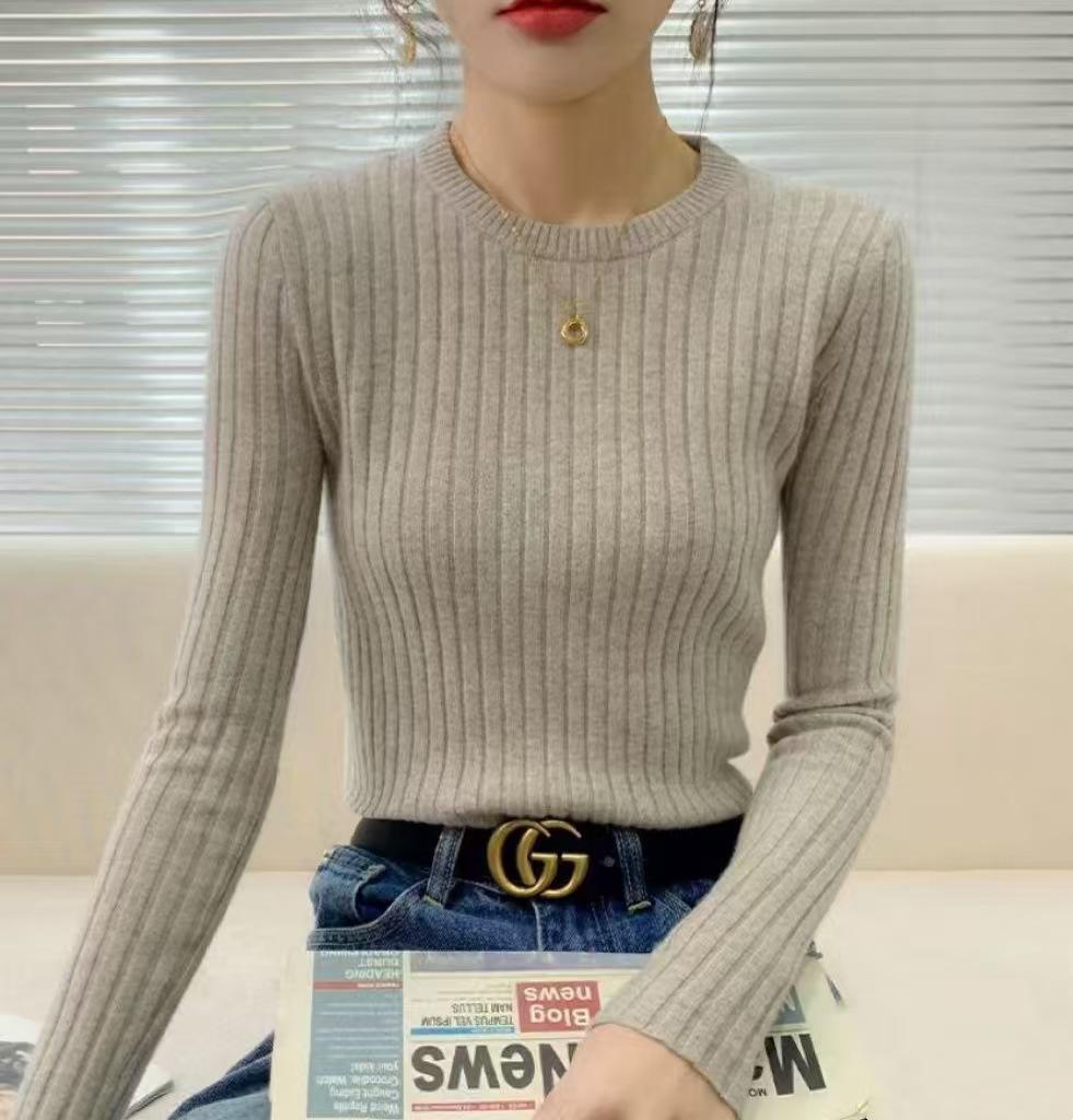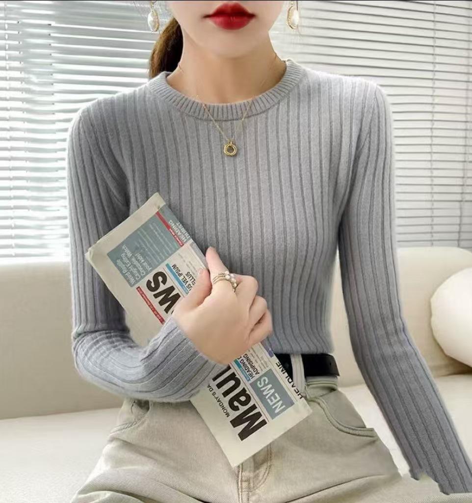 Camiseta Básica de Cuello Redondo para Mujer Otoño e Invierno Chicas Calientes Nueva Moda Estilo Occidental Suéter Tejido Ajustado Top Interior para Mujer a la Moda
