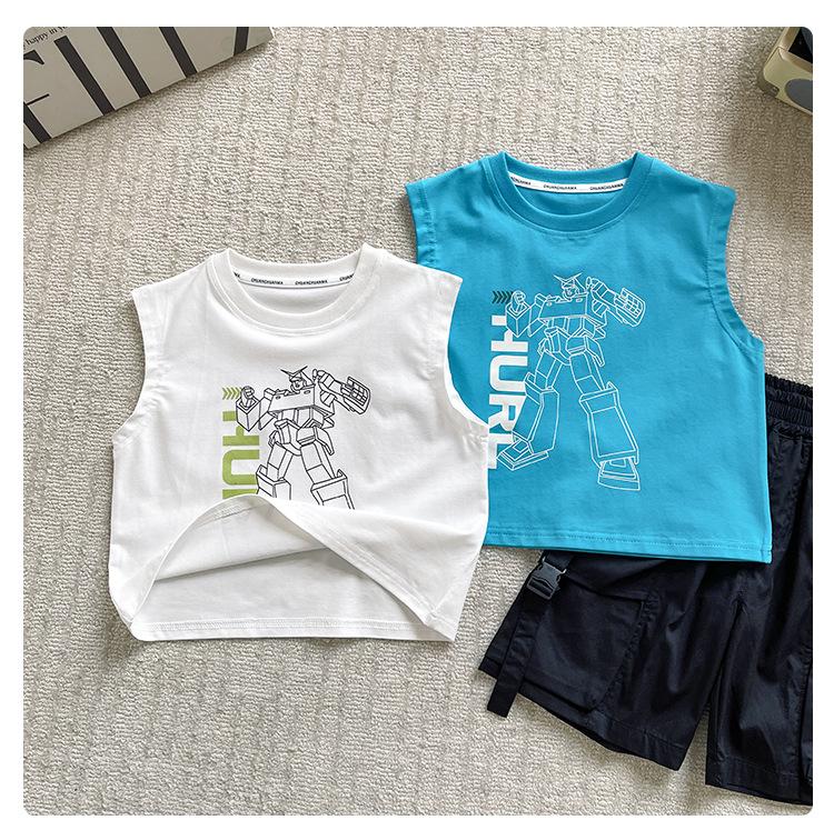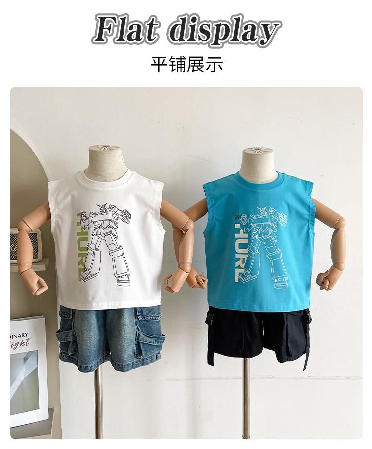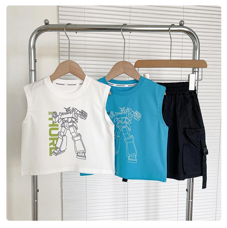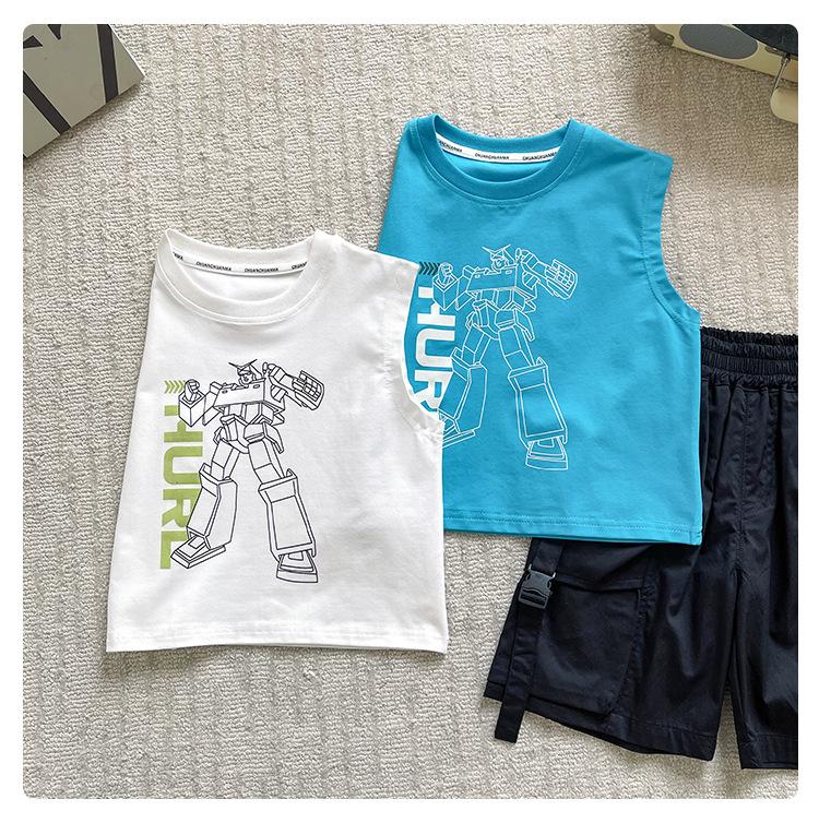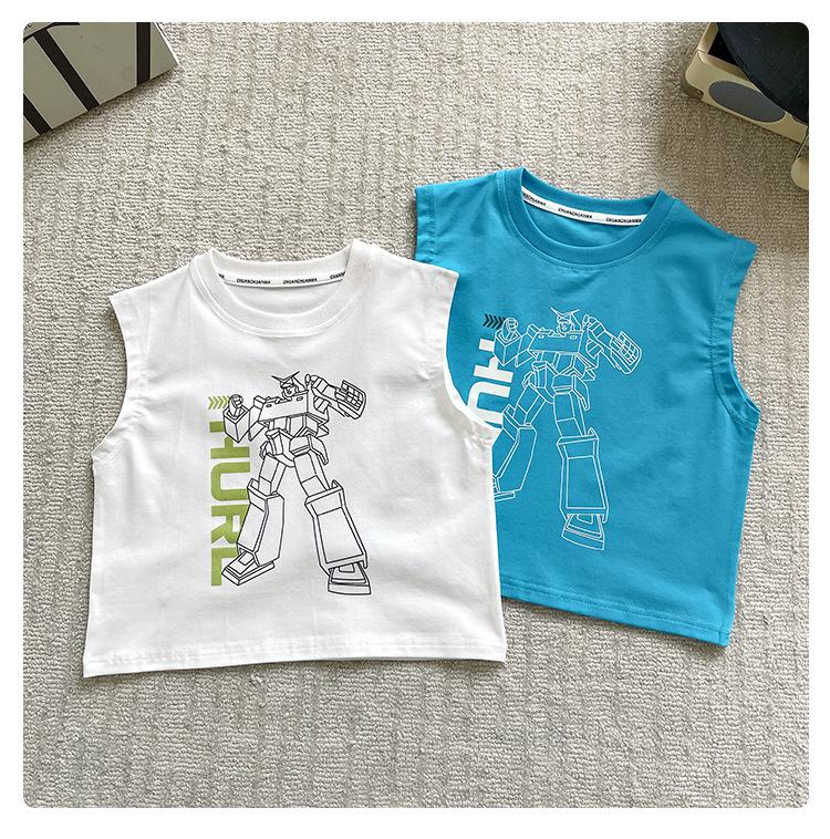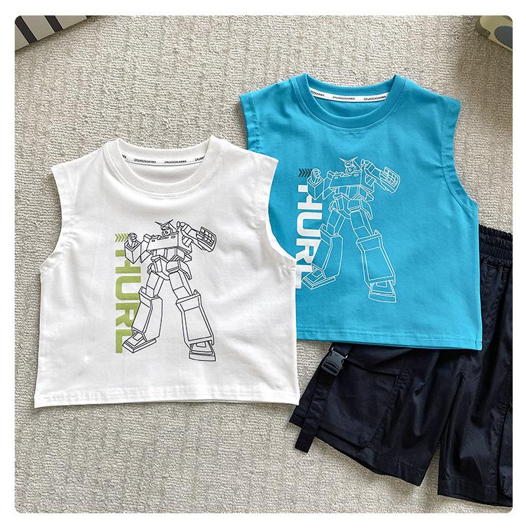 Valle del Viento 2025 Verano Nuevo Ropa para Niños Chaleco de Robot para Niños Estilo Coreano Guapo Personalidad Sin Mangas Letras