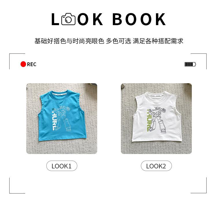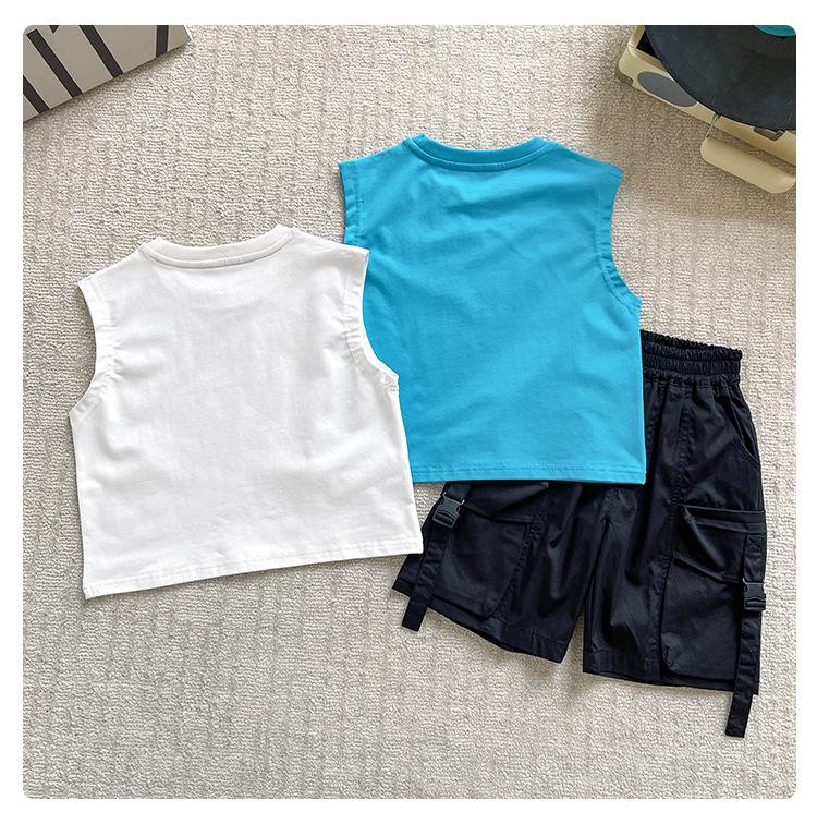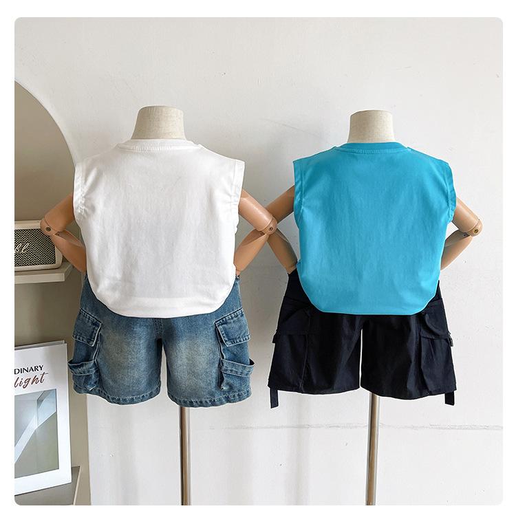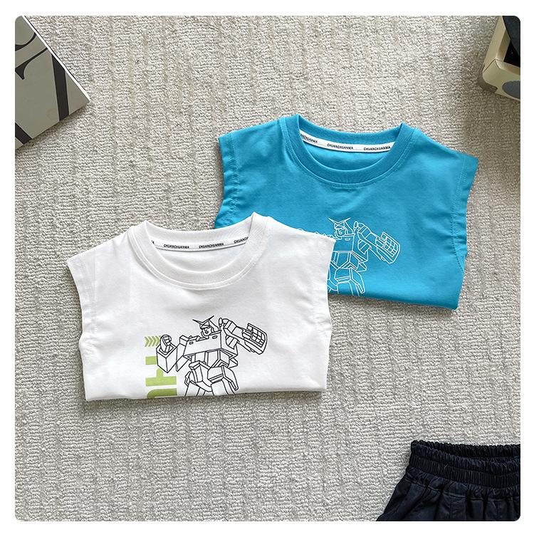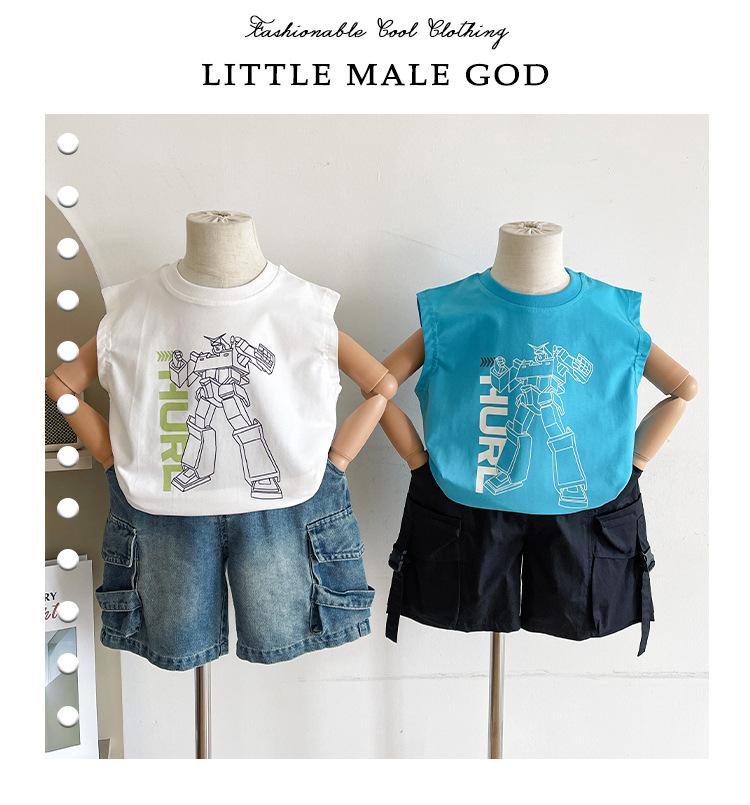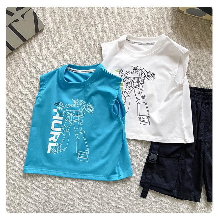 Valle del Viento 2025 Verano Nuevo Ropa para Niños Chaleco de Robot para Niños Estilo Coreano Guapo Personalidad Sin Mangas Letras