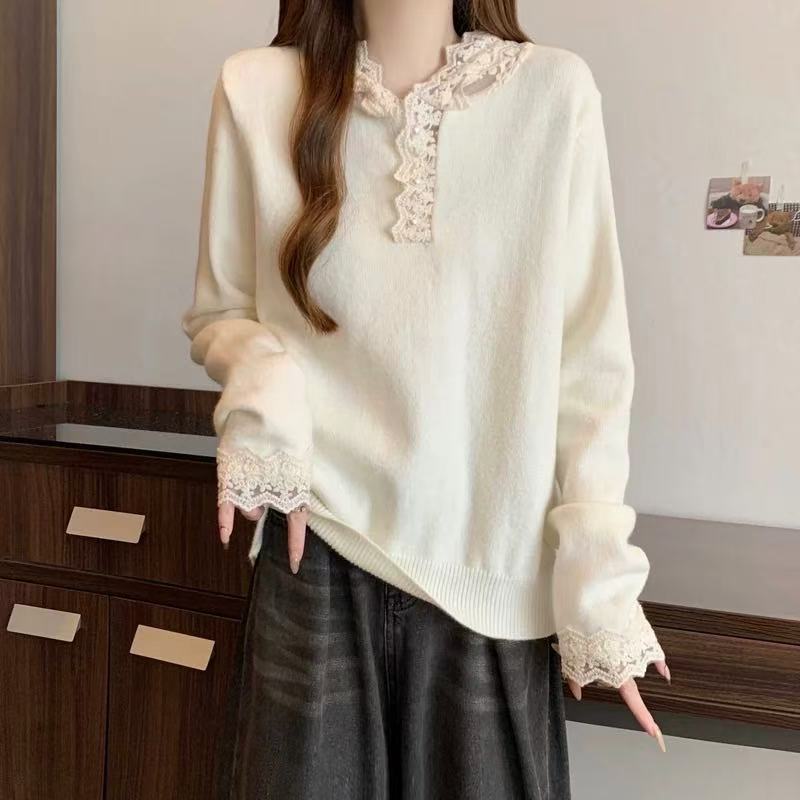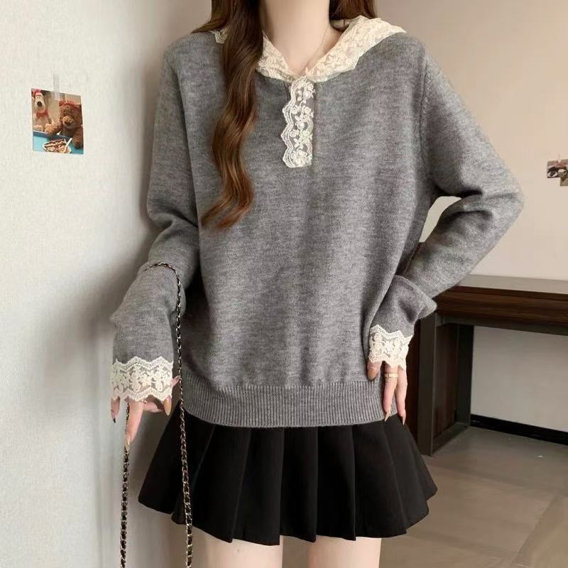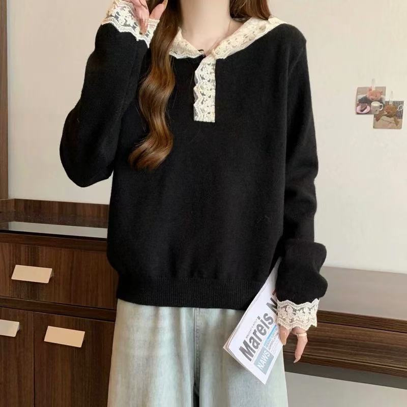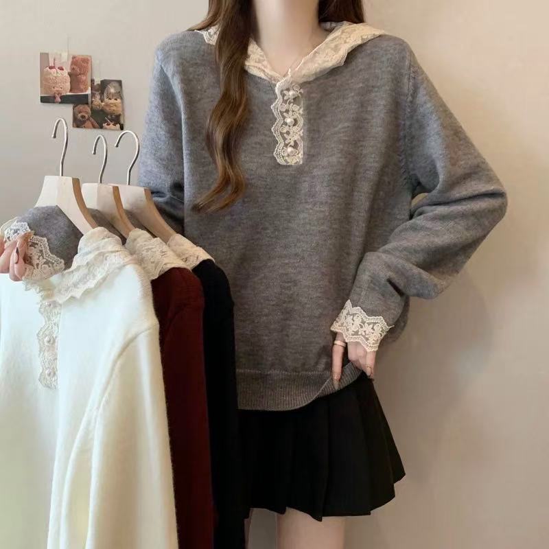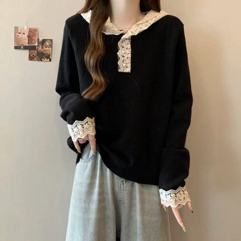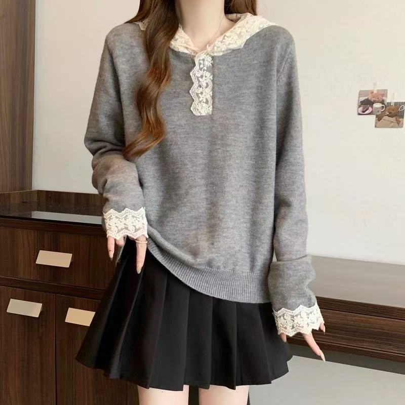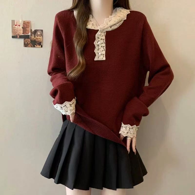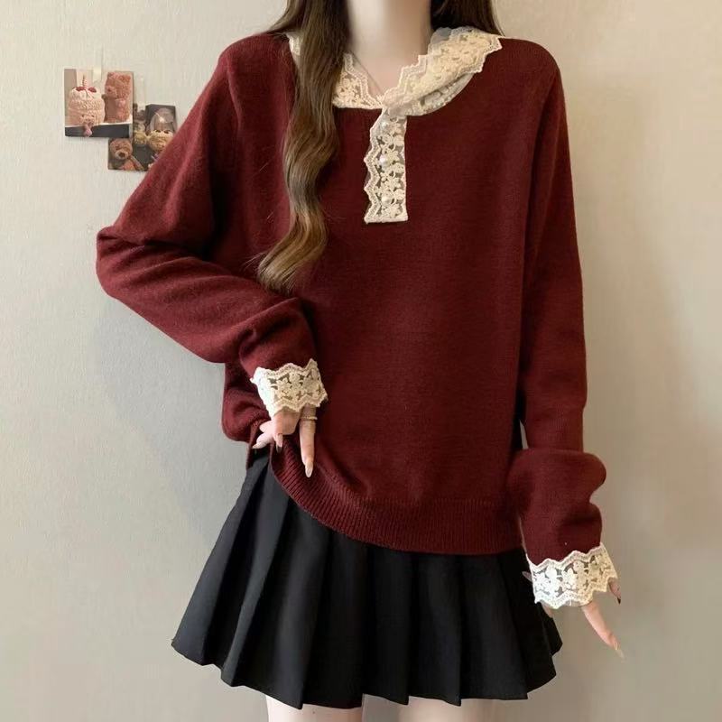 Tejido de punto con capucha de encaje rojo Otoño e Invierno Nuevo talla única Tejido de punto para mujer Adelgazante Suéter interior Camiseta base para mujer