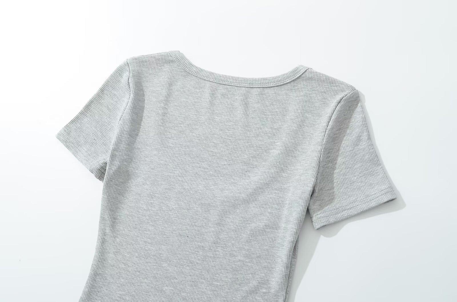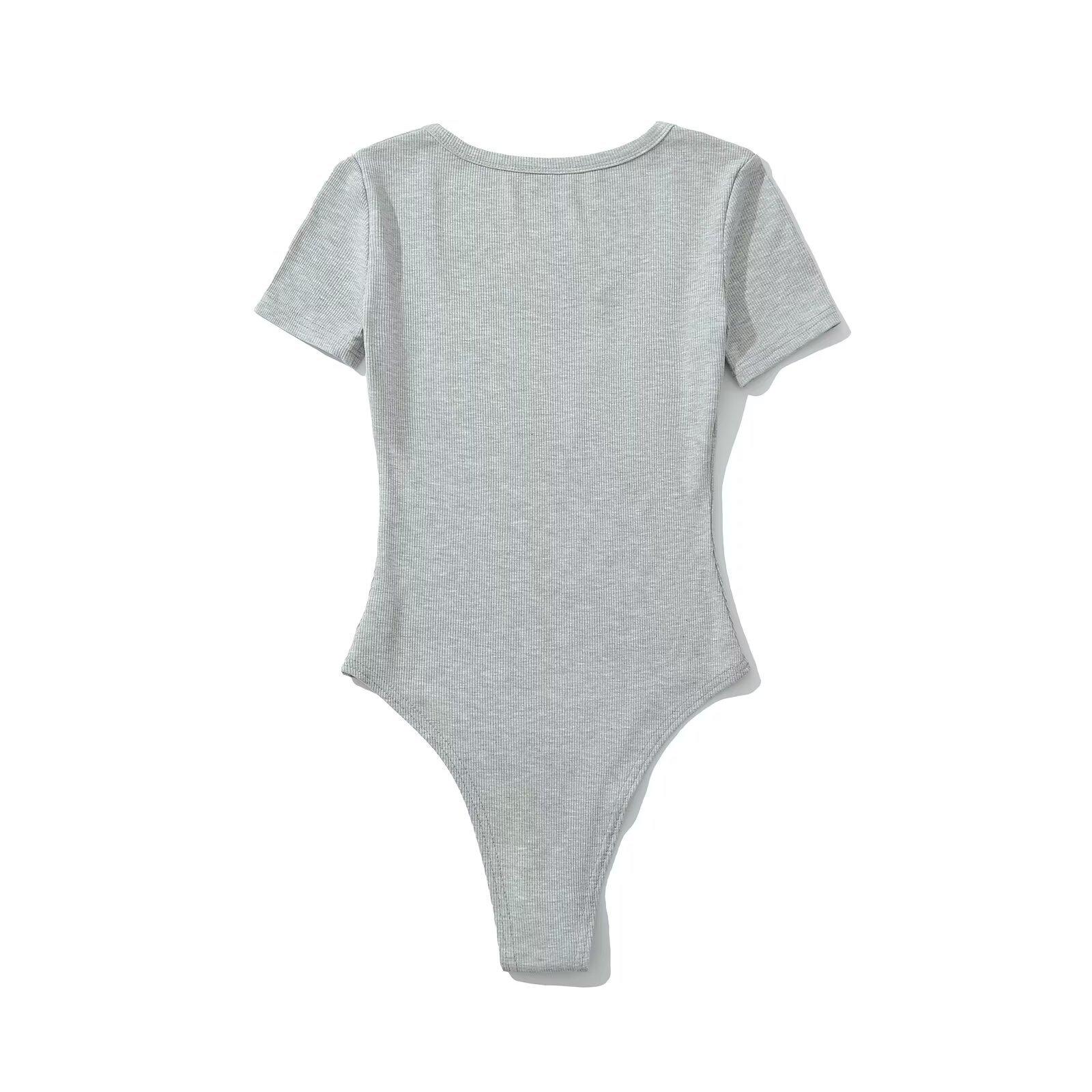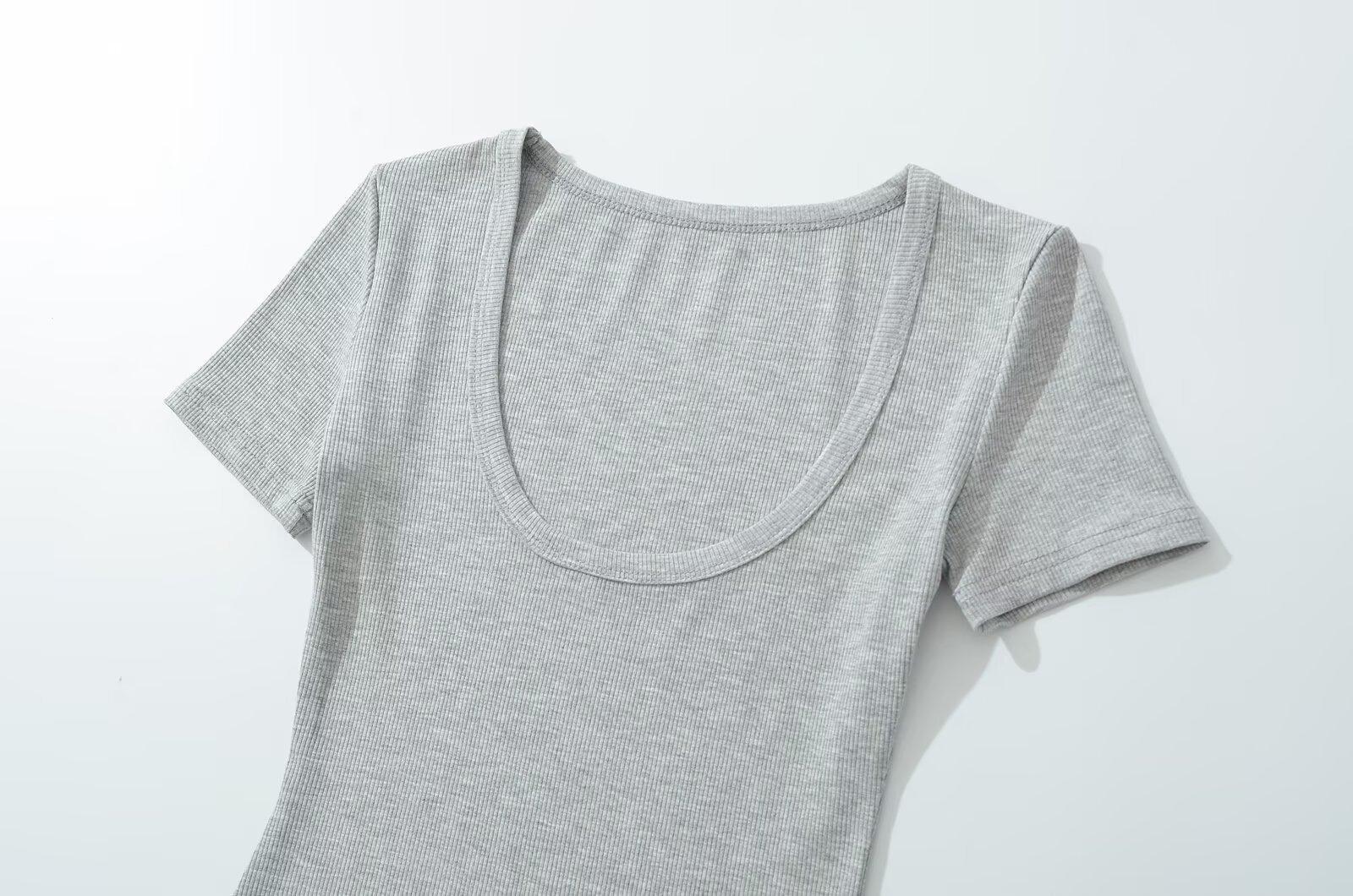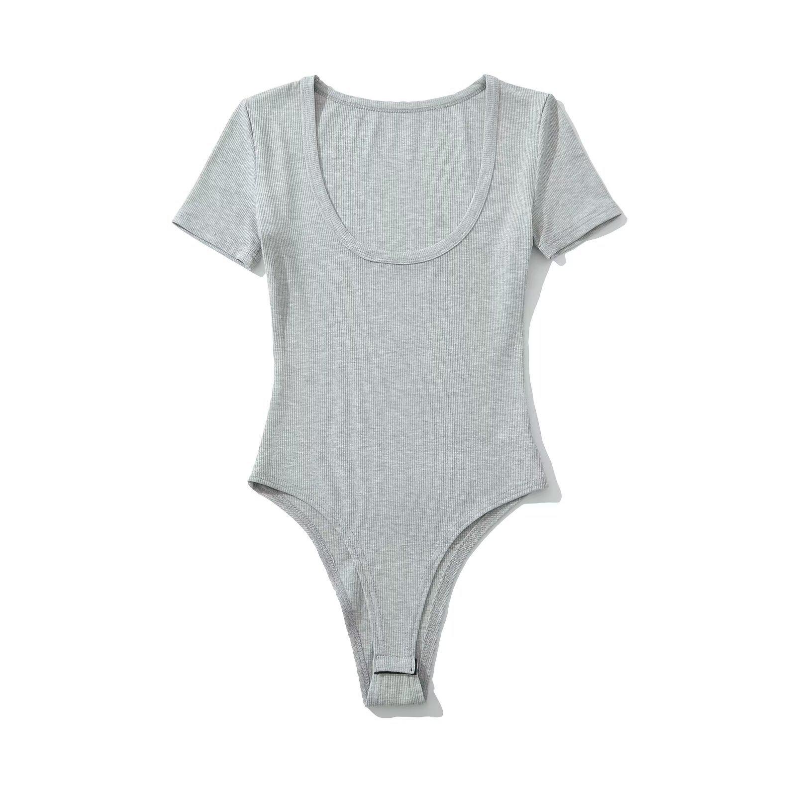 -25 Primavera Nuevo Estilo Europeo y Americano Sexy Cuello U Bajo Manga Corta Simple Ajustado Body