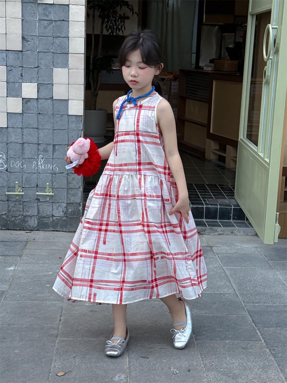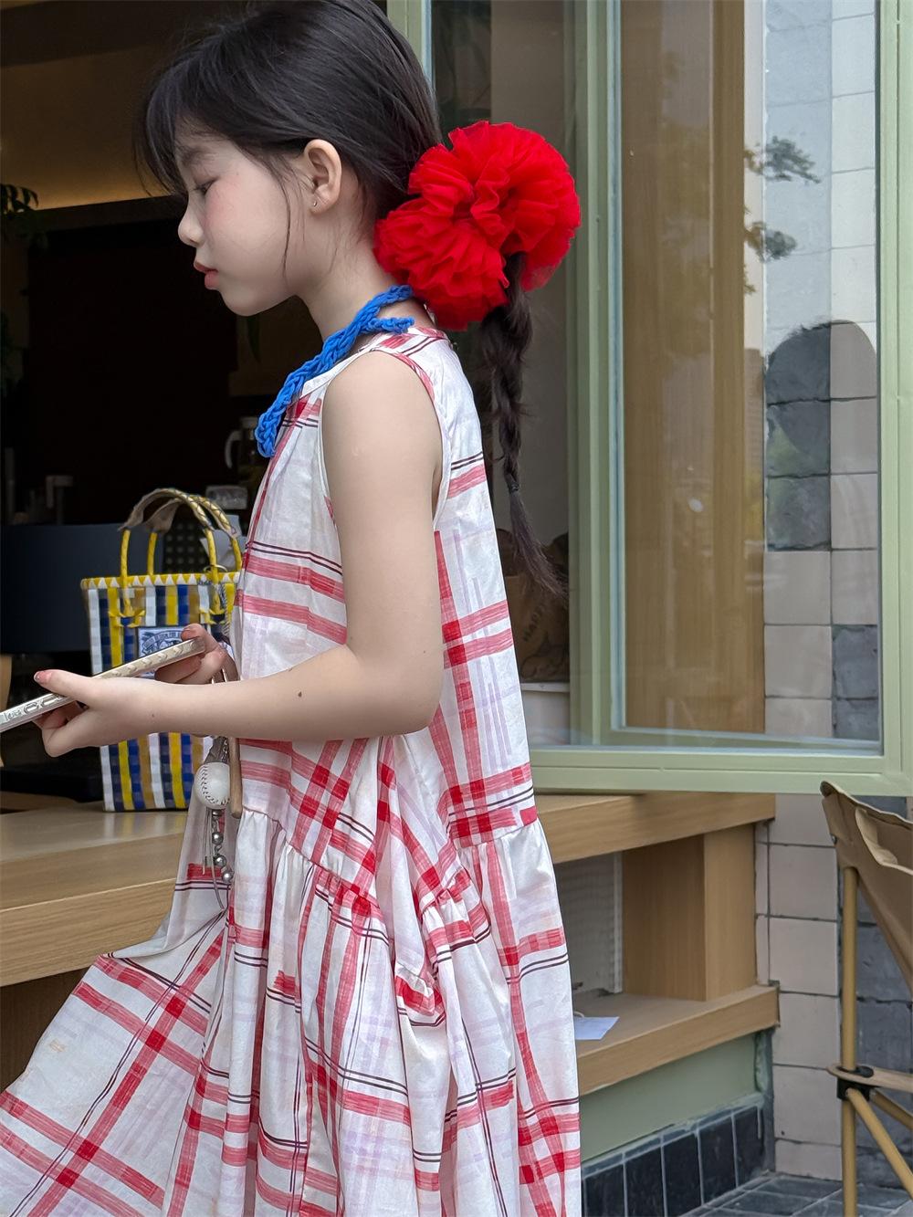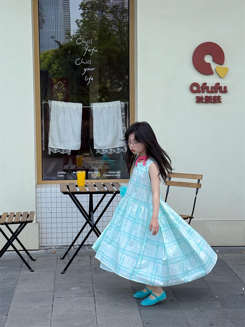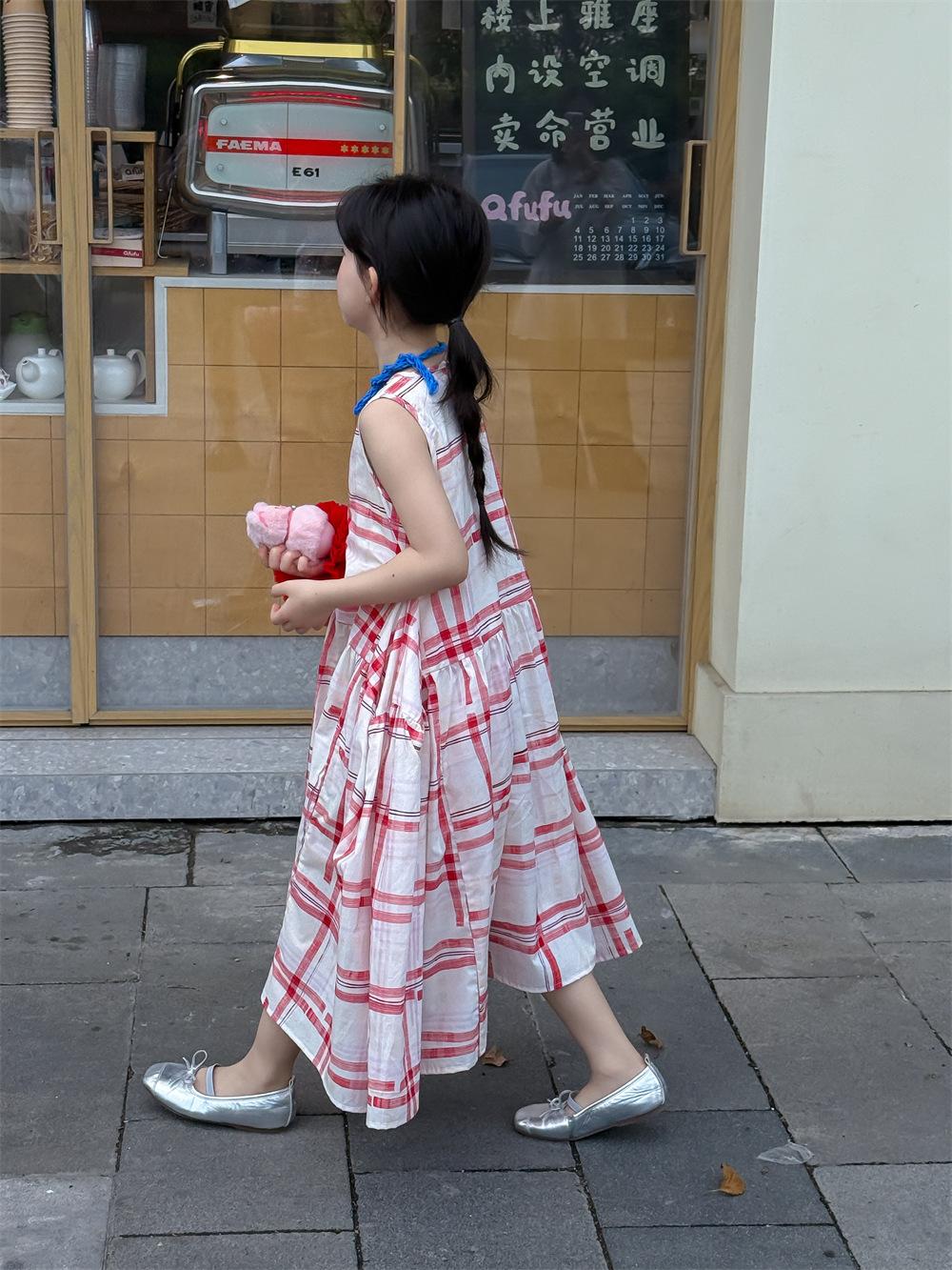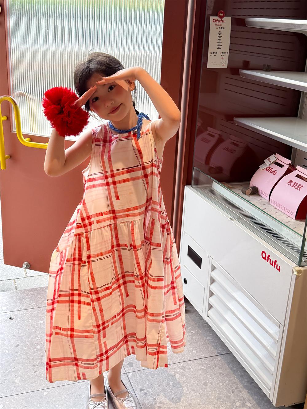 Ropa para niños Flower and seek vestido para niñas 2025 verano nuevo vestido de princesa a cuadros falda infantil de moda