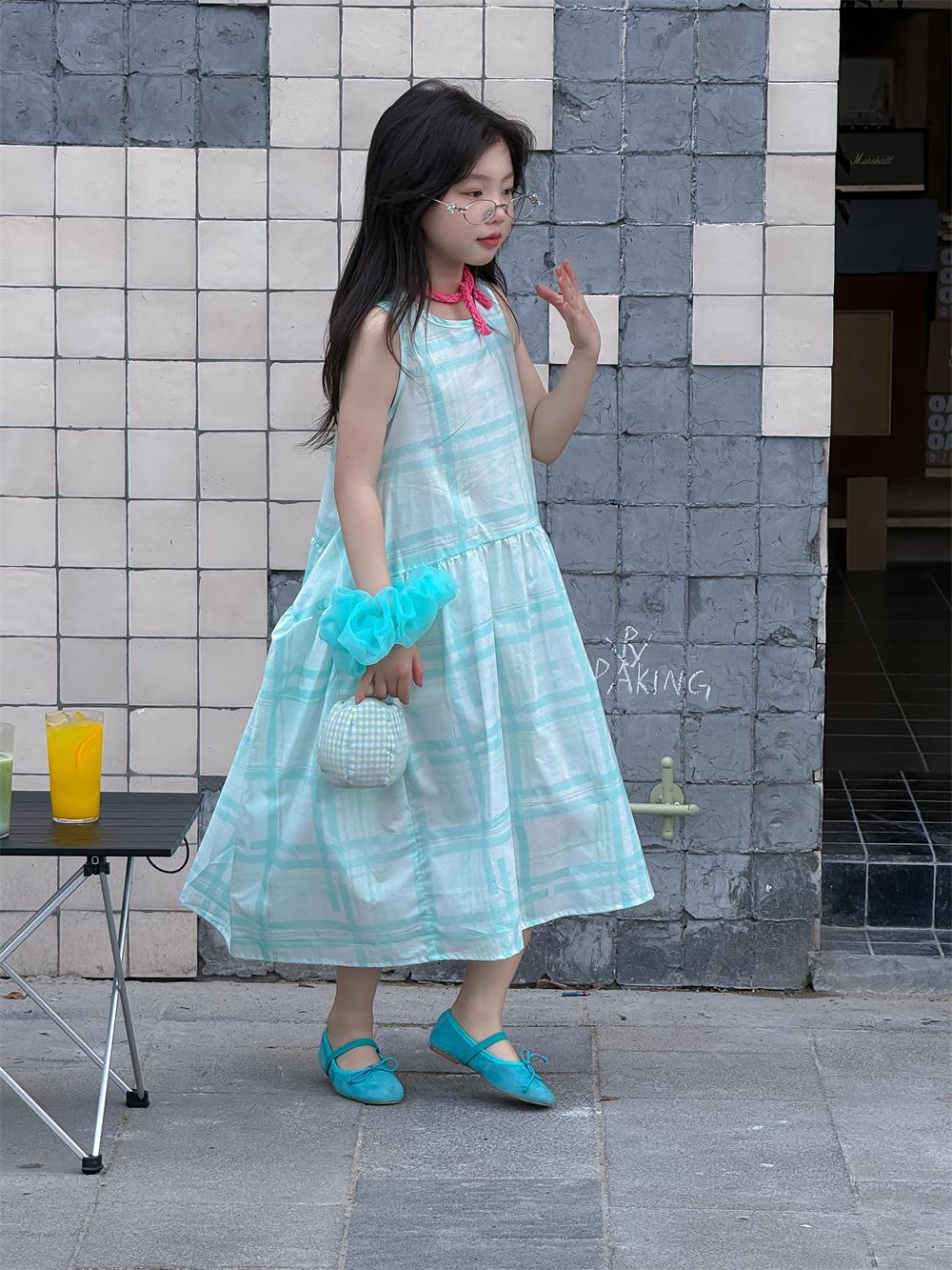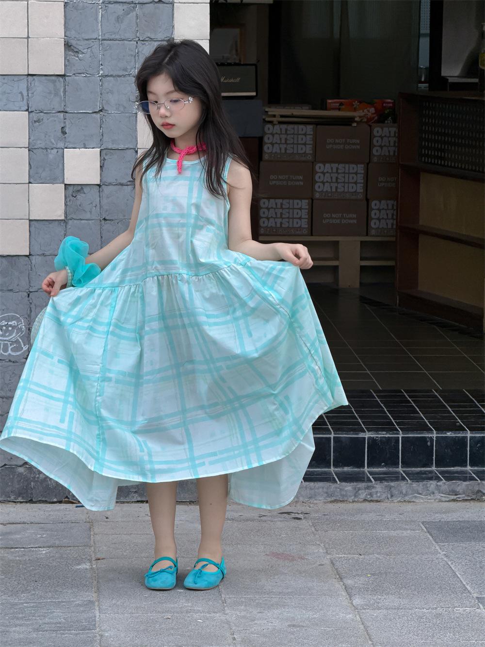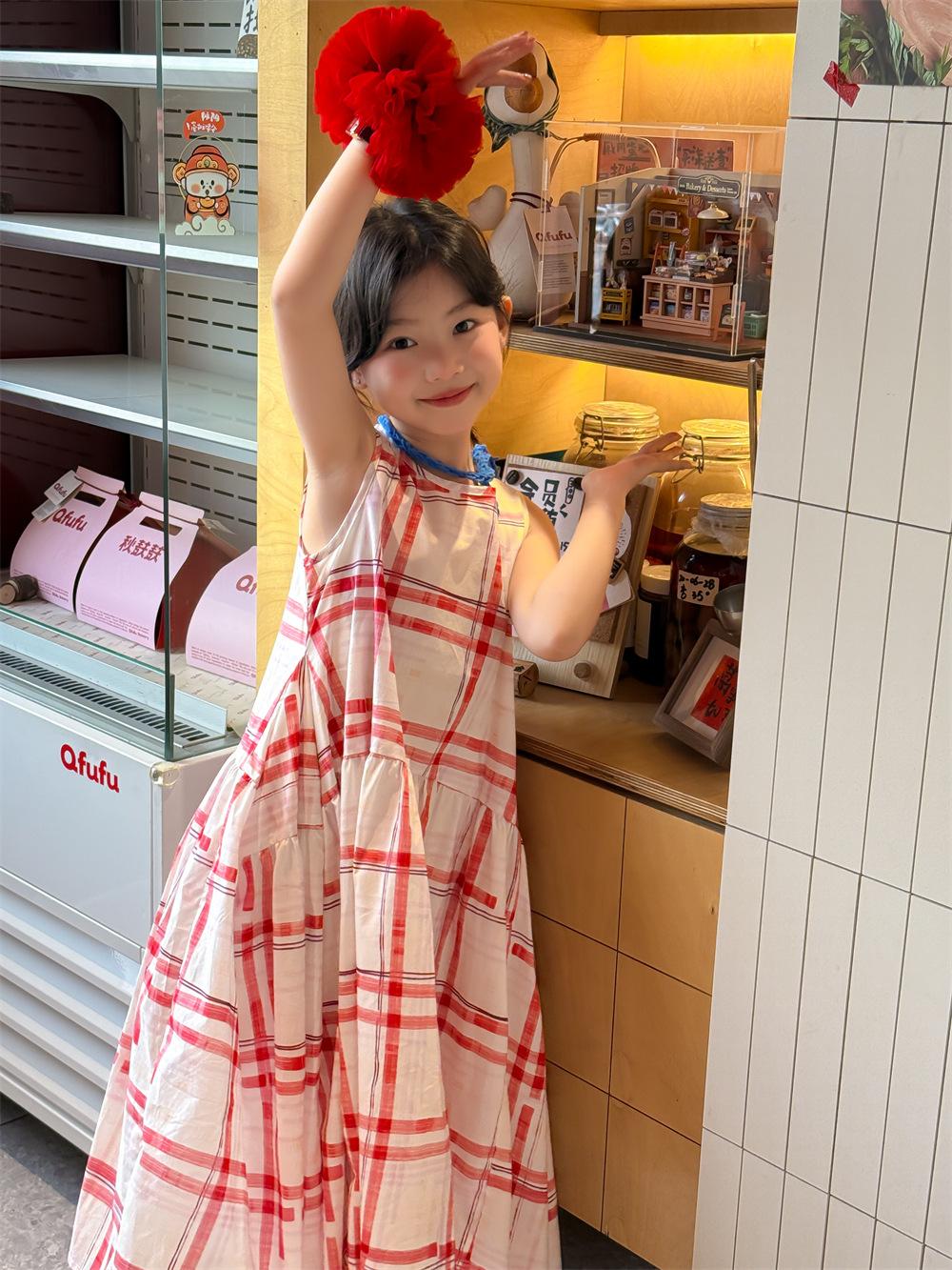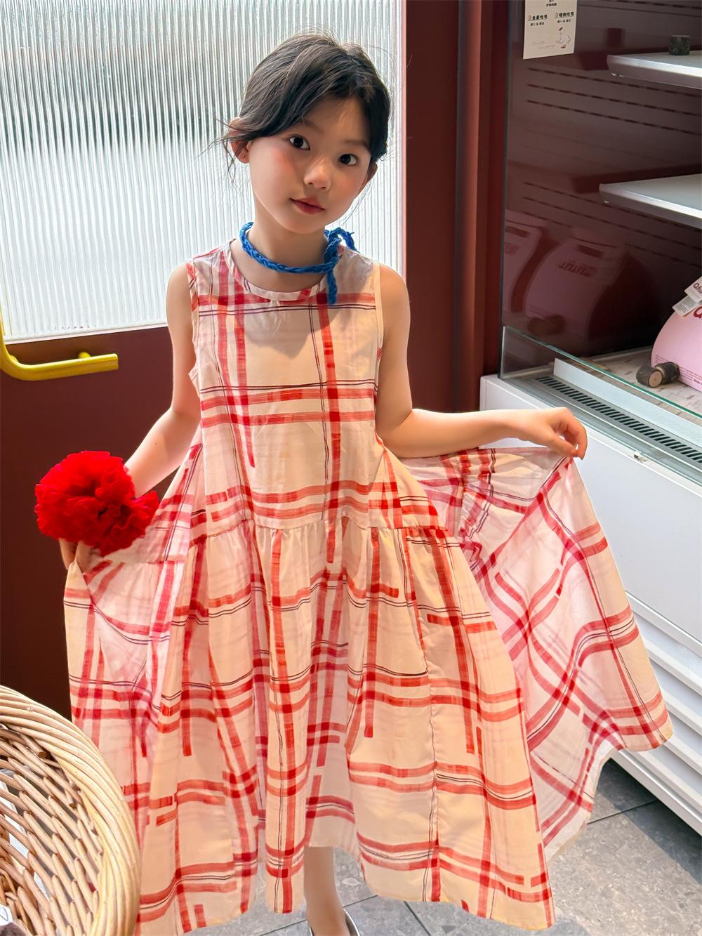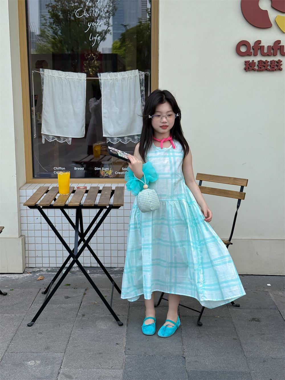 Ropa para niños Flower and seek vestido para niñas 2025 verano nuevo vestido de princesa a cuadros falda infantil de moda