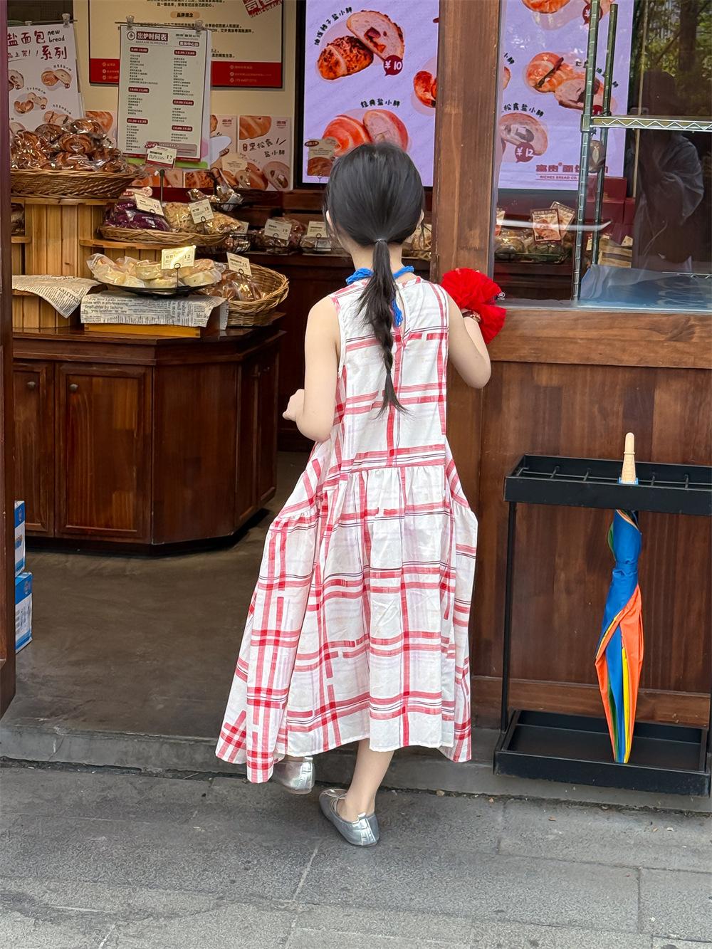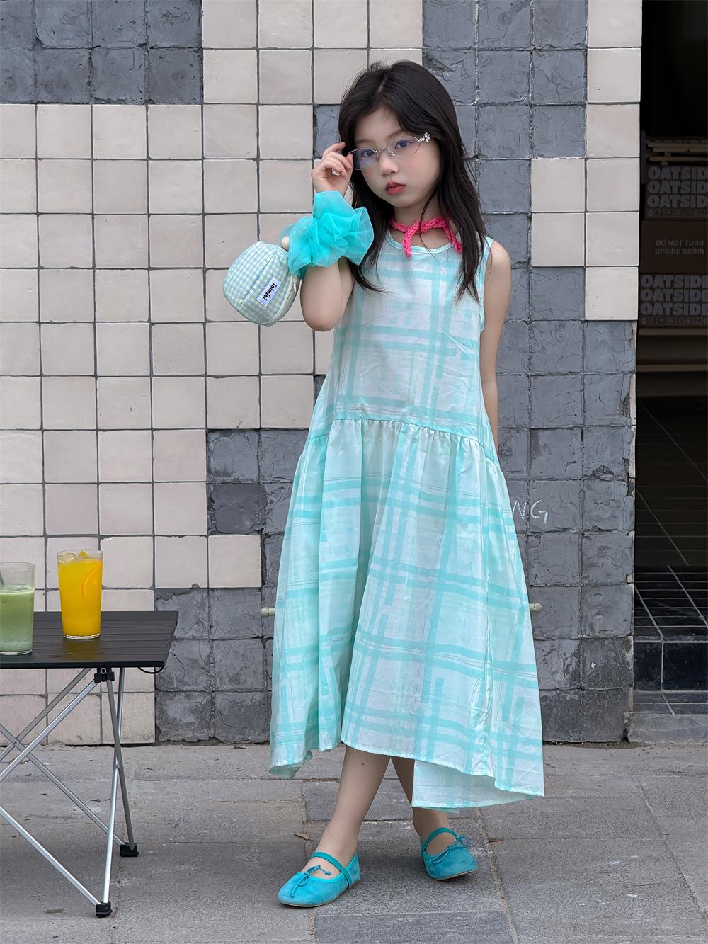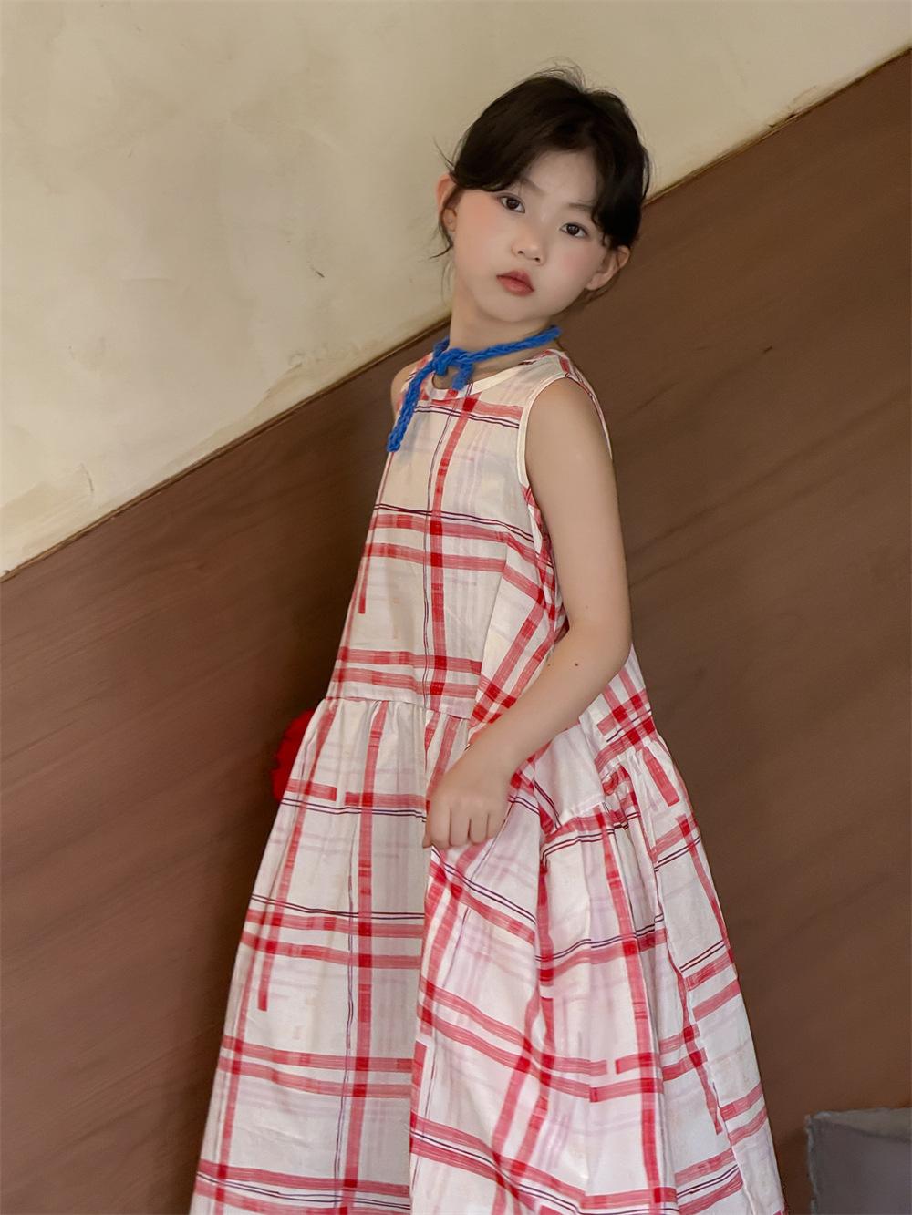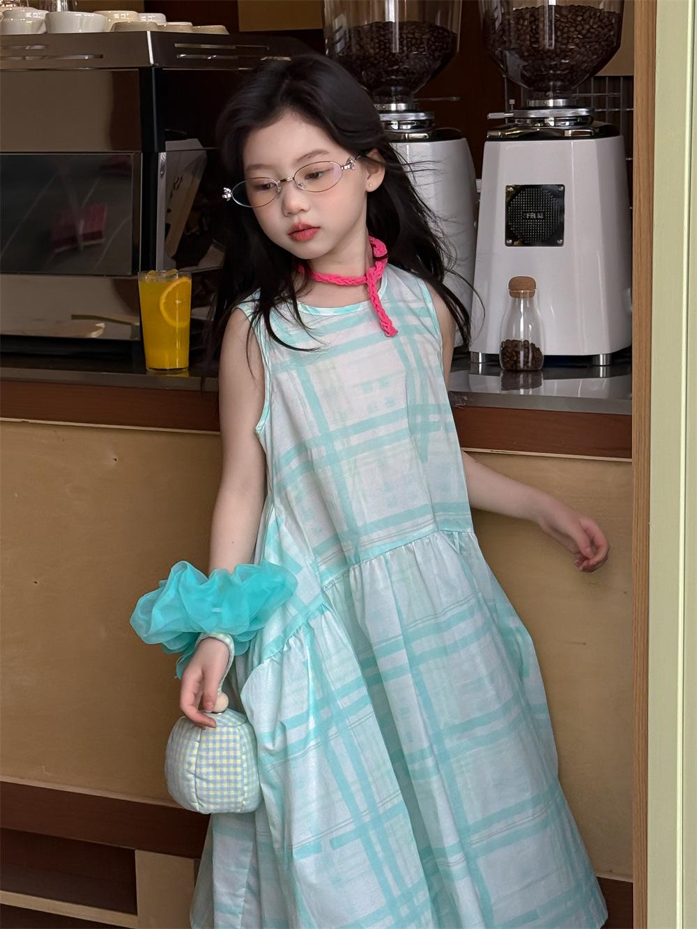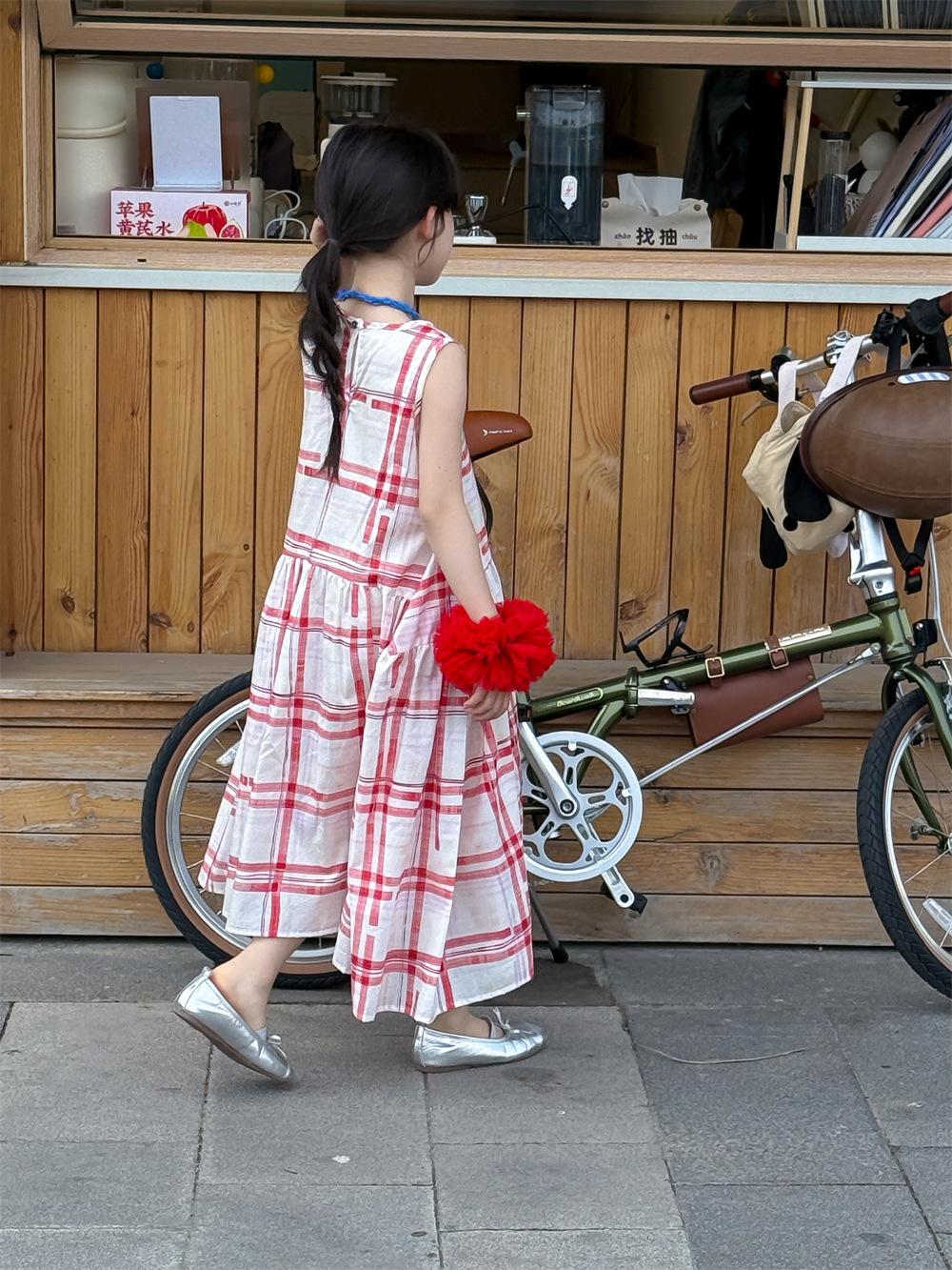 Ropa para niños Flower and seek vestido para niñas 2025 verano nuevo vestido de princesa a cuadros falda infantil de moda