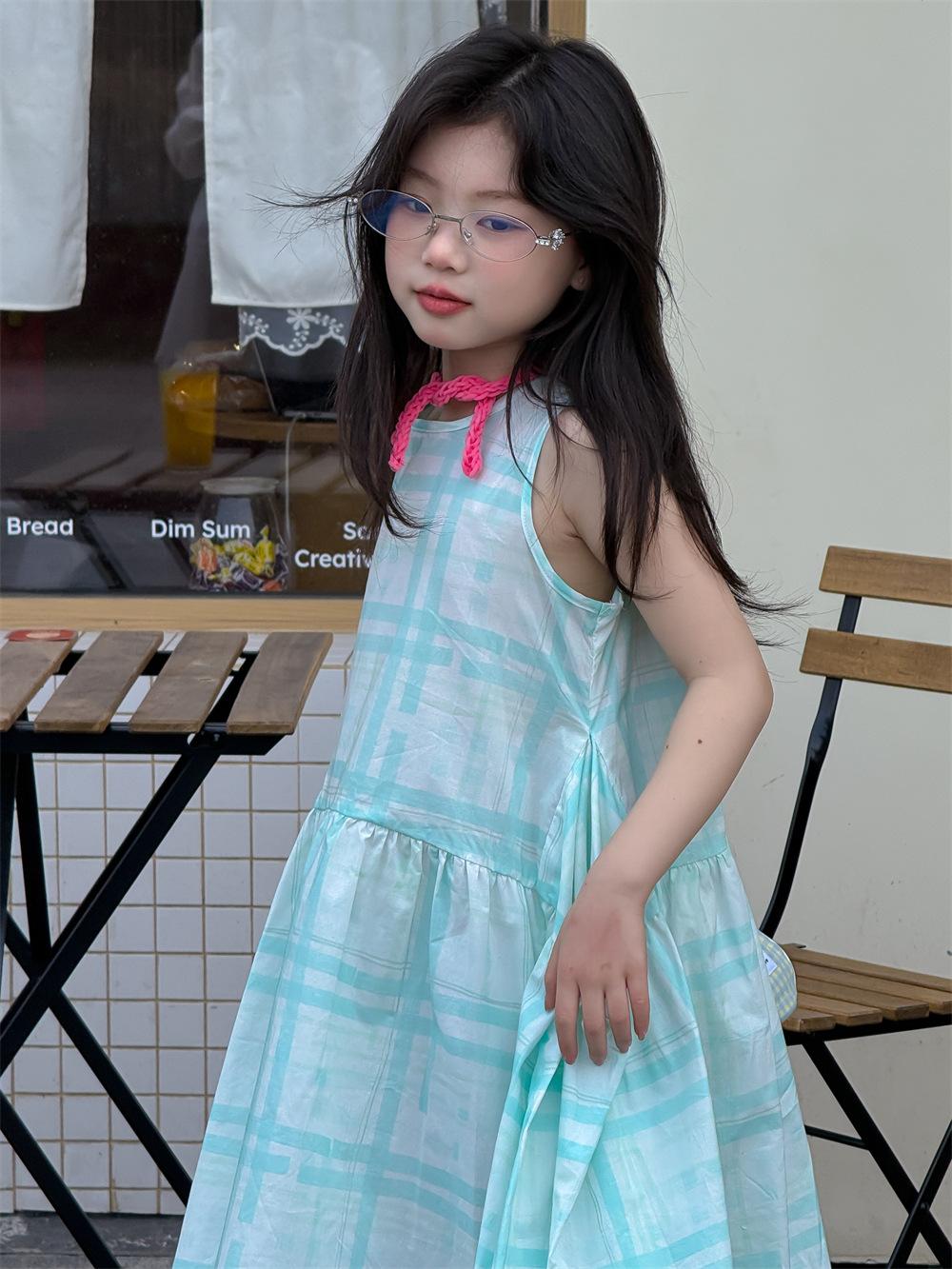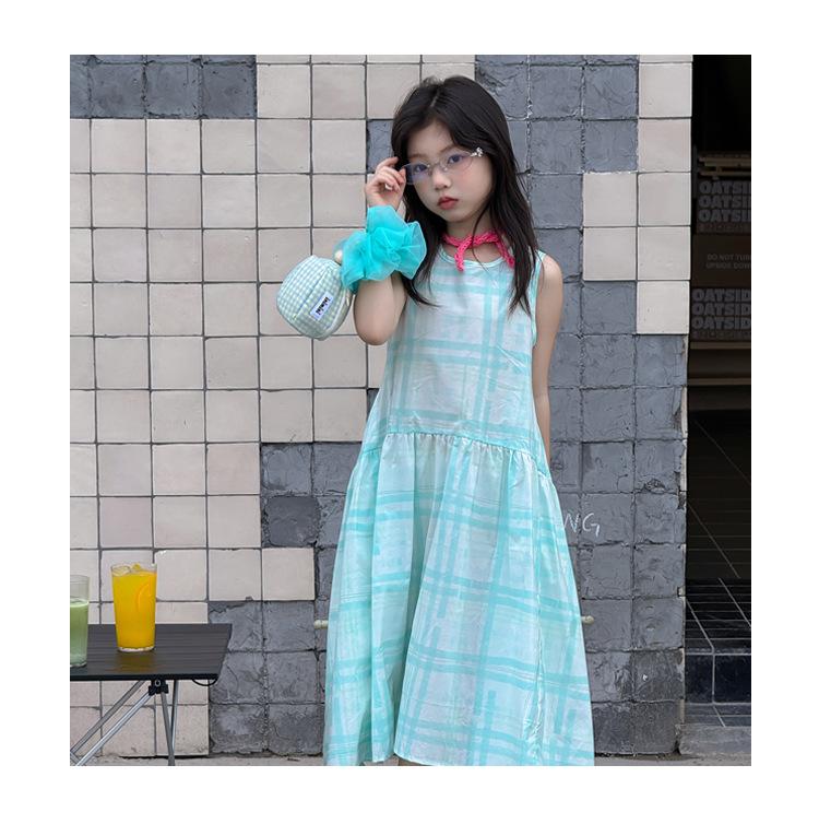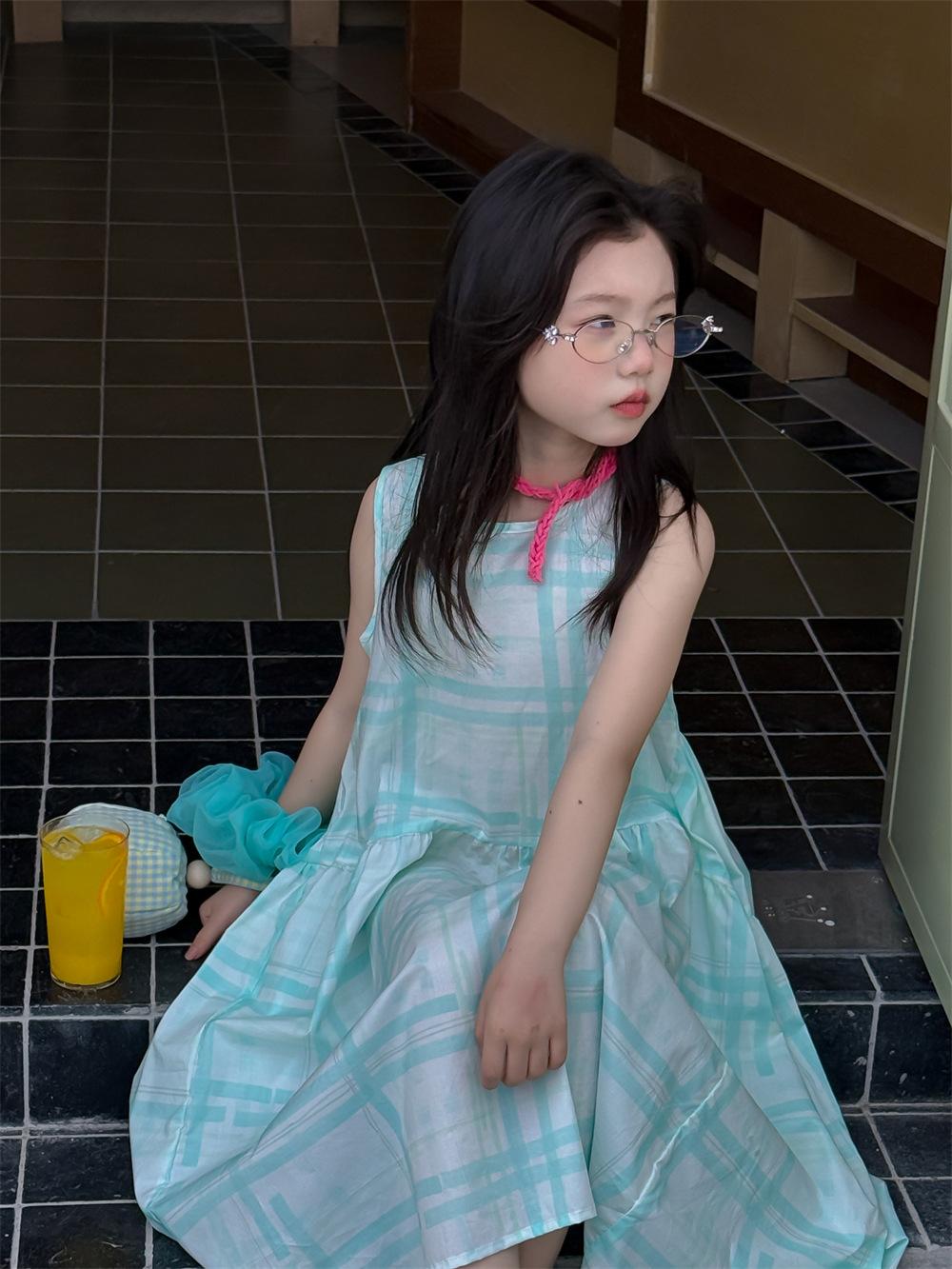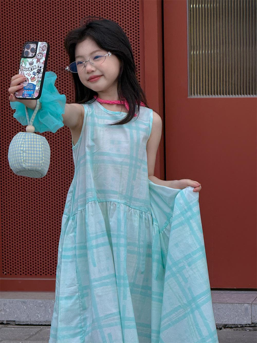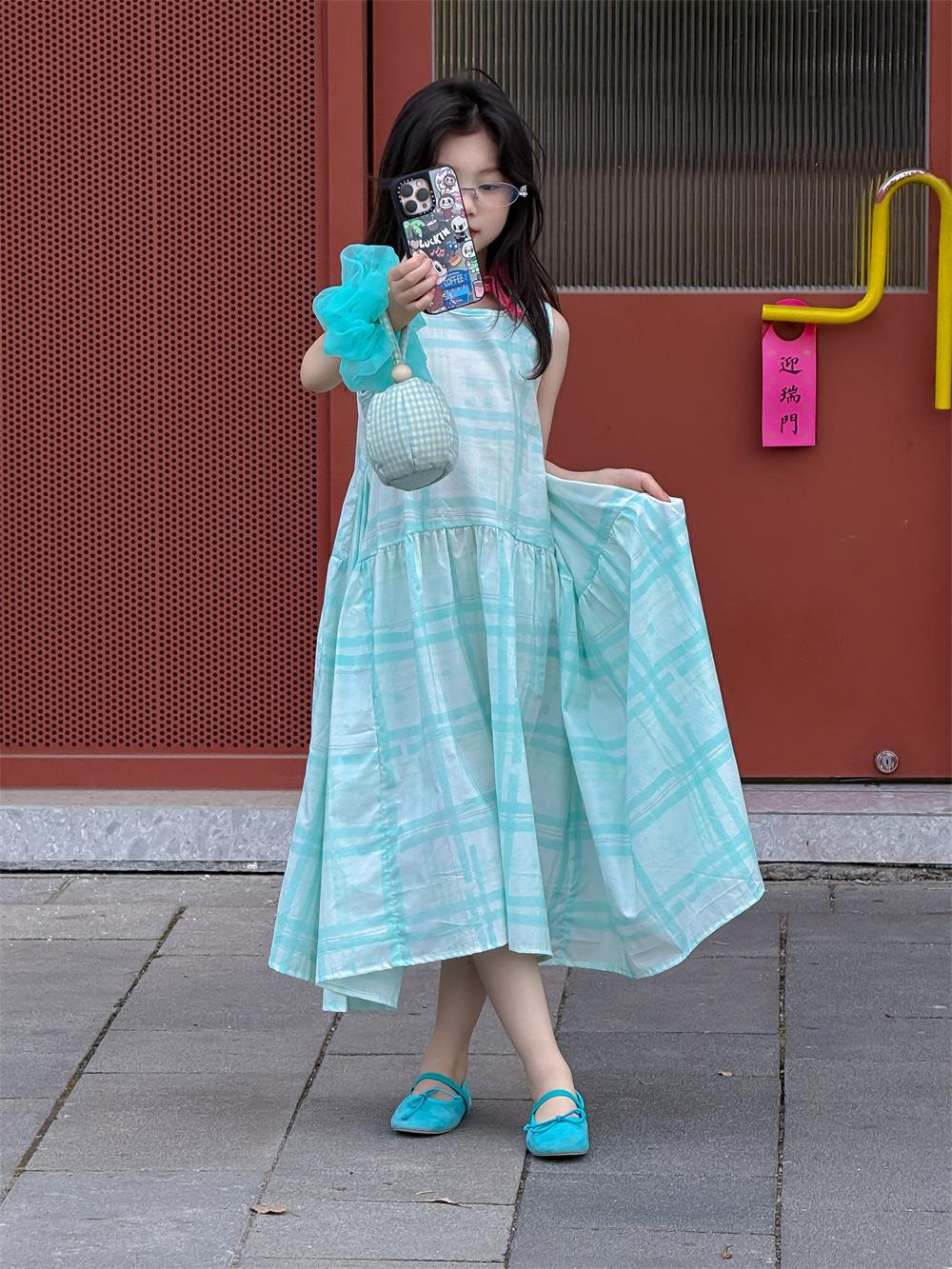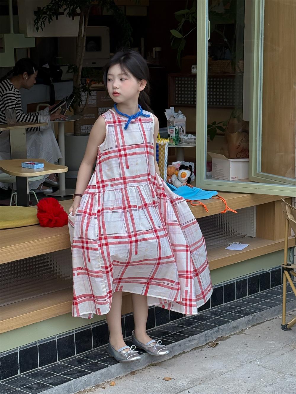 Ropa para niños Flower and seek vestido para niñas 2025 verano nuevo vestido de princesa a cuadros falda infantil de moda