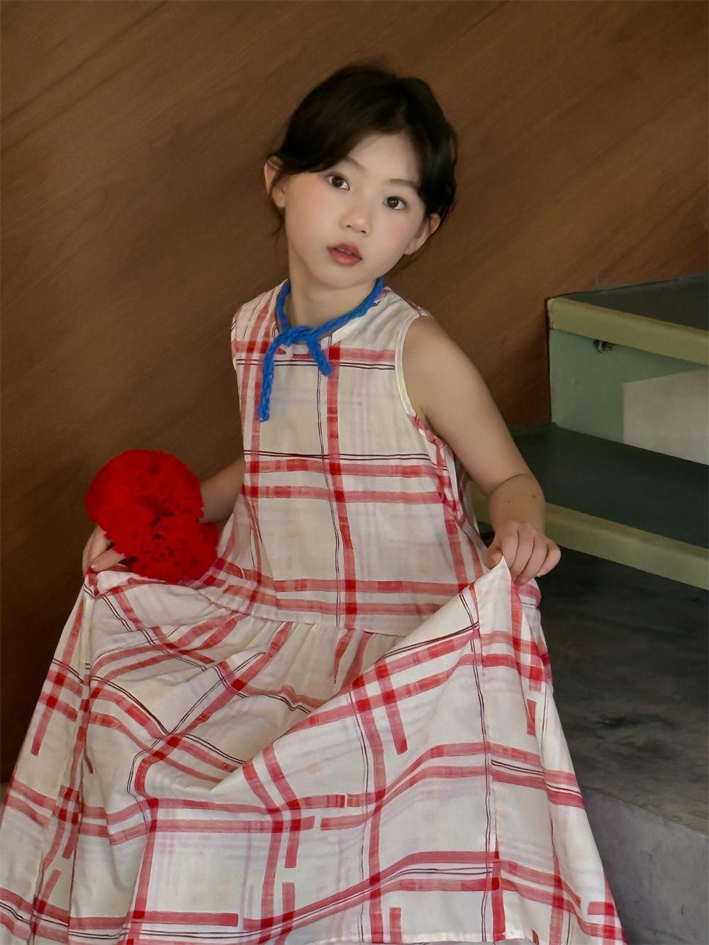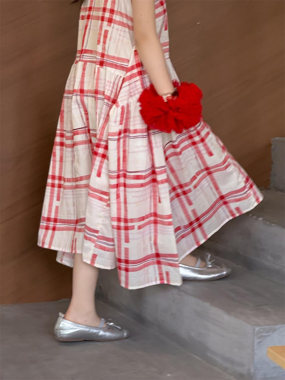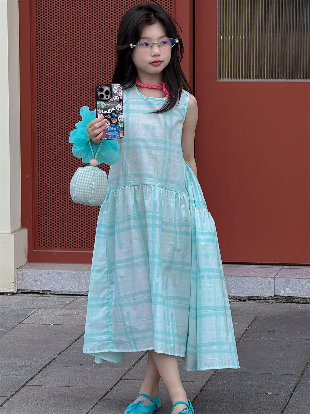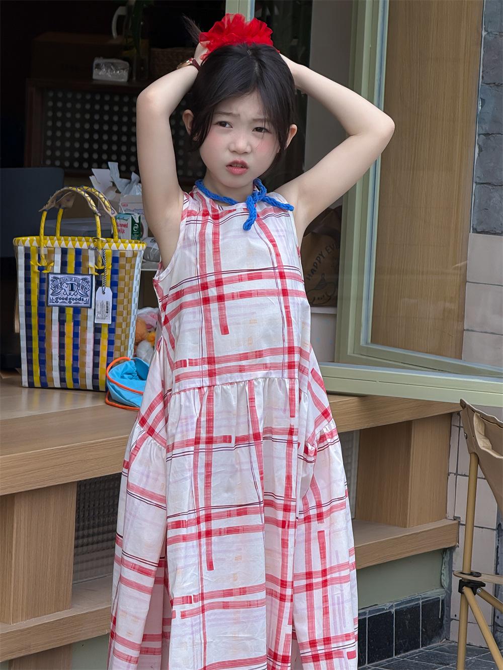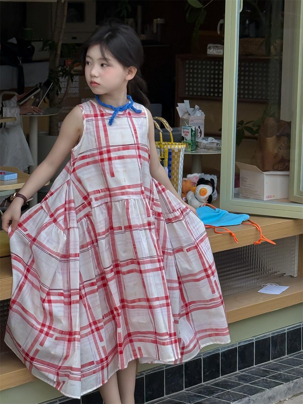 Ropa para niños Flower and seek vestido para niñas 2025 verano nuevo vestido de princesa a cuadros falda infantil de moda