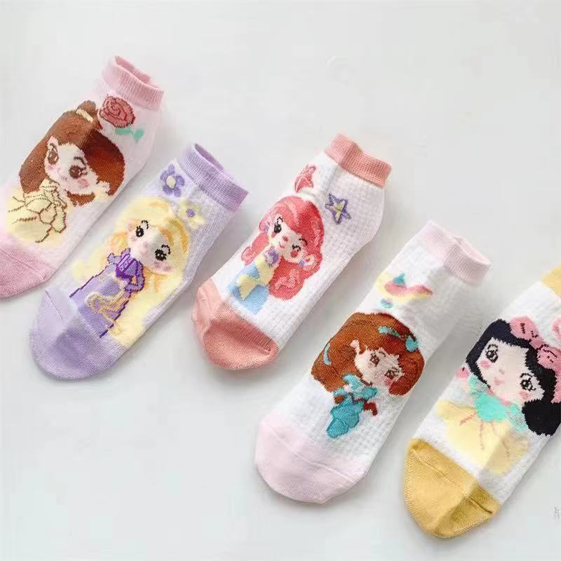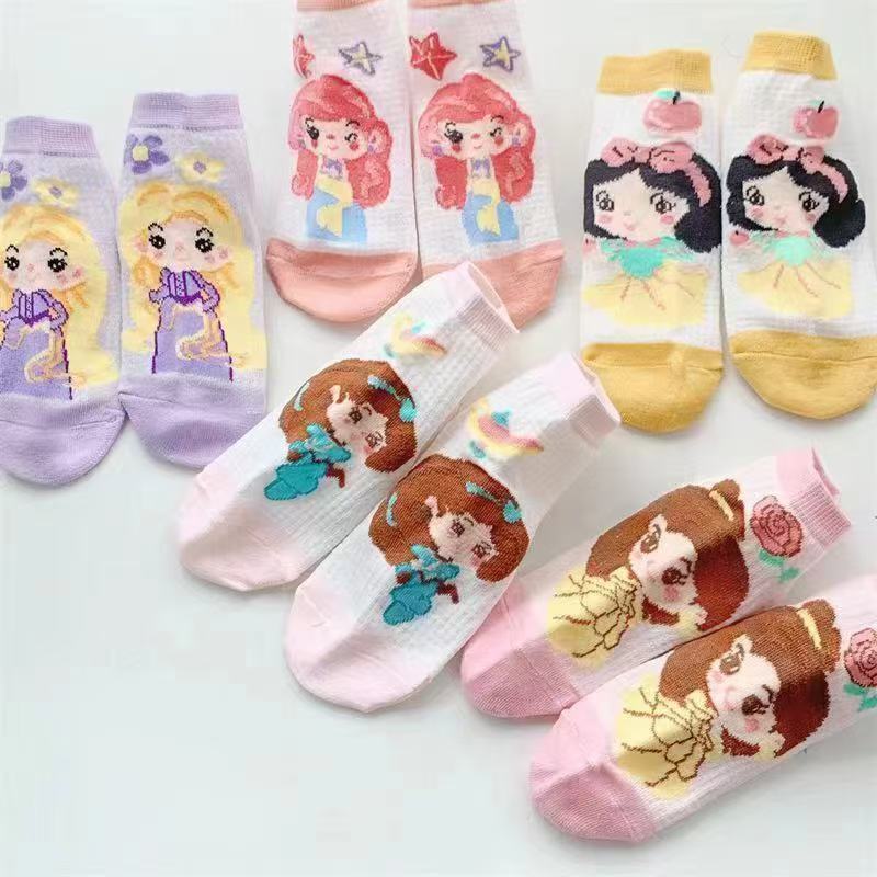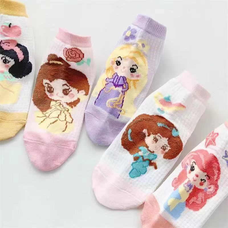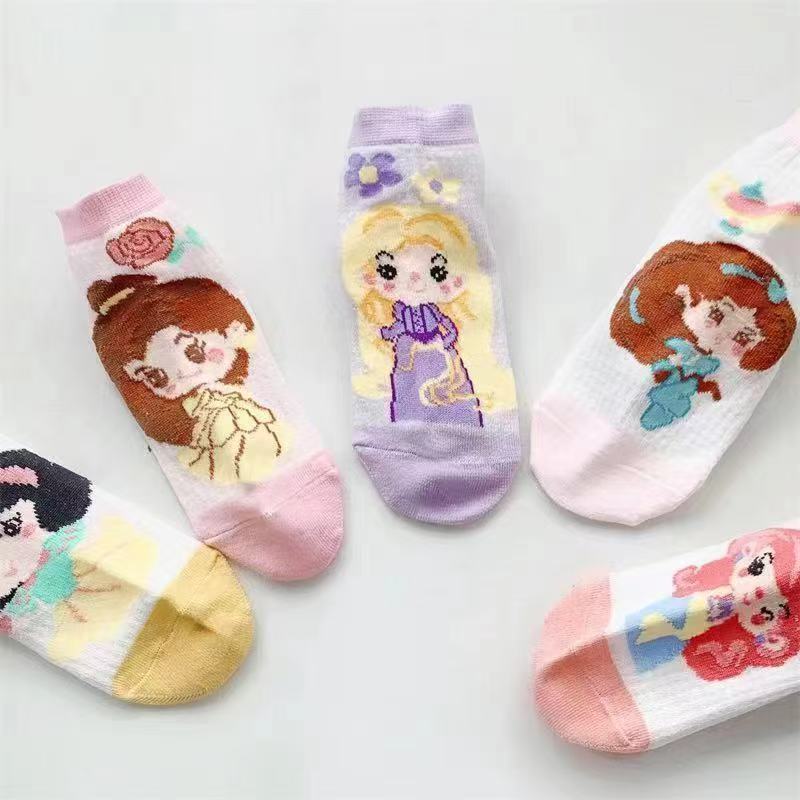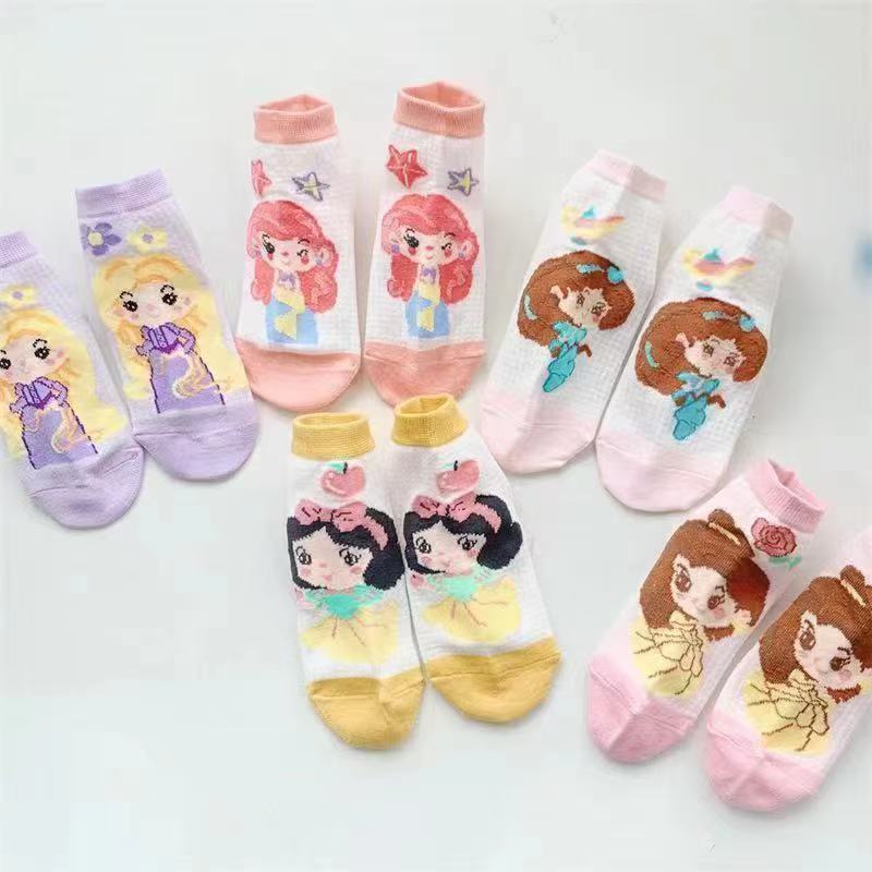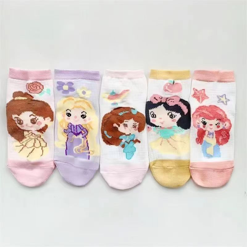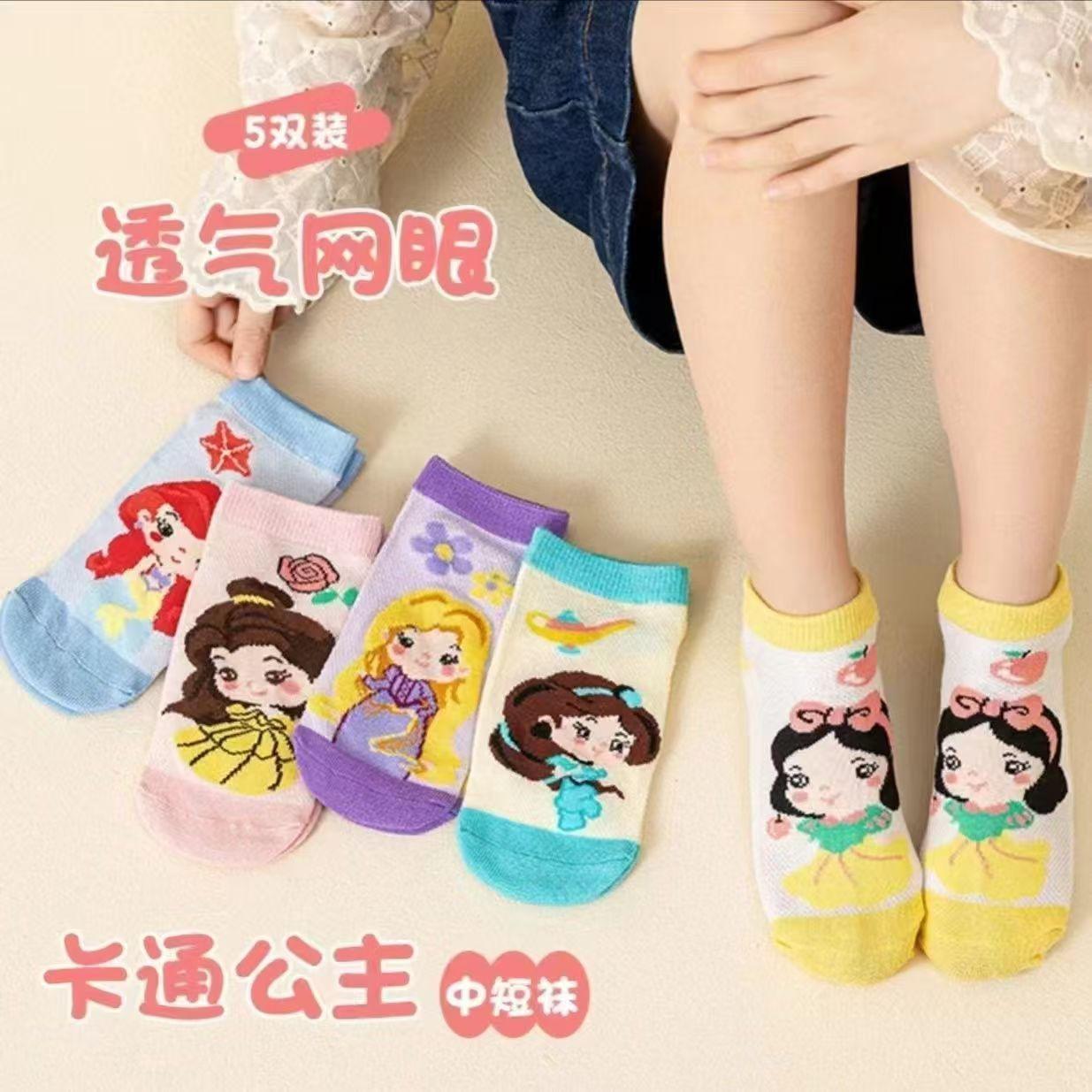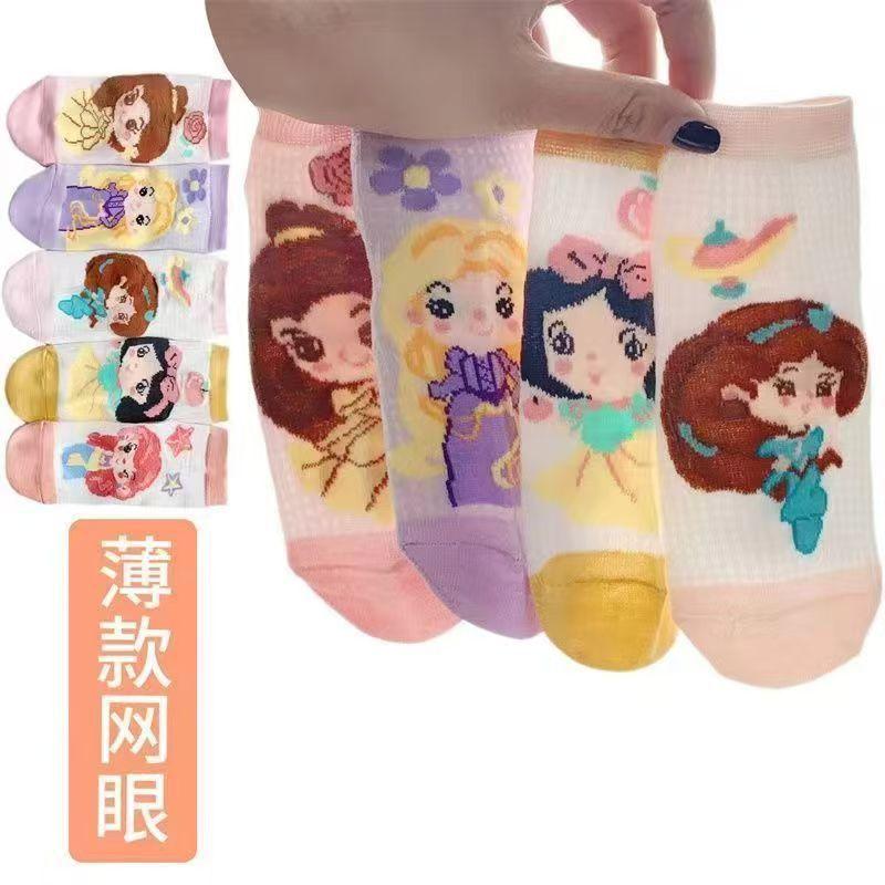 Calcetines de Malla de Dibujos Animados para Niños Verano Princesa Bebé Transpirables Delgados Media Caña Calcetines para Niñas Estudiantes Secundaria Calcetines para Niños