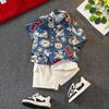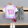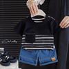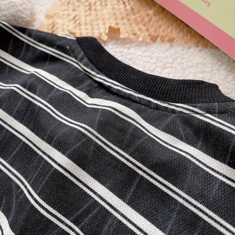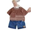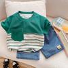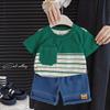 Traje de Verano para Niño 2025 Nuevo Conjunto de Dos Piezas de Manga Corta a Rayas Empalmadas para Niños Ropa Casual de Verano para Bebé a la Moda