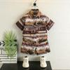 Brown x patch pocket short-sleeved suit