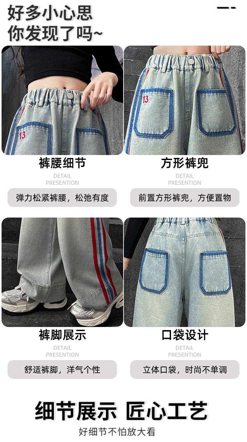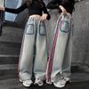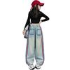 2024 Verano Nueva Moda Pull Denim Pantalones Pierna Ancha Sueltos Rectos Adelgazantes Modernos Jeans de Dos Piezas