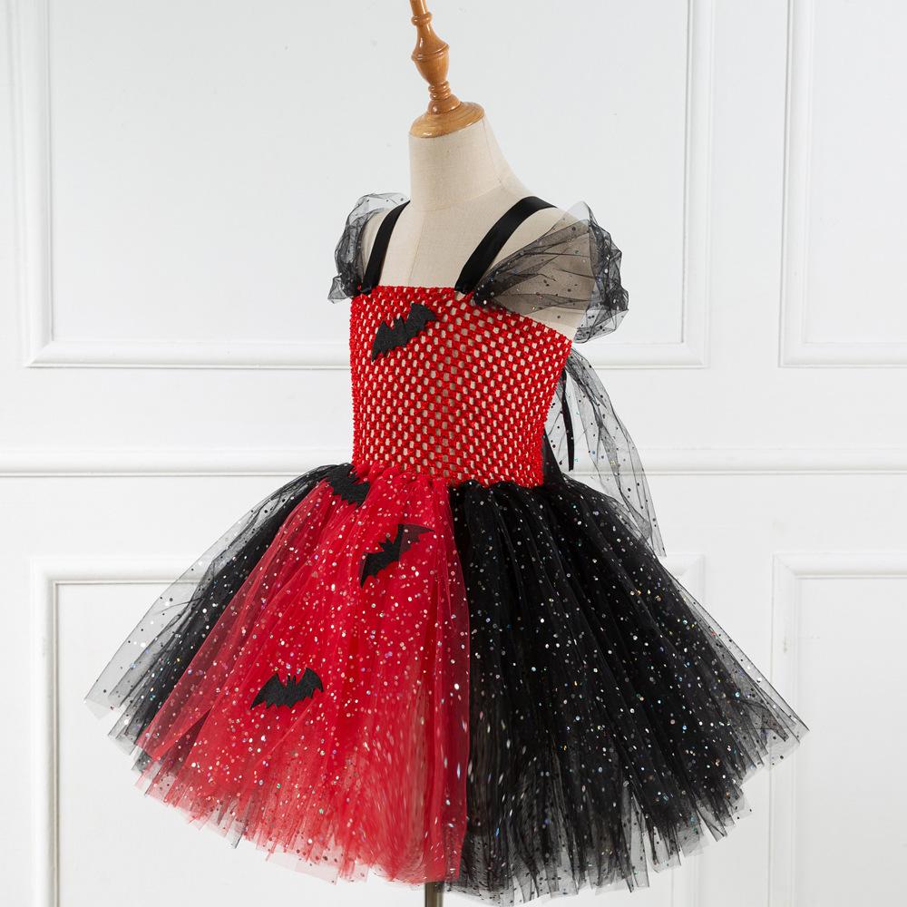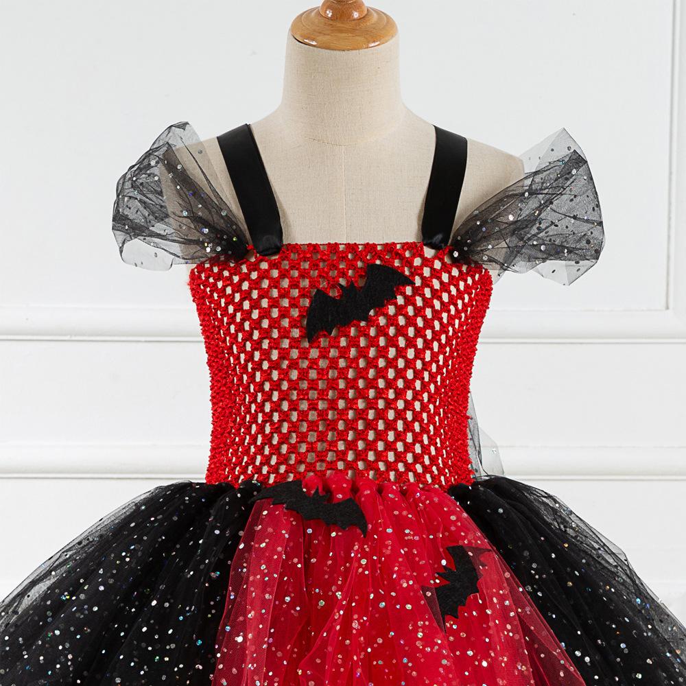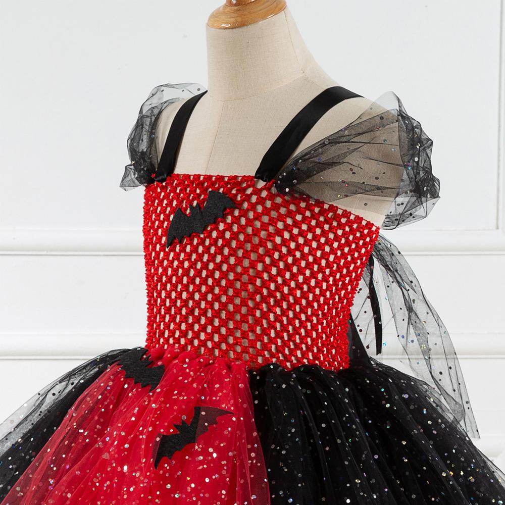 Vestido de Princesa Transfronterizo para Niñas Disfraz de Bruja de Halloween para Cosplay Vestido de Actuación de Malla con Lentejuelas para Niñas