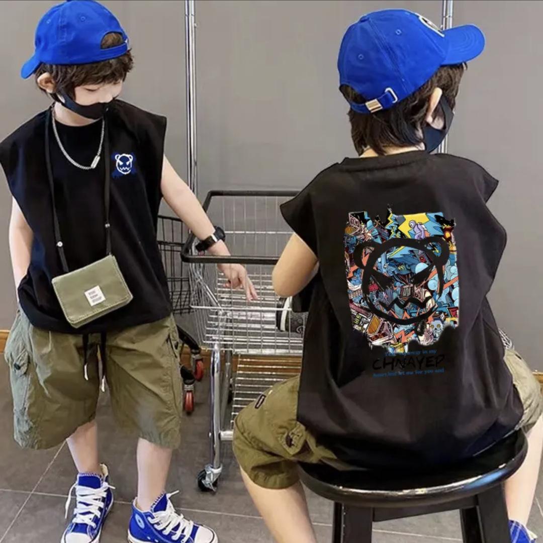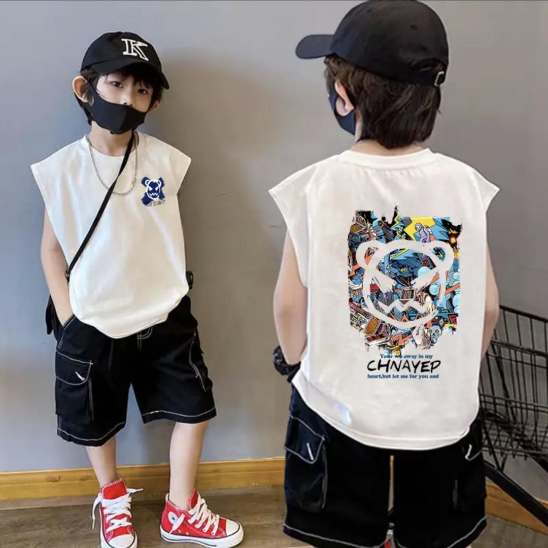 Ropa para niños Estilo de verano Chaleco sin mangas para niños 2025 Mediano y Grande Niños a la moda Cool y Guapo Impreso Sin mangas Chaleco para bebé Camiseta