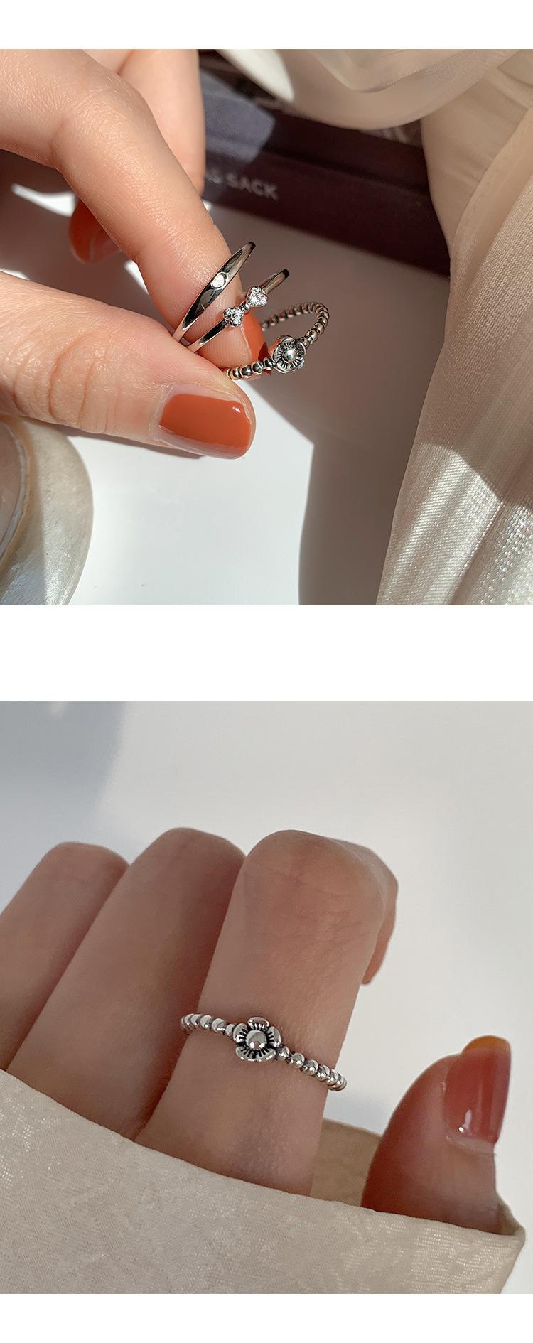 Anillo de Plata Esterlina S925 Flor Lazo Corazón Femenino Ins Estilo Trendy Cool Nicho Dedo Índice Lujo Accesible