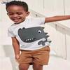 2024 Verano Estilo Europeo y Americano Ropa para Niños Camiseta de Niños Cuello Redondo Estampada Manga Corta Tejido de Punto Camiseta Básica de Algodón para Niño
