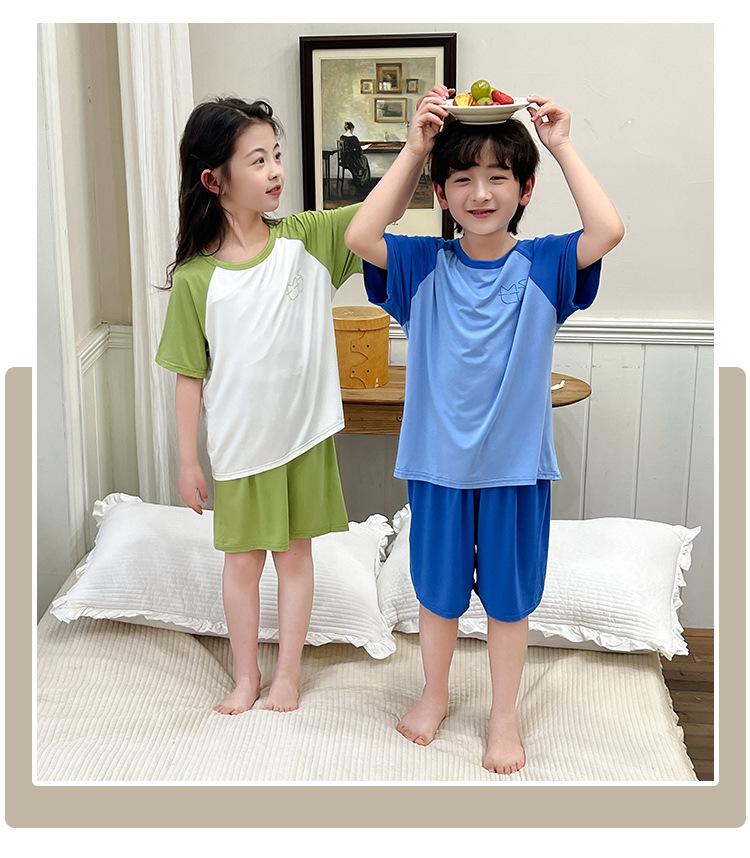 Ropa Infantil Acondicionada para Niños y Niñas, Mangas Raglán, Ropa de Casa de Verano, Pantalones Cortos de Manga Corta para Bebé, Pijamas Delgados, Pijamas