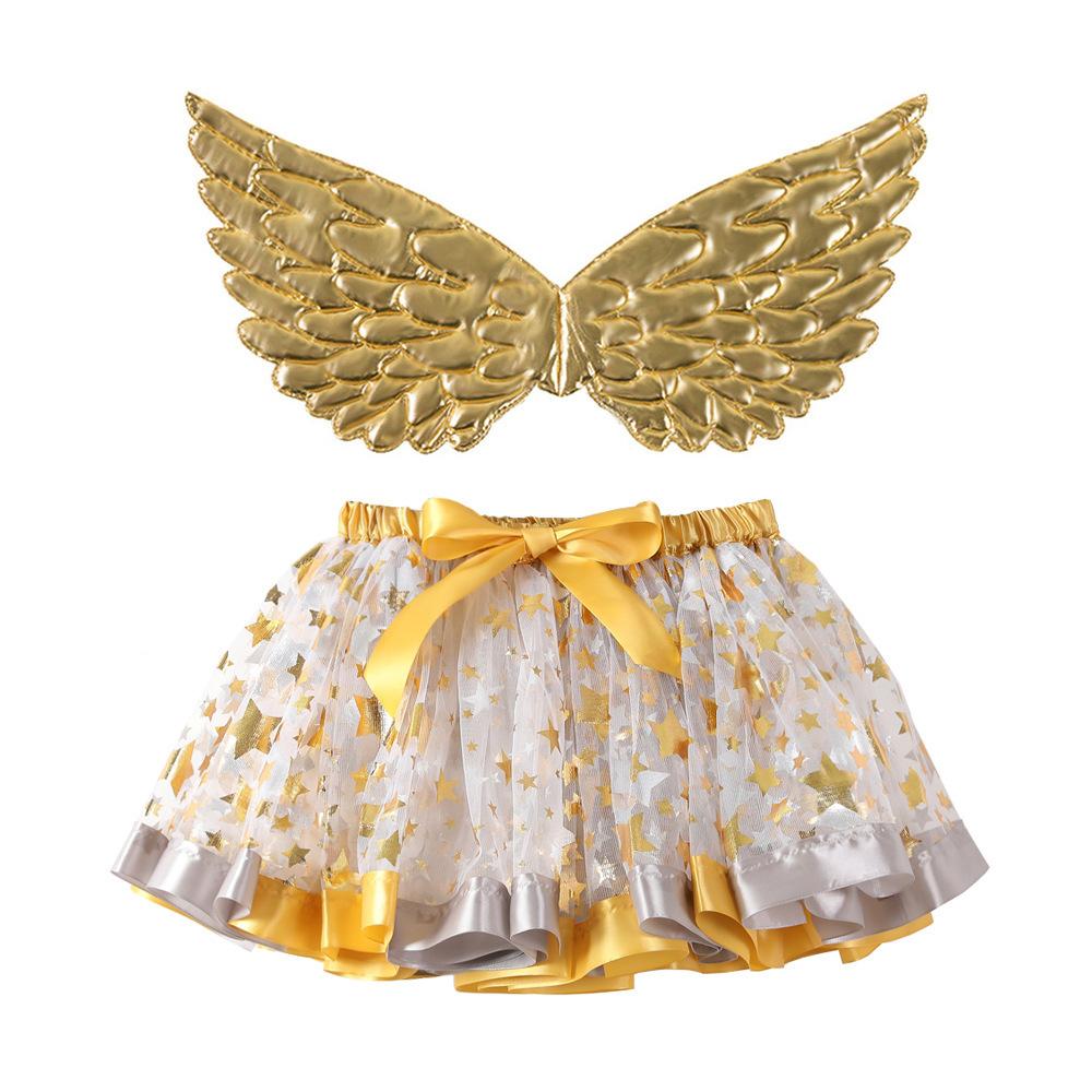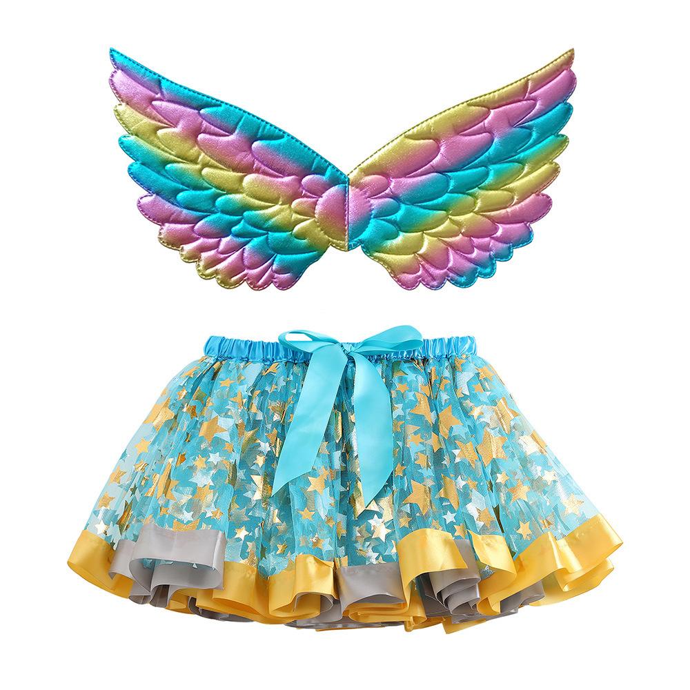 Falda Europea y Americana para Niños con Alas y Estampado de Estrellas Falda Tutú de Malla con Lazo y Forro para Envío Directo