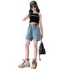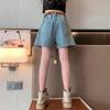 Shorts de mezclilla para niña Verano 2025 Nuevos Elegantes de Media Longitud Shorts de Verano para Niños Modernos Versátiles Pantalones Cortos Hot