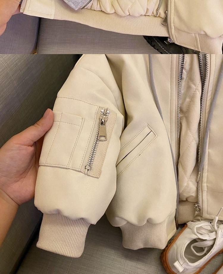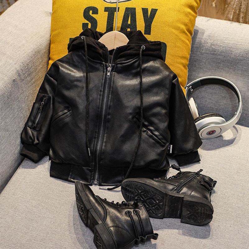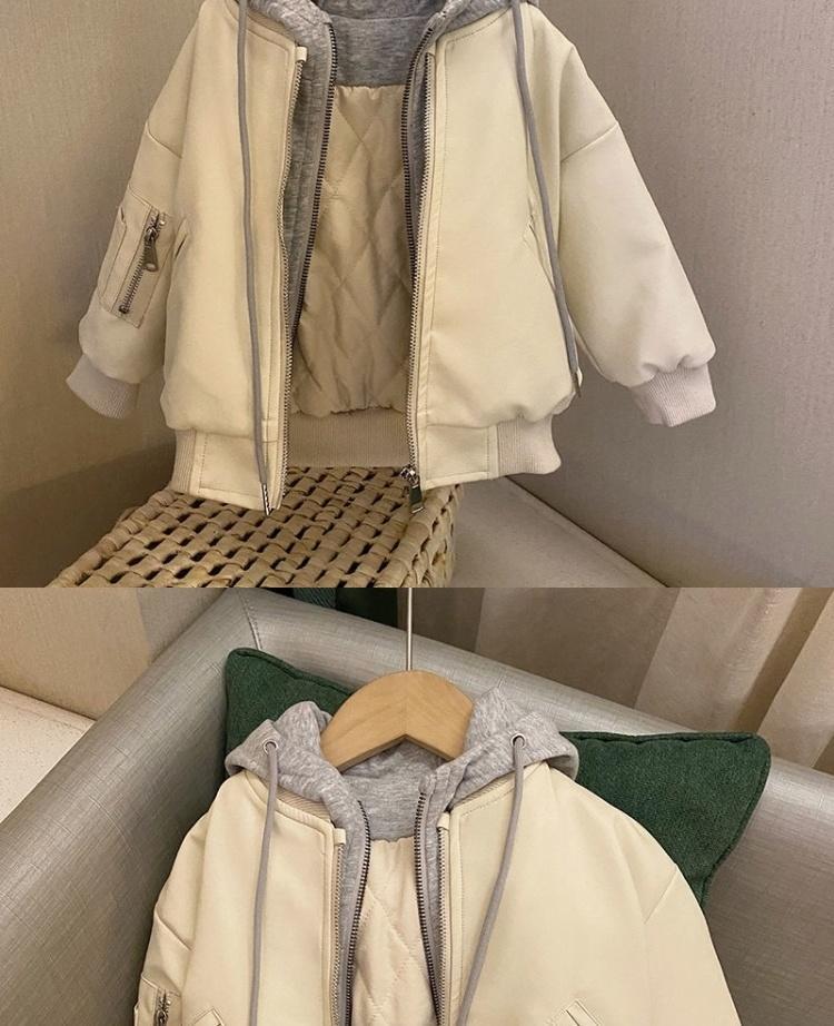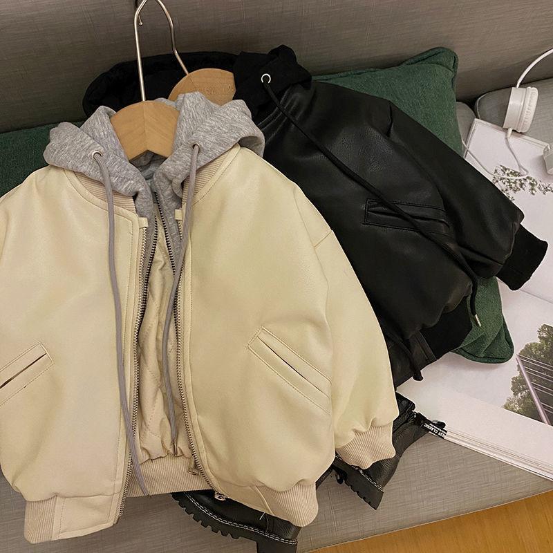 Chaqueta de Cuero Gruesa para Niños Otoño e Invierno 2023 Nueva Chaqueta de Cuero Falso de Dos Piezas Estilo Coreano Abrigo Infantil de Moda