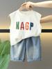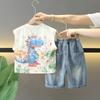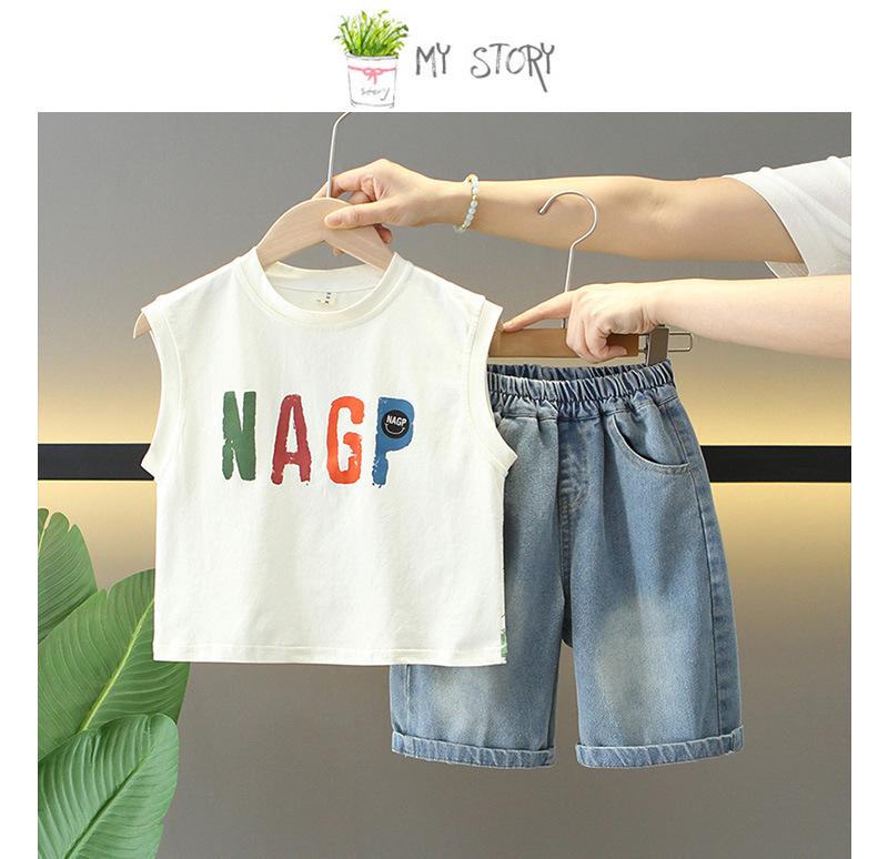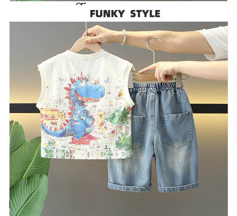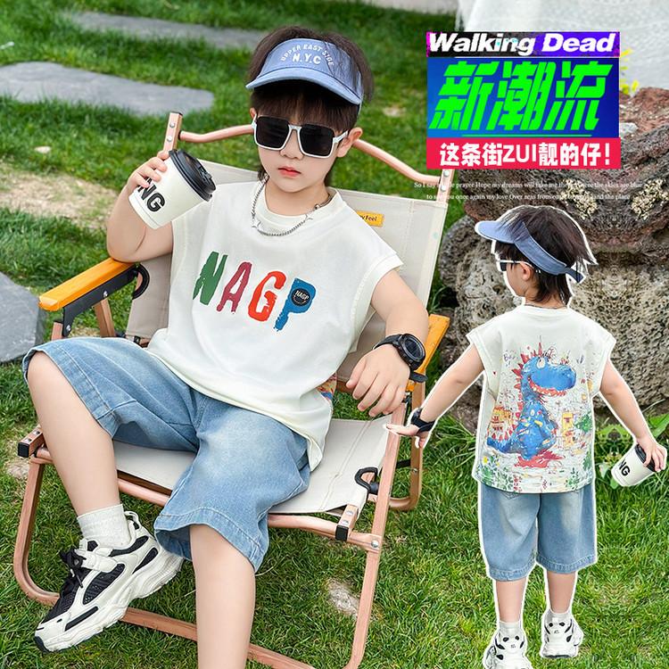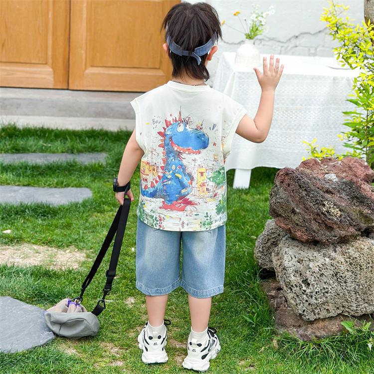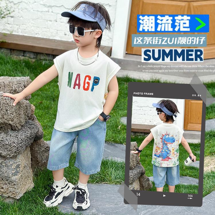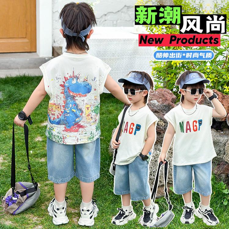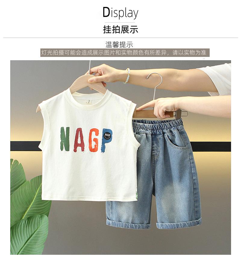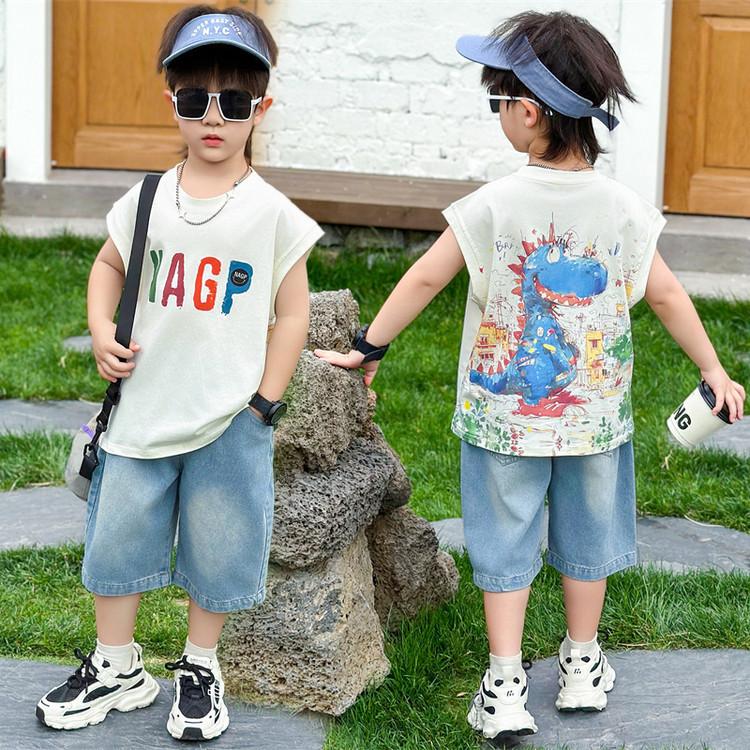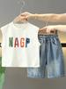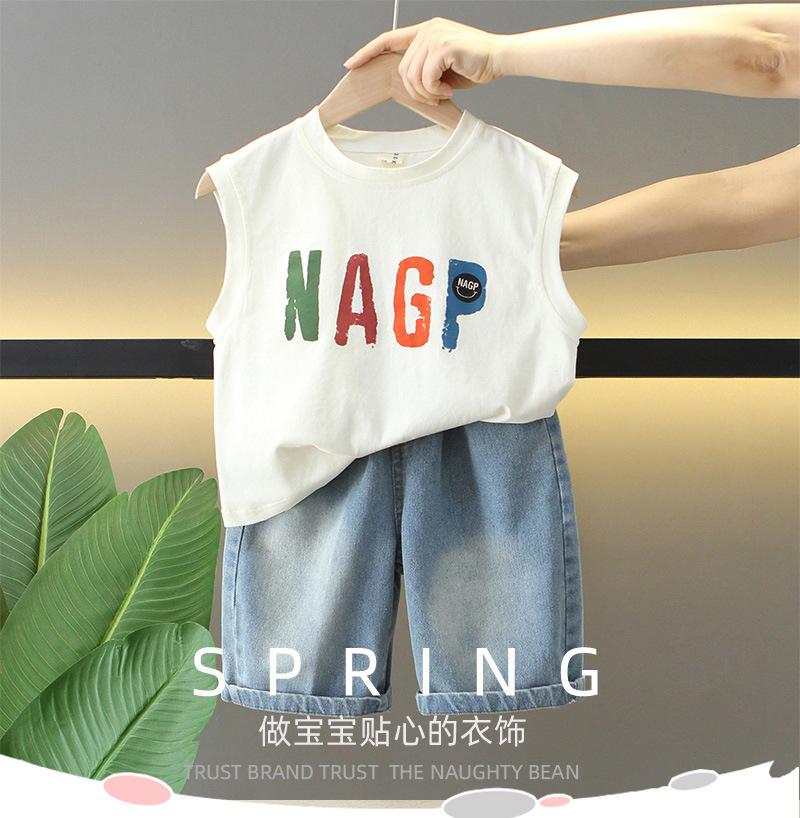 8199 Traje de Verano para Niño 2025 Nuevo Chaleco para Niños Pantalones Cortos de Mezclilla Conjunto de Dos Piezas Ropa de Verano para Bebé a la Moda