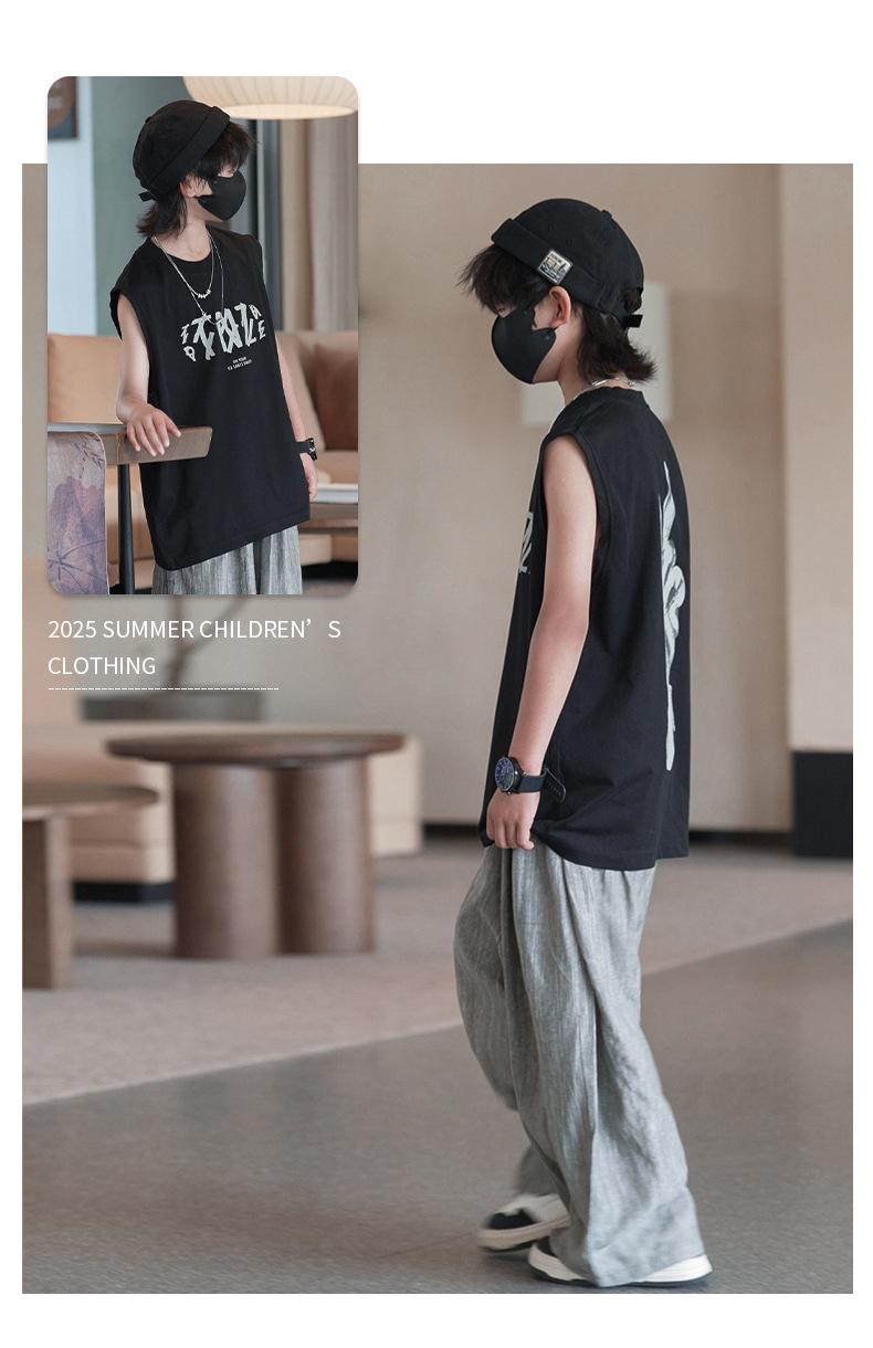 Ropa para Niños Zhilu Chaleco para Niños Ropa de Verano 2025 Nuevo Camisetas sin Mangas para Niños Medianos y Grandes Tops de Verano para Niños de Moda