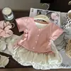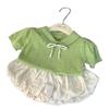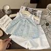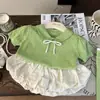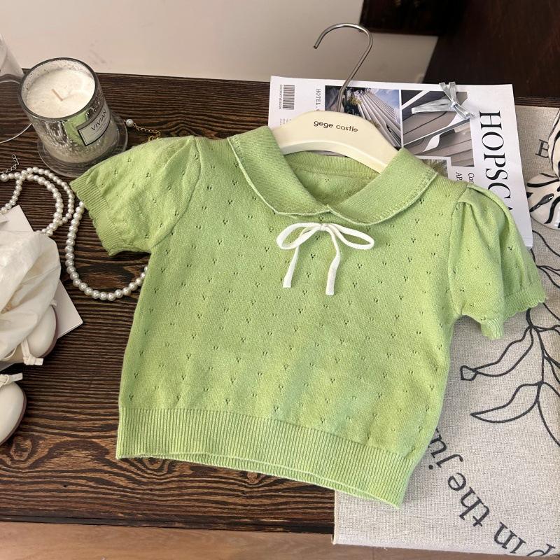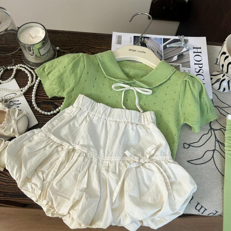 Grande Promoção Não Reembolsável e Não Trocável [Peça Racionalmente] Verão Meninas Recortado Tricotado Manga Curta + Shorts Botão
