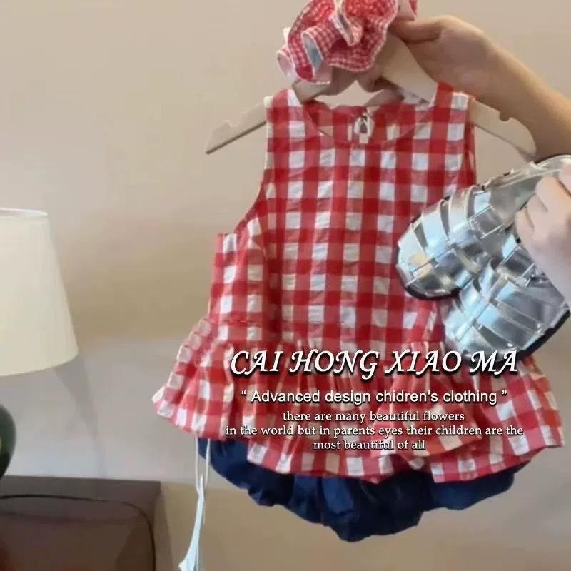 Chaleco de Bebé Ropa de Verano 2025 Nueva Camisa de Niña Combinación de Colores a la Moda Cuadros Niña Encaje Top sin Mangas