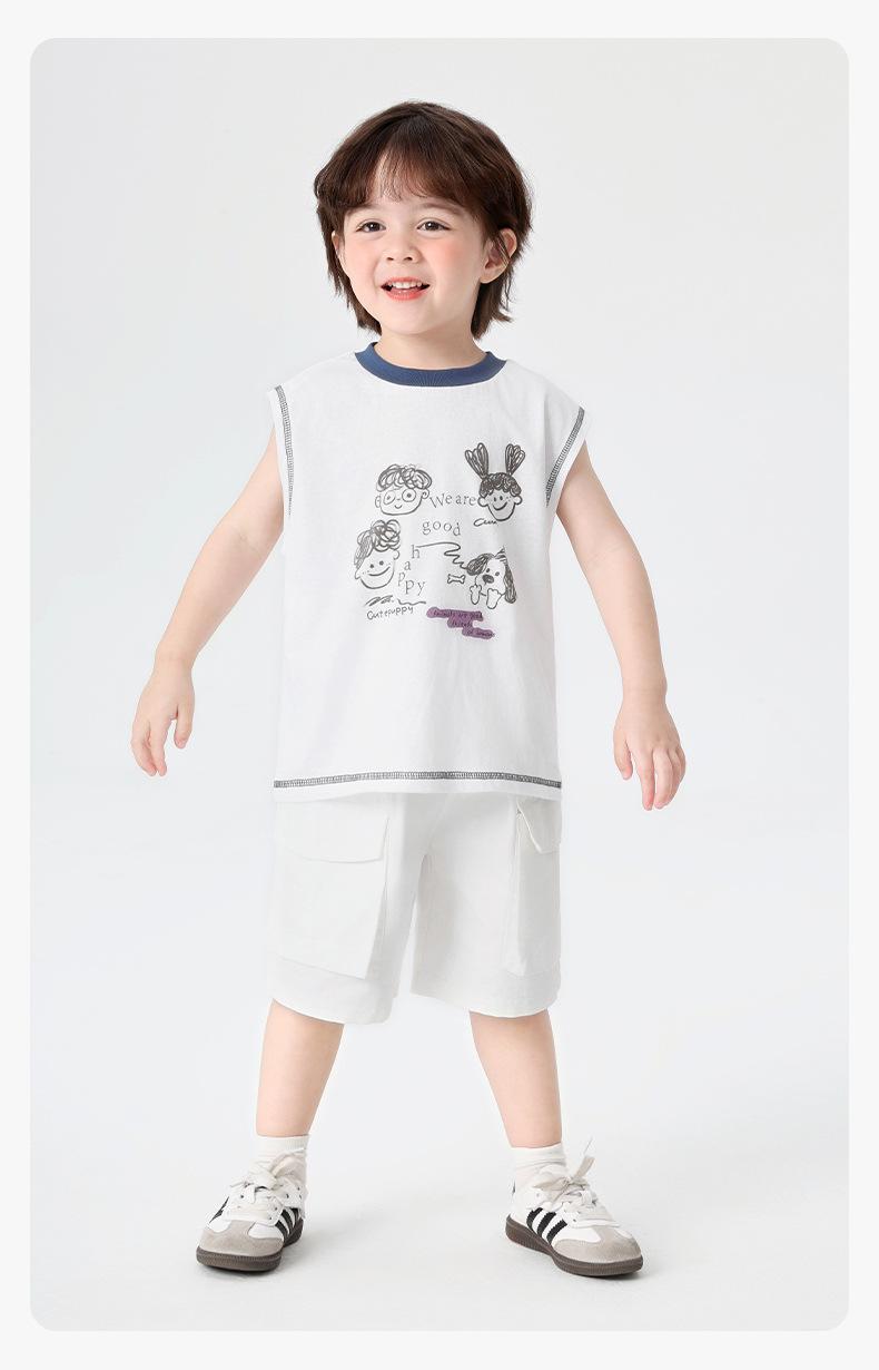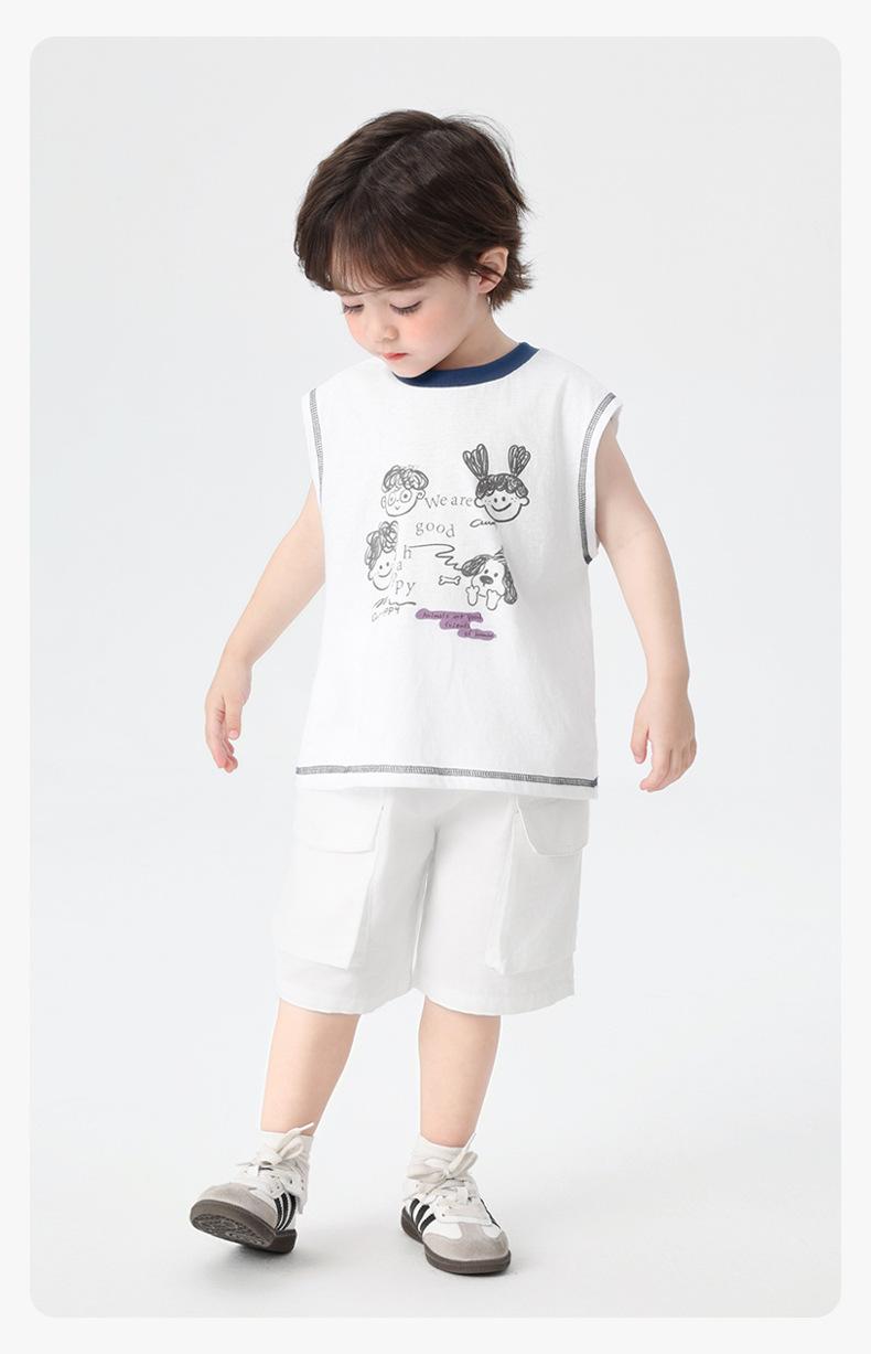 Chaleco de Algodón para Niños Europeos de Verano 2025 Ropa Nueva para Niños Camiseta sin Mangas para Bebés y Niños Verano Fino