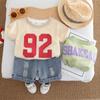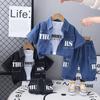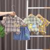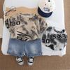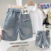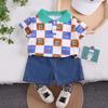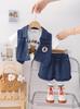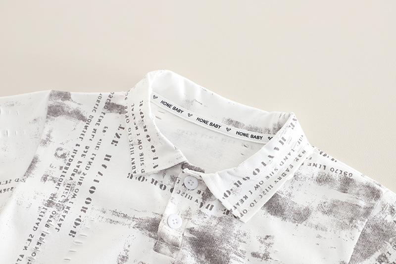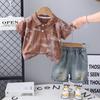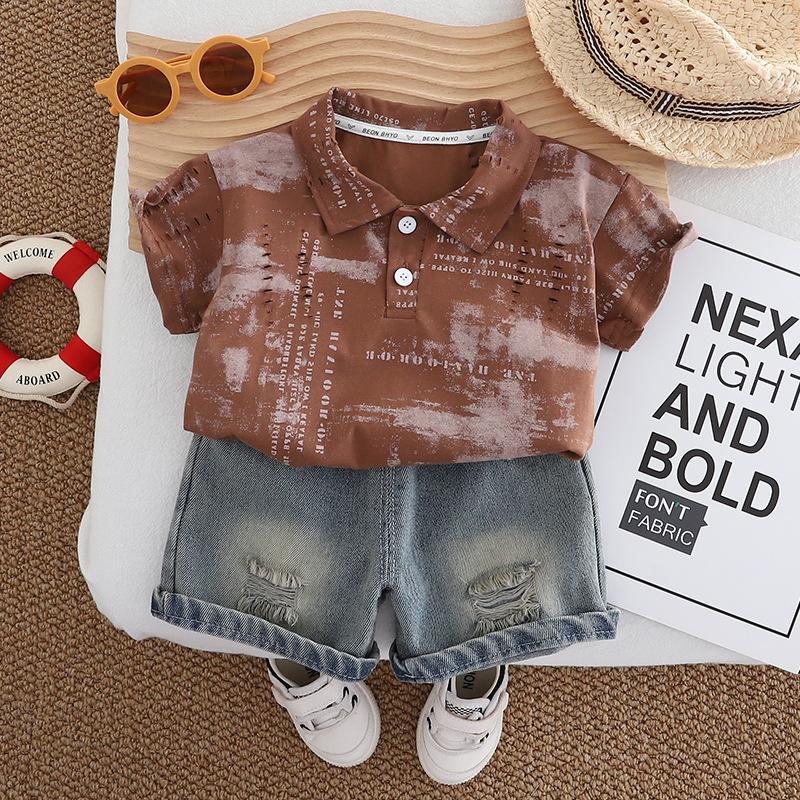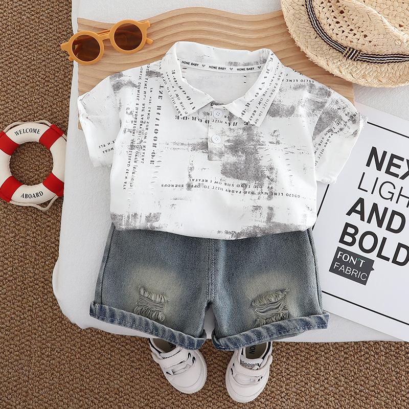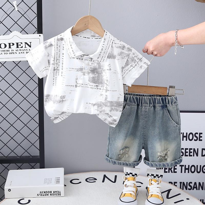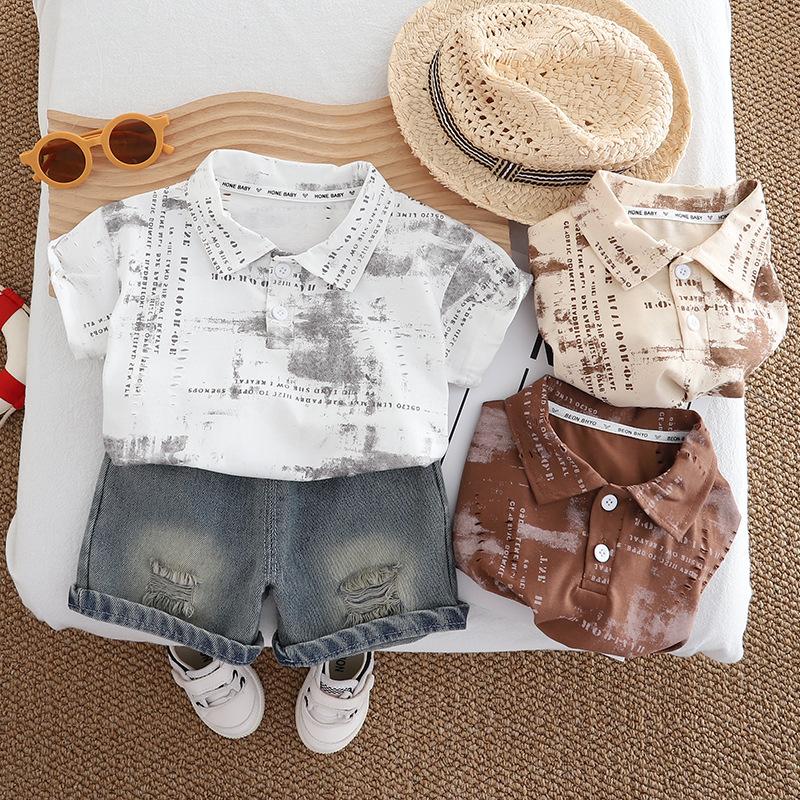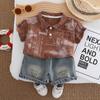 Ropa Infantil de Comercio Exterior al Por Mayor 2025 Verano Nuevo Estilo Traje Guapo de Solapa con Estampado Completo para Niño Pantalones Cortos de Mezclilla Suave para Niños