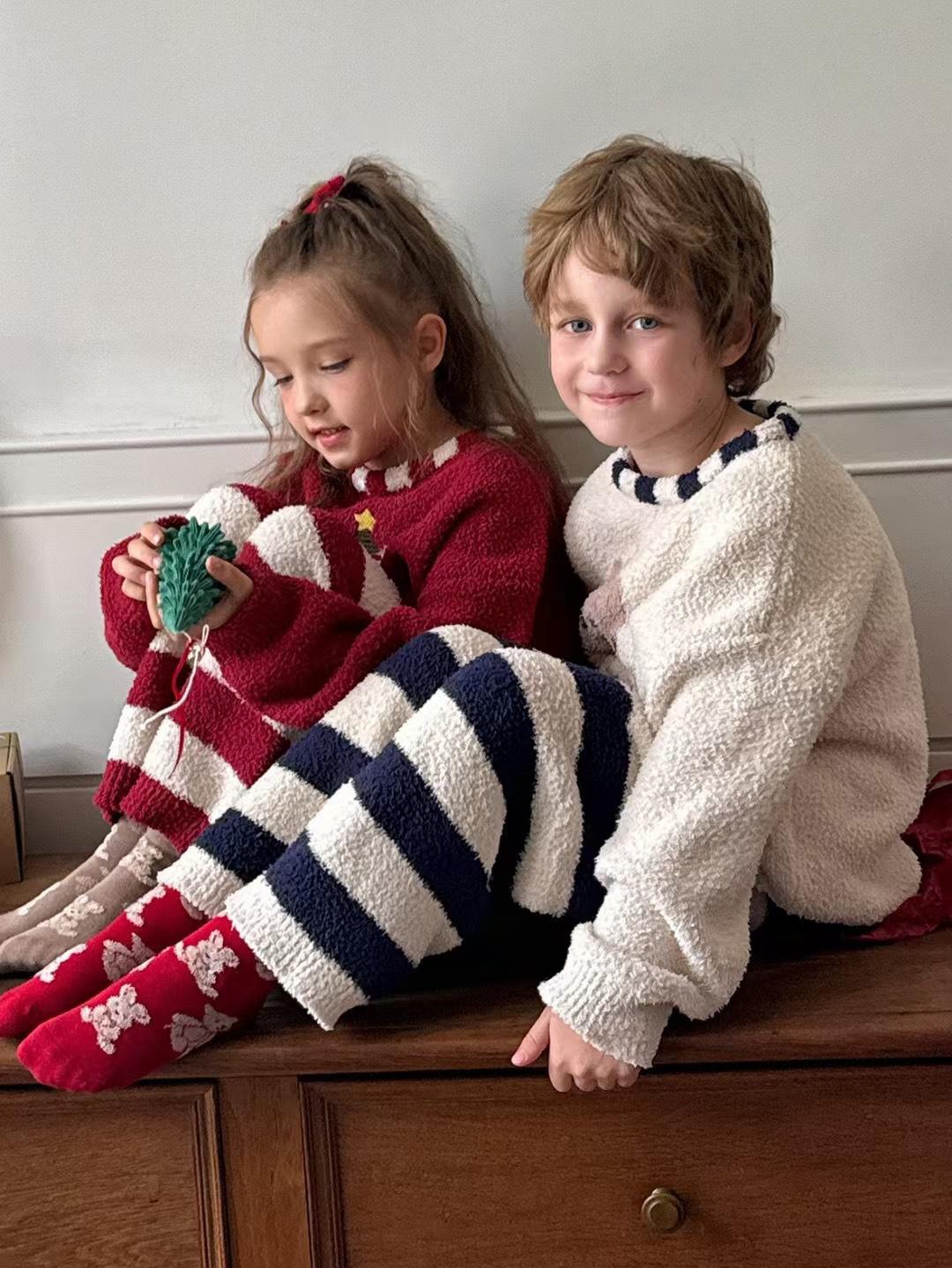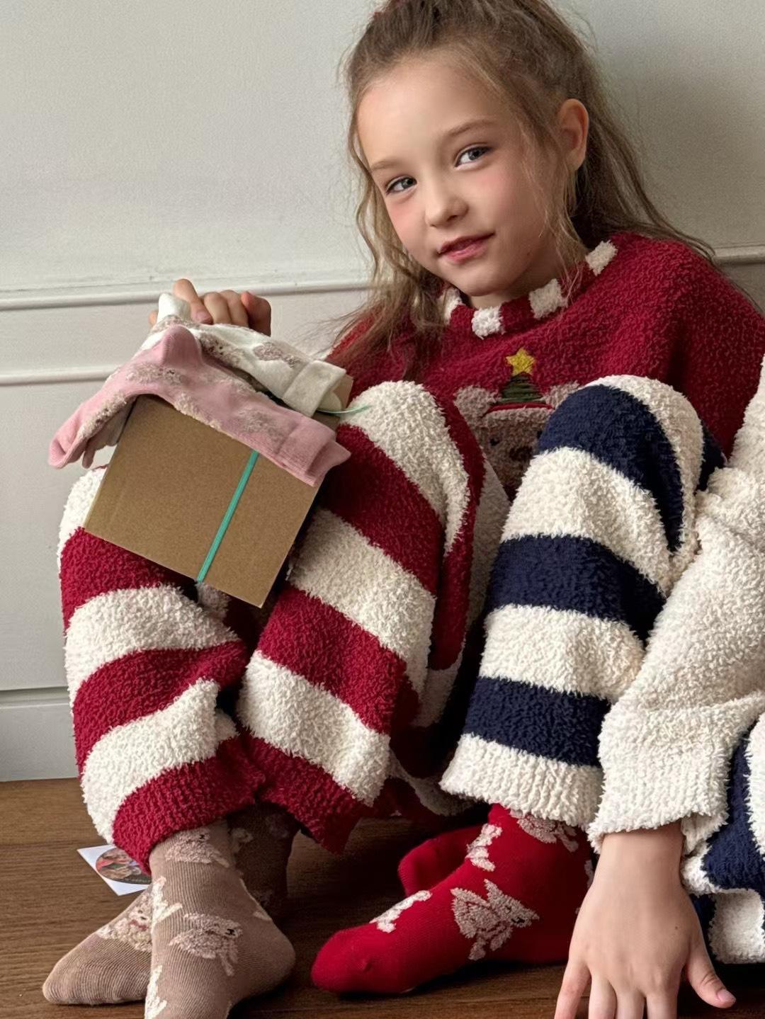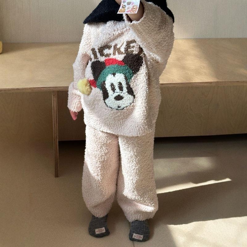 Ropa de Casa para Niños Invierno Nuevo Niños y Niñas Ropa de Casa de Media Felpa Conjunto de Pijama Cálido de Invierno para Bebé