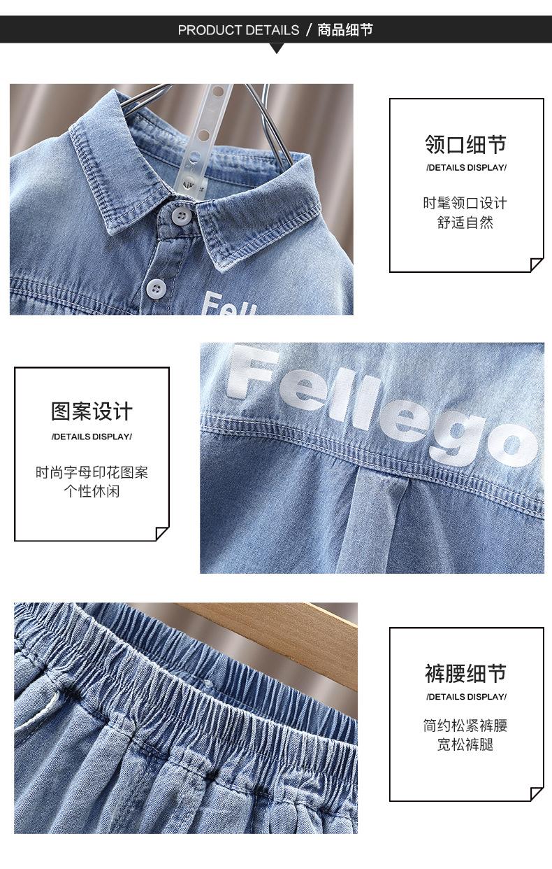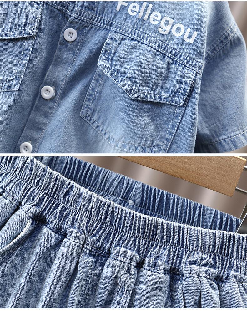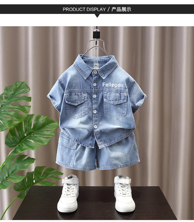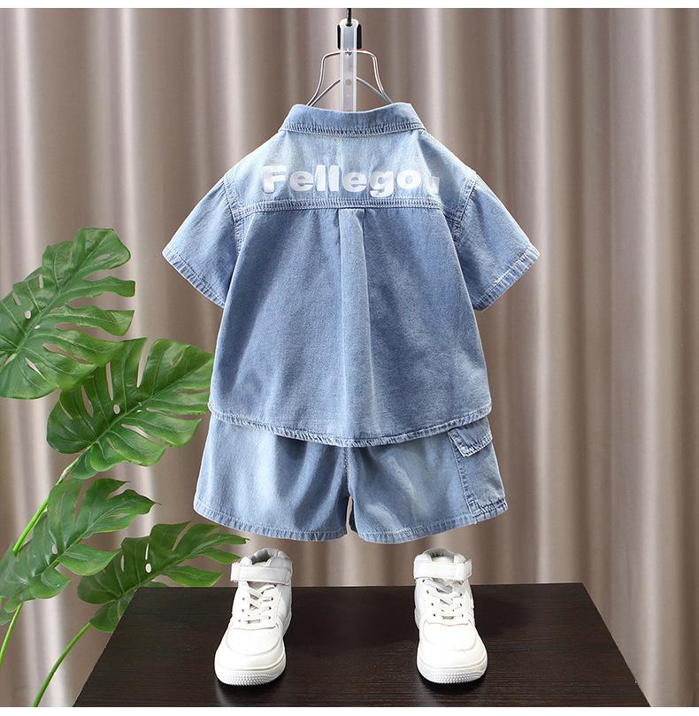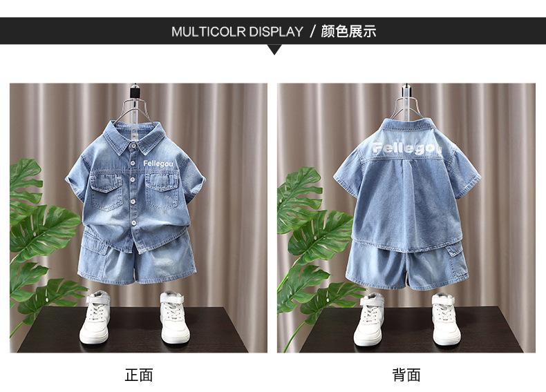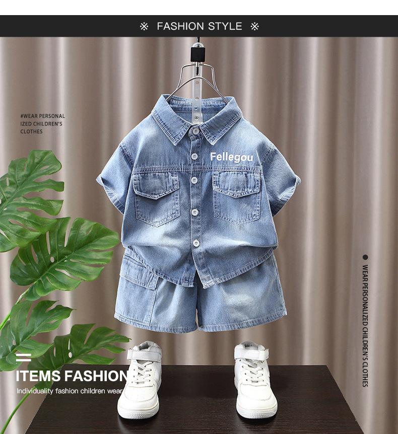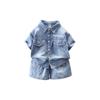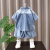 Traje de mezclilla para niños Verano 2025 Nuevo estilo Moda y guapo de manga corta Conjunto de dos piezas Ropa de moda para niños Verano
