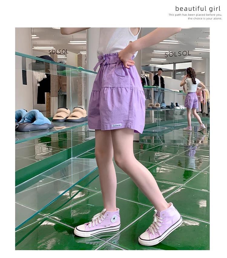 Shorts Casuales de Verano para Niñas 2025 Nuevos para Niños Medianos y Grandes Shorts de Verano con Cintura de Capullo de Flor para Niñas Pantalones de Algodón Puro