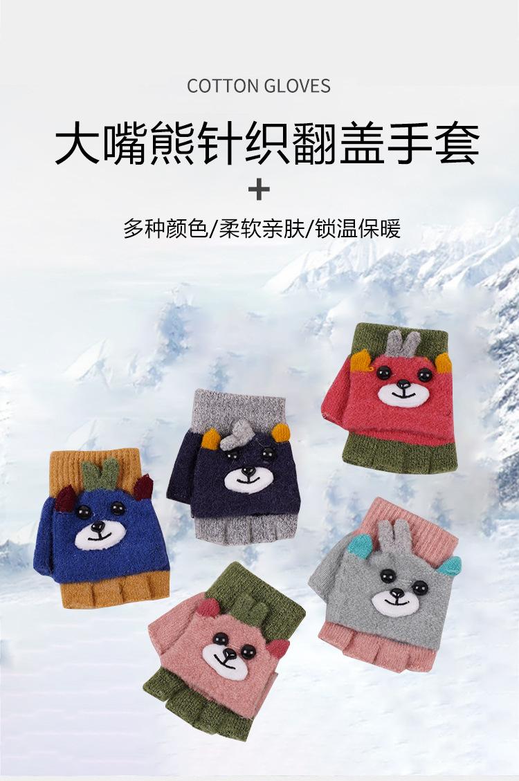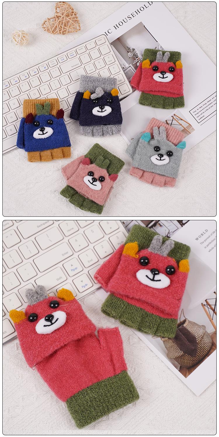 Guantes Flip para Niños Invierno Medio Dedo Engrosado Escritura para Hombre y Estudiantes de Primaria A prueba de Frío Cinco Dedos Bebé Mujer Cálidos y Lindos