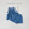 Verano 2025 nuevo traje de niña moda cuello bordado solapa de encaje moderno bebé niña lindo conjunto de dos piezas lote
