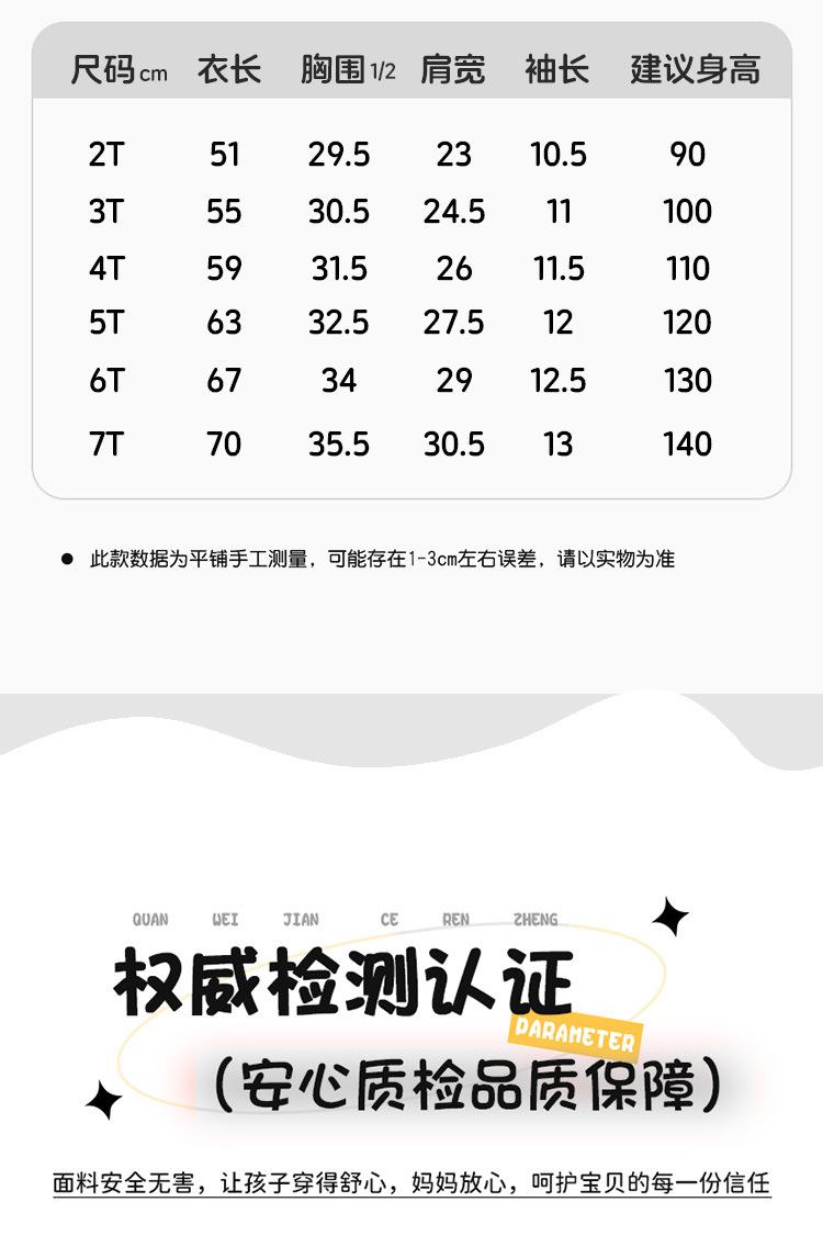 2T/90cm, 3T/100cm, 4T/110cm, 5T/120cm, 6T/130cm, 7T/140cm