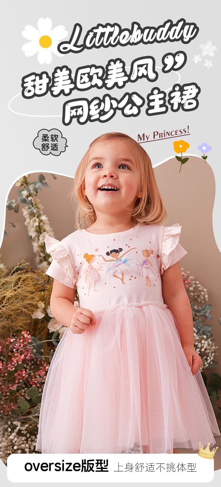 Littlebuddy Verano Transfronterizo Vestido de Malla Estilo Europeo y Americano Vestido de Princesa Vestido para Niños Una Pieza Dropshipping