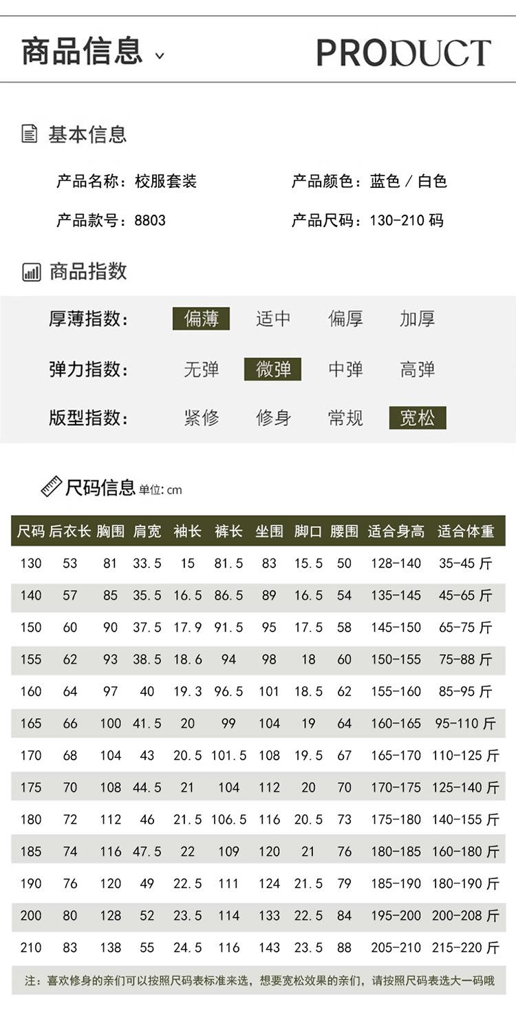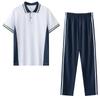 White short sleeves + trousers, Blue short sleeves + trousers, White short sleeve top, Blue short sleeve top, Dark blue trousers