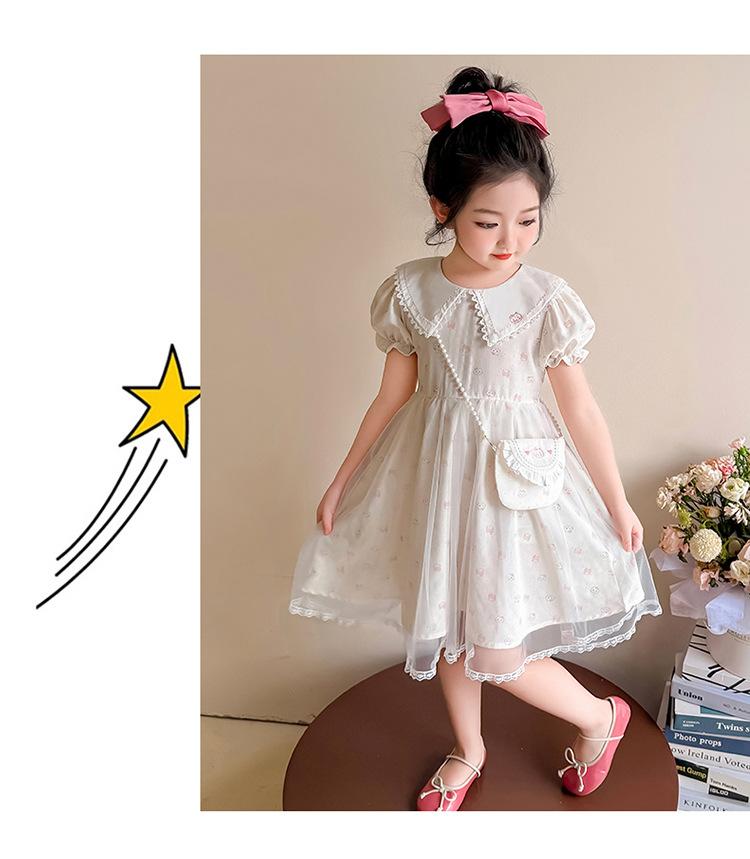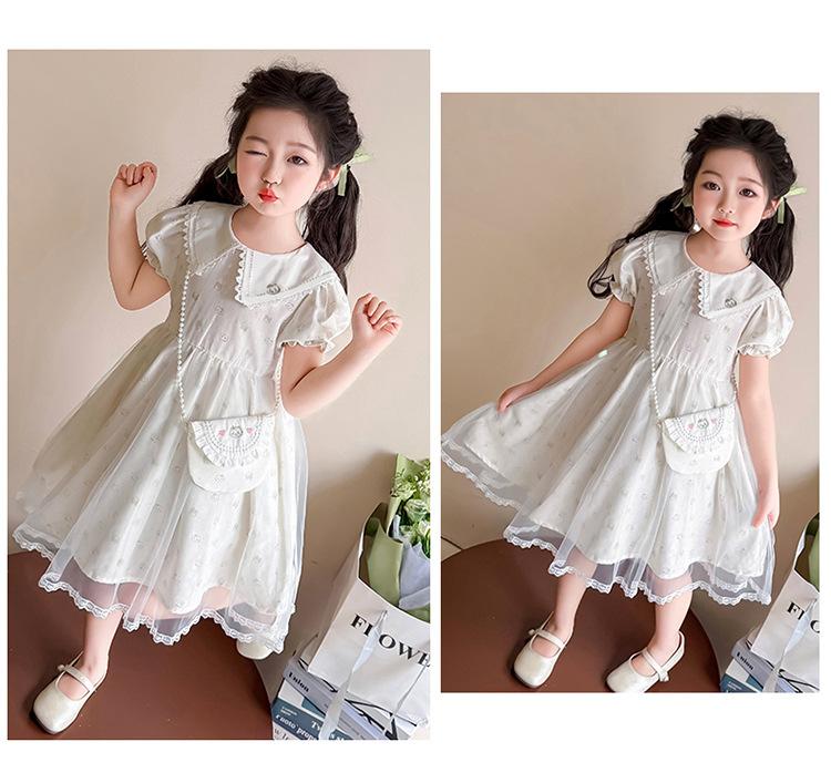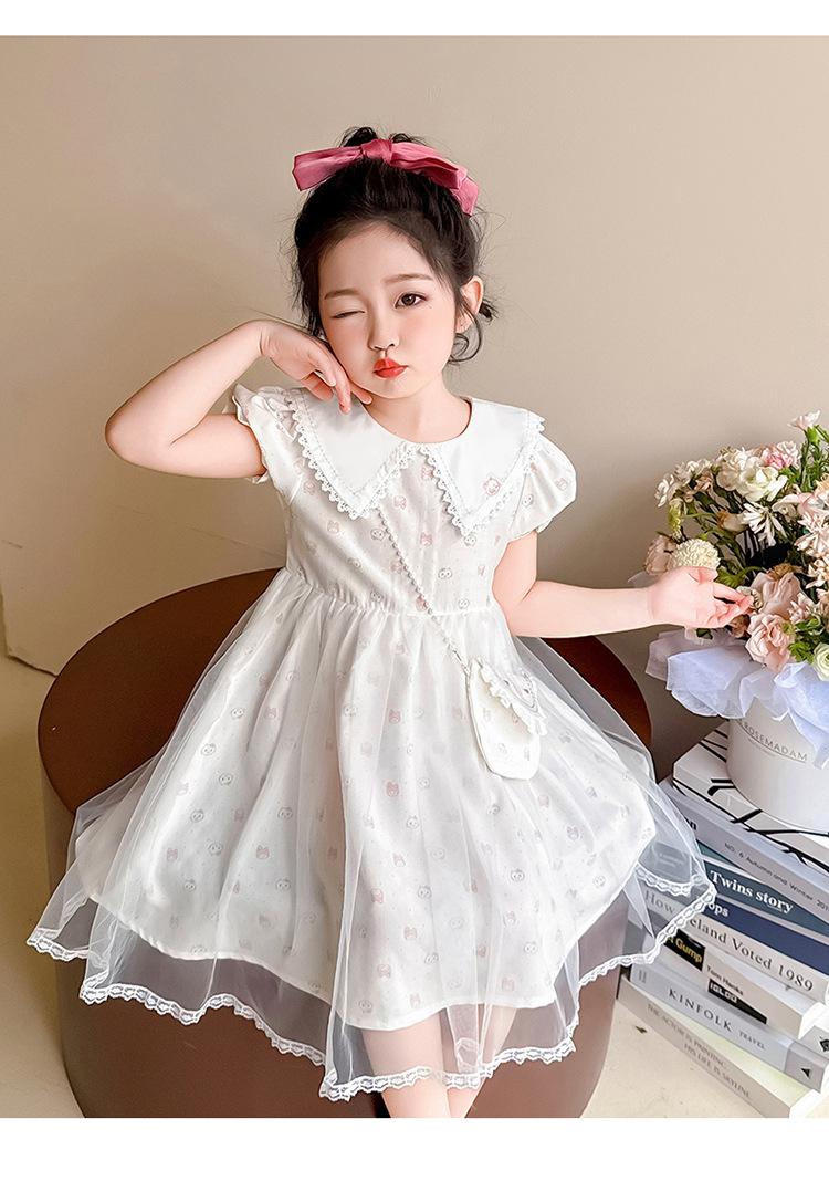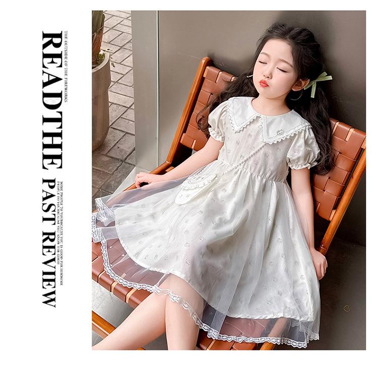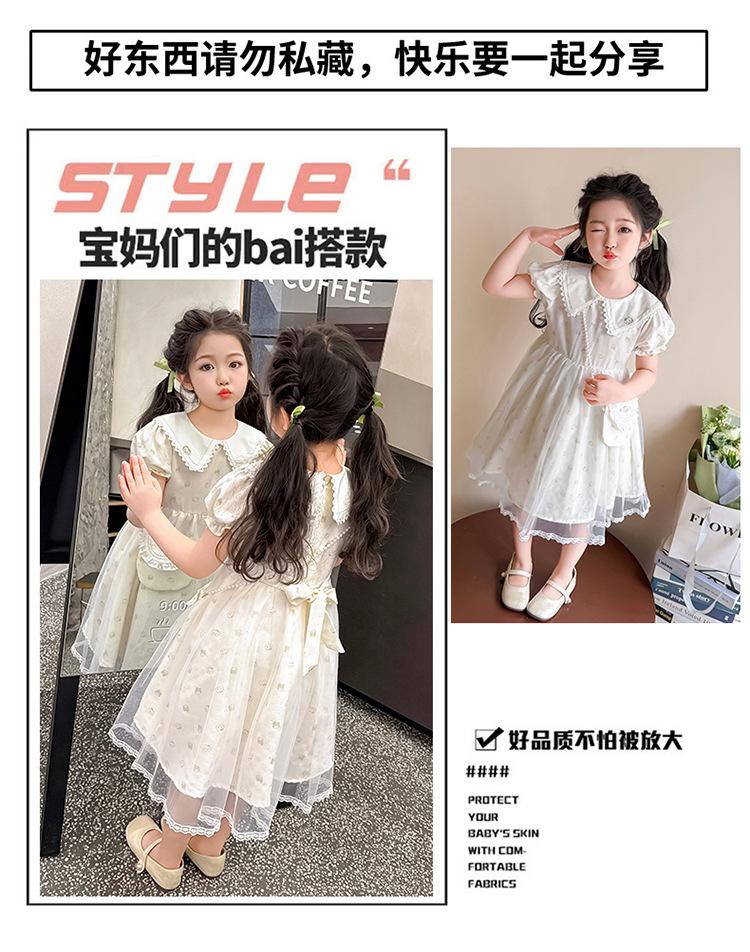 Vestido de Manga Corta de Malla Fina de Verano para Niñas, Moderno y Lindo, Bebé Niña 2025 Nuevo Vestido de Verano de Princesa