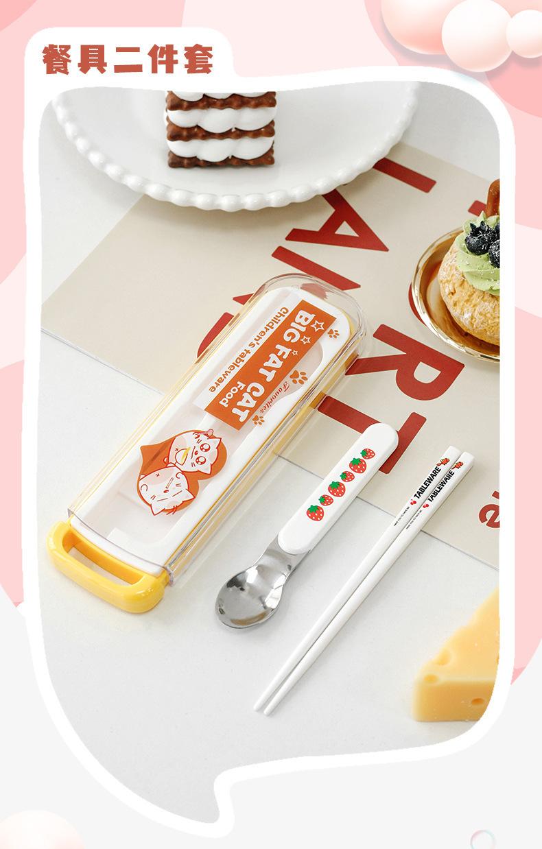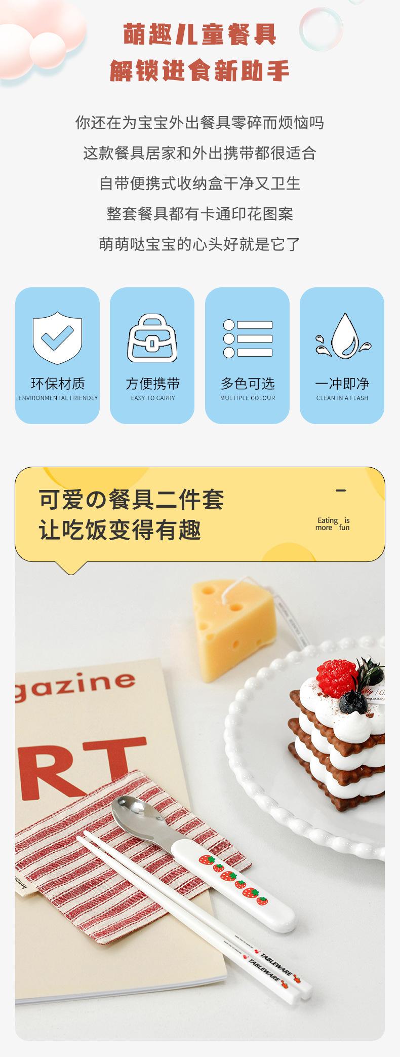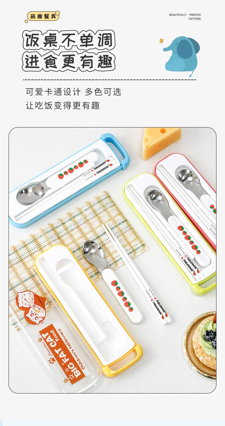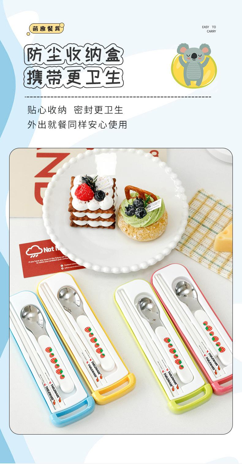 Lindo Juego de Dos Piezas de Palillos y Cuchara para Niños Estudiante Cubiertos Portátiles Caja Palillos y Cuchara Juego con Caja de Almacenamiento